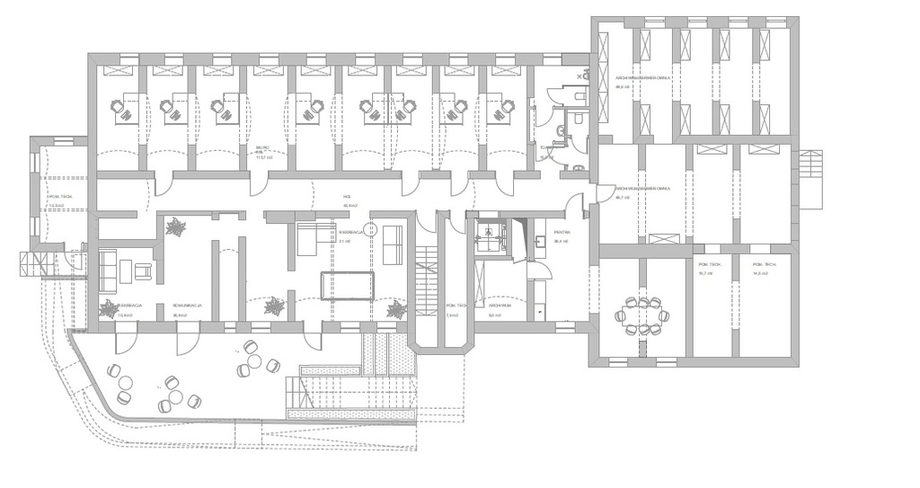 Zu vermieten, ein Gebäude bestehend aus vier Etagen mit einer Gesamtfläche von 1.848,1 m2: 1. Keller – 451,6 m2, 2. Erdgeschoss – 459,6 m2, 3. Erster Stock – 455,7 m2, 4. Dachgeschoss – 481 m2. Das Anwesen befindet sich in einer friedlichen und ruhigen Gegend, umgeben von einem Stadtpark, in unmittelbarer Nähe zum Stadtzentrum. Rund um das Gebäude wurde viel zusätzliche Vegetation gepflanzt. Direkt neben dem Gebäude stehen den Mietern zahlreiche Parkplätze zur Verfügung. Bus- und Straßenbahnhaltestellen befinden sich in unmittelbarer Nähe. Es besteht die Möglichkeit das gesamte Gebäude oder einzelne Stockwerke zu mieten. Der Vermieter wird die Räumlichkeiten sowohl in Form von Open Space als auch in Form von Einzelbüros an die Bedürfnisse der zukünftigen Mieter anpassen. Das Objekt ist ideal geeignet für folgende Tätigkeiten: 1. Büro, 2. medizinische Versorgung, 3. Vorschule/Kindergarten, 4. Call Center, 5. Bildung. Laut Raumordnungsplan handelt es sich bei dem Grundstück, auf dem sich das Gebäude befindet, um eine Fläche von Bildungs- und Wissenschaftsdiensten sowie Gesundheits-, Pflege- und Sozialhilfediensten. Der in der Anzeige angegebene Preis ist der Nettopreis. Mehrwertsteuer muss hinzugefügt werden. Hinzu kommen Verwaltungskosten von 16 PLN/m2 und Gebühren für gebrauchte Medien.