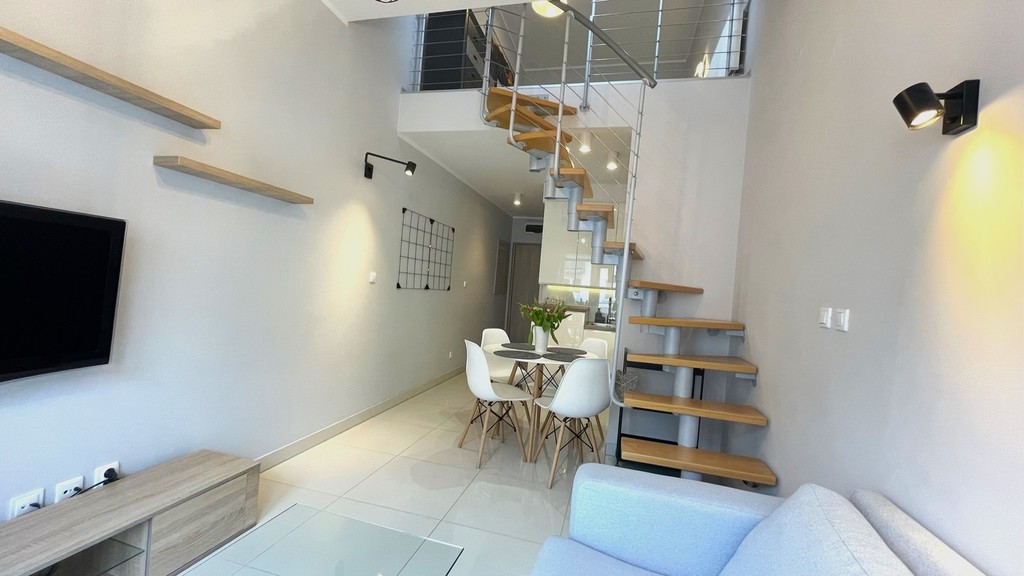 Eine zweistöckige Wohnung in toller Lage zu vermieten. Die Wohnung befindet sich in einer bewachten Wohnsiedlung in der Nähe des Zentrums von Stettin. In der Nähe Geschäfte, Straßenbahnhaltestelle, Hauptbahnhof und Busbahnhof, Schulen und Universitäten, Einkaufszentrum in der Nähe. Seine Fläche (36 m2) besteht aus einem Wohnzimmer mit Kochnische und Balkon, einem Flur und einem Badezimmer mit Dusche, im Zwischengeschoss befindet sich ein geräumiges Schlafzimmer mit einem großen Kleiderschrank. Räumlichkeiten in perfektem Zustand, renoviert im Jahr 2022, voll möbliert und ausgestattet. Das Ganze ist geschmackvoll und praktisch eingerichtet, in angenehmen hellen Farben. Perfekt für ein Paar oder Single. Die Wohnung befindet sich im vierten Stock. Ein großzügiges, gepflegtes Treppenhaus mit zwei leise laufenden Aufzügen und Zutrittskontrolle. Die Miete beträgt 2.200 PLN pro Monat (Internet im Mietpreis enthalten), zusätzlich zu zahlen: Verwaltungsmiete 320 PLN pro Monat und Strom und Heizung von der SEC nach Zählern (ca. 190 PLN pro Monat für 2 Personen). Zweimonatige Kaution. Der Vermieter reserviert die Vermietung für Nichtraucher und ohne Haustiere. Gelegentliche Vermietung gilt. Ich kann diese Immobilie sehr empfehlen und Sie können mich gerne kontaktieren.