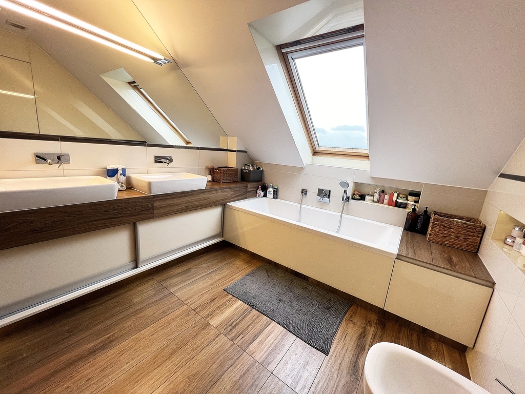 Zum Verkauf steht eine Doppelhaushälfte mit Dachboden. Befindet sich in einer gemütlichen Siedlung mit Einfamilienhäusern in Dobra Szczecińska. Zugang zum Zentrum von Stettin in nur etwa 20 Minuten. Grundstück von 649 m2, voll erschlossen, überdachte Terrasse, gepflasterte Zufahrten und Parkplätze. Auf dem Grundstück befinden sich zwei hochwertige Wiśniowski-Automatiktore. Das Haus wurde 2013 mit den hochwertigsten Materialien gebaut und fertiggestellt. Bau und Ausbau wurden mit größter Sorgfalt und Gewissenhaftigkeit durchgeführt. Traditionelles Satteldach mit Keramikziegeln gedeckt. Das Gebäude verfügt über eine zentrale Staubsaugeranlage, eine Alarmanlage und eine Wasserenthärtungsanlage. Vom Wohnzimmer aus gibt es einen Ausgang auf eine große, gemütliche, überdachte Terrasse. Automatisches Bewässerungssystem im Garten. Das Anwesen umfasst: Erdgeschoss: – Ein Vorraum mit Einbauschrank 4,2 m2 – Komplett ausgestattet mit erstklassigen Geräten – alle Einbaugeräte bleiben für den neuen Eigentümer (Induktionskochfeld, eingebaute Druckkaffeemaschine, Geschirrspüler, Kühlschrank, Backofen, Wärmeschublade, Spülbeckenmühle, Weinkühler) – 9 m2 – Geräumiges Wohnzimmer mit Kamin und Zugang zu einer überdachten Terrasse – 28 m2 – Hauswirtschaftsraum (Waschküche, Heizraum) mit maßgeschneiderten Gebäuden – 6,6 m2 – Badezimmer mit Dusche und WC – 3,2 m2 – Einzelgarage mit Zugang zum Abstellraum. Dachgeschoss – Halle, die alle Räume mit einem Ausgang zum Dachgeschoss und der Hauptlüftung der Klimaanlage zum Haus verbindet – Schlafzimmer mit Einbauschrank und zwei Dachfenstern mit Jalousien und Moskitonetz – 14,5 m2 – Schlafzimmer – 14,6 m2 – Schlafzimmer – 12,9 m2 – Gästezimmer mit geräumigen Gebäuden über die gesamte Raumlänge – 17 m2 – Badezimmer mit Badewanne, zwei Waschbecken, Toilette und Bidet – 7,5 m2. Heizung über einen Gasherd, Fußbodenheizung in allen Räumen. Das Anwesen verfügt über asphaltierte Straßen, Glasfaser-Internetzugang und die Nähe zu allen notwendigen Infrastrukturen. Ich empfehle und lade Sie herzlich zum Vortrag ein!