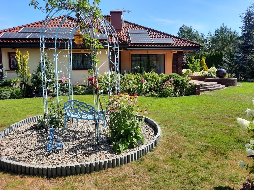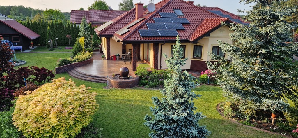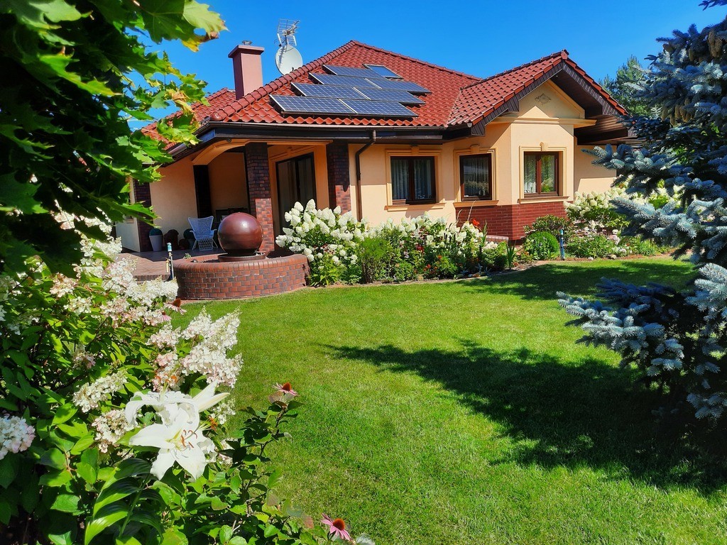 Es ist mir eine große Freude, Ihnen eine einzigartige, einzigartige und exklusive Wohnimmobilie in der Nähe von Stettin anbieten zu können. Die Immobilie wurde im Jahr 2015 erbaut. Das Haus ist sehr schön gelegen und liegt auf einem großen Grundstück, das mit viel Sorgfalt und Liebe zum Detail fertiggestellt wurde. Es wurden hochwertigste Materialien verwendet. Es wurde ein interessanter Abschluss der Außenwände des Gebäudes verwendet, der dem gesamten Anwesen einen besonderen Charakter verleiht. Das Haus ist sehr sonnig. Das Anwesen liegt in einem ruhigen Teil von Tanowo, in der Nähe des Waldes. Die gesamte Anlage wird überwacht. Dach mit mehreren Neigungen und Photovoltaik-Paneelen. Im Inneren des Hauses moderne technische und ästhetische Lösungen. Die Fläche des Hauses beträgt 200 m2 und besteht aus einem Erdgeschoss und einem Dachgeschoss. ERDGESCHOSS: – 140 m 2; Ein großes Wohnzimmer mit Kochnische, gut beleuchteten, beeindruckenden Eichenfenstern, ein Schlafzimmer mit Kleiderschrank, ein Raum, der derzeit als Büro dient, ein Badezimmer, ein Hauswirtschaftsraum und ein Vorraum. NUTZBARER LOFT – 60 m 2; Wohnzimmer, Garderobe, Badezimmer, Hauswirtschaftsraum. Zusätzliche Informationen: 1. Keramikfliesen, Photovoltaikmodule mit einer Leistung von 9,75 kW. Die jährlichen Stromkosten betragen etwa 500 PLN. 2. Garage für zwei Autos / automatisches Tor, gepflasterte Auffahrt – Klinkerquader rund um das Haus, Eingangsterrasse zum Haus, Terrasse mit Eingang zum Wohnzimmer, Freizeitterrasse im Garten. 3. Fertigstellung des Hauses mit Klinker 4. Gartenarchitektur: – Holzschuppen mit Zwischengeschoss – Originalbrunnen – Pergola 5. Hydrophore 6. 3-System-Heizung: Gas, Elektro, Kamin mit Wassermantel, Fußbodenheizung, Wandheizungen 7. Ytong extern Wände 35 cm + Styropor, 8 tiefe Wassereinlässe zur Gartenbewässerung, 9 Haus angepasst an mechanische Belüftung / Rekuperation /, 10. Gegensprechanlage, Alarmanlage, Internet, Überwachung / 6 Kameras /, 11. Außenbeleuchtung von Haus und Garten. GARTEN – 1400 m 2 wunderschön angelegt und erschlossen; Das Ganze ist mit eingebauter Beleuchtung umzäunt, es gibt Nadel- und Laubbäume, hoch und niedrig am Stamm veredelt, wie sibirische und kanadische Tannen, Sträucher und Blumen, japanische Azaleen, Palmahorne, Ziergräser, Teppichstauden. Sprinkler rund um den Garten, Bewässerung von Rasen und Blumenbeeten. Der Vorteil des Hausdesigns ist eine durchdachte und gut geplante, funktionale Aufteilung der Räume, ein charmanter Ort, die Nähe zum Wald und der Preis machen das Angebot sehr attraktiv. Ich lade Sie zur persönlichen Verifizierung ein.!!