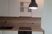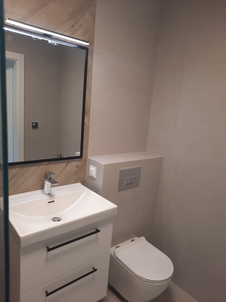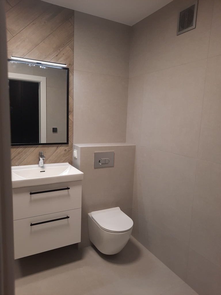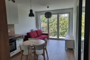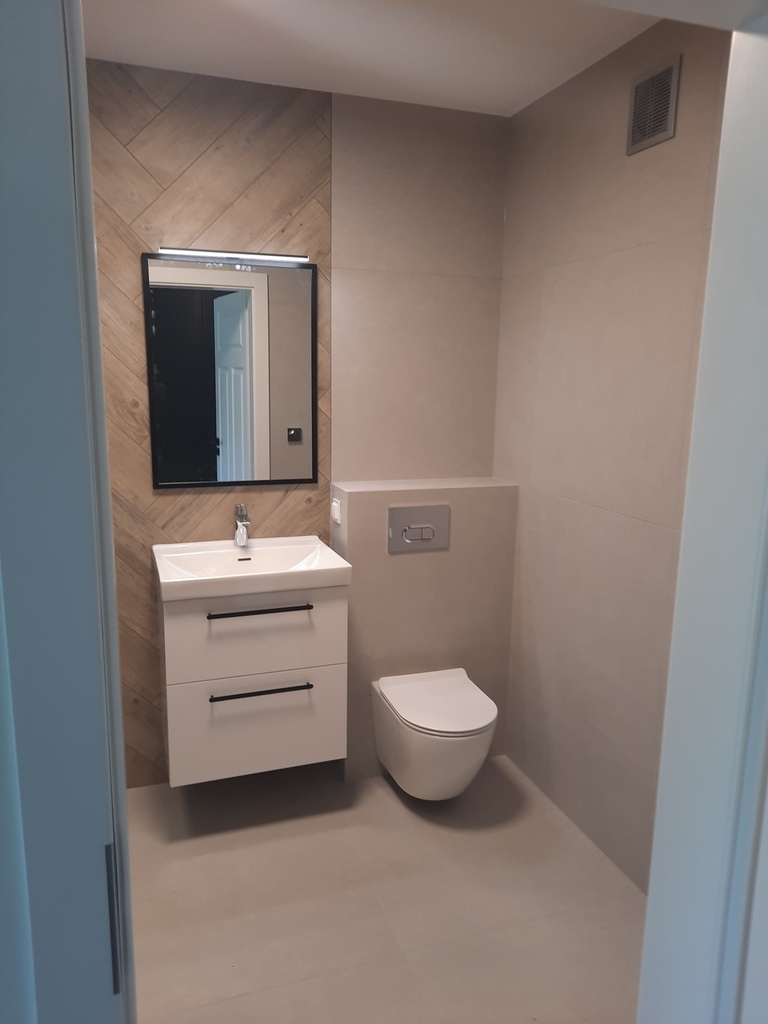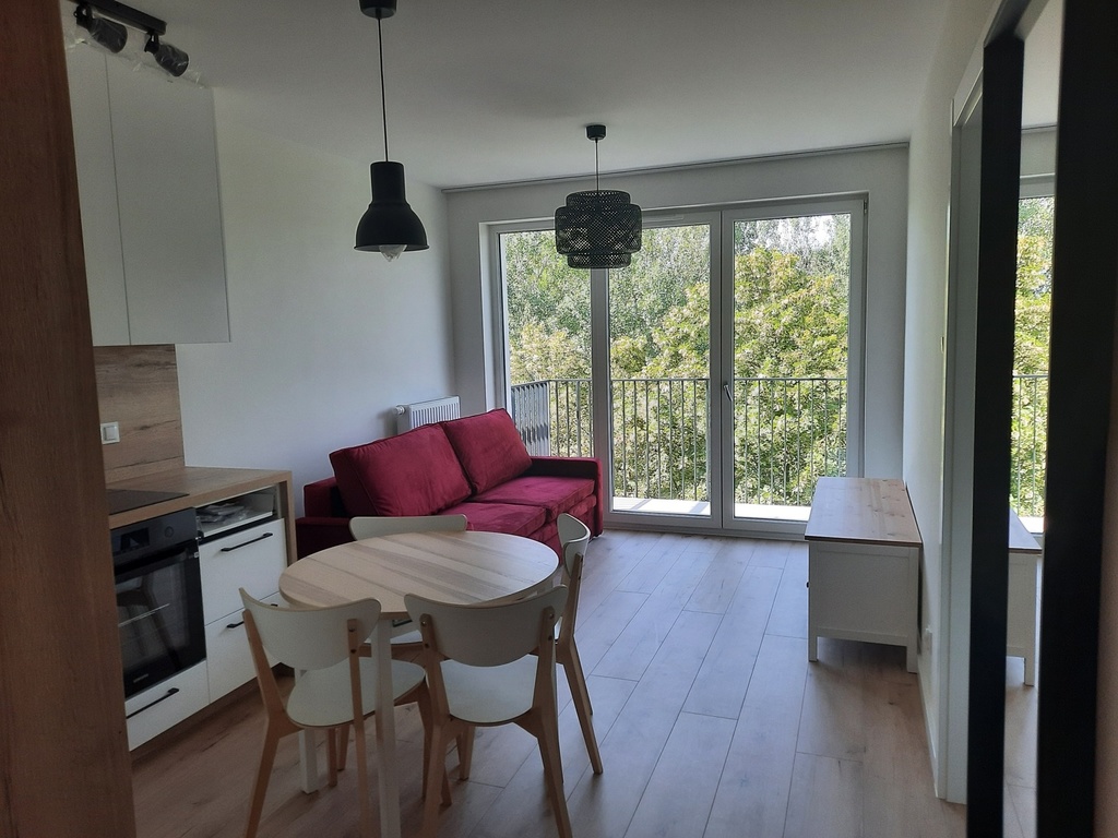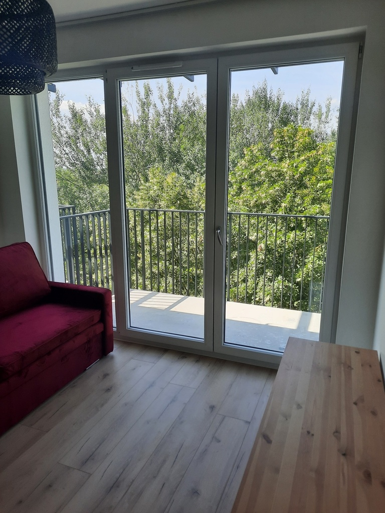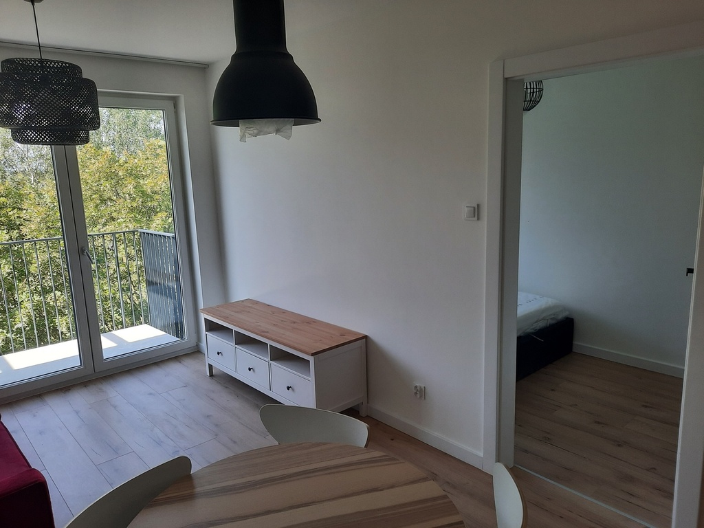 Eine 2-Zimmer-Wohnung mit einer Fläche von 34,71 m2 befindet sich im 4. Stock eines neuen Mehrfamilienhauses aus dem Jahr 2022 mit Aufzug in Gumieńce. Wohnzimmer mit Kochnische, 16,32 m2, Schlafzimmer 8,60 m2, Badezimmer – 4,60 m2, Flur 5,19 m2. Balkon 3,50 m2. Fernwärme und Warmwasser. Hoher Ausbaustandard der Wohnung. BADEZIMMER: Steinzeugfliesen an Wänden und Boden. Begehbare Duschwand aus Glas, Thermostatmischer, Regenduschkopf und separater Grohe-Duschkopf, linearer Abfluss im Boden. Waschbecken mit 60-cm-Unterschrank (2 Schubladen), Holzplatte, Grohe-Wasserhahn. Spiegel mit Wandlampe. Waschmaschinenanschluss. Toilette auf einem Rahmen in einem Steinzeuggebäude. Badezimmertür Polskone, Typ Fiord, schwarze Griffe. KÜCHE: Einbauküchenmöbel mit Samsung-Haushaltsgeräten (Kühl-Gefrierkombination, Geschirrspüler, Backofen, Kochfeld), Kernau-Haube fest mit dem Abluftkamin verbunden. Schwarzes Waschbecken mit einer Schüssel. Flexibler Spültischmischer, schwarz. Küchentisch aus Holz mit 4 Stühlen – IKEA. WOHNZIMMER: Wände und Decken glatt, mit Flugger-Farben gestrichen. Wasserdichte Bodenplatten von Meister. Sockelleisten aus MDF-Platte, 8 cm hoch. Deckenvorhangstangen mit IKEA Majgul-Vorhängen. Ein 3-Sitzer-Schlafsofa mit Schlaffunktion und einem Behälter für Bettwäsche LUKAS – AGATA MEBLE. Teppich. Couchtisch mit Holzregal – IKEA HEMNES. TV-Schrank aus Holz – IKEA HEMNES. SCHLAFZIMMER: Wände und Decken glatt und mit Flugger-Farben gestrichen. Wasserdichte Bodenplatten von Meister. Sockelleisten aus MDF-Platte, 8 cm hoch. Deckenvorhangstangen mit IKEA Majgul-Vorhängen. IKEA BJORBEKK Graphit-Polsterbett 140 cm mit AKREHAMN-Hartschaummatratze und abnehmbarem Bezug. Nachttisch. Schwarze Hängelampe und Steh-Nachttischlampe. SAAL. Garderobenschrank – IKEA PAX. Ein Spiegel in einem schwarzen Rahmen. Beleuchtung. Wird sofort veröffentlicht.