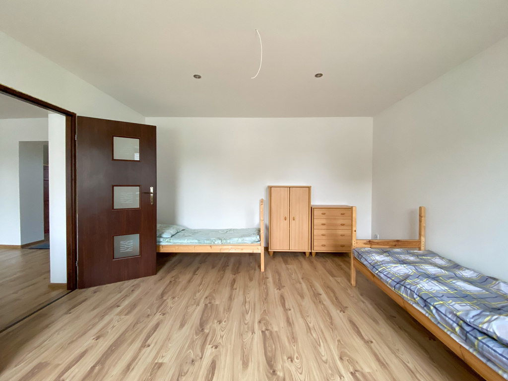 Tolles Angebot! Ein Haus mit einer Fläche von 200 m2 in Borzysławiec zu vermieten, 7 frisch renovierte Schlafzimmer, zur Miete für eine Familie oder Mitarbeiter vorbereitet. Erdgeschoss: – 3 Schlafzimmer, – Wohnzimmer, – große, voll ausgestattete Küche, – Badezimmer mit Dusche, – WC. Erster Stock: – 4 Schlafzimmer, – Gemeinschaftsraum mit Kochnische, – Badezimmer, – Toilette. Das Haus ist mit Einbauküchenmöbeln mit allen notwendigen Geräten, Betten in den Zimmern (derzeit 10 Stück) mit Bettzeug ausgestattet. Bei Mietinteresse besteht die Möglichkeit der Nachrüstung der Räume. Das Anwesen nach Generalrenovierung, in einem modernen Stil eingerichtet. Das ganze Haus wurde isoliert und das Dach wurde erneuert. Medien: – Elektroheizung im ganzen Haus, – Wasser aus dem kommunalen Netz, – kommunale Kanalisation. Miete: – 5.500 PLN / monatliche Miete für den Eigentümer, – Wasser gem. Verbrauch, – Strom – Pauschale – 750 PLN pro Monat, einschließlich Heizung des Gebäudes – Müll – 30 PLN pro Person – Kaution – 7.000 PLN Miete für maximal 10 Personen. Lage: Borzysławiec liegt 3 km von Lubczyna, 12 km von Goleniów und 10 km vom Industriepark Goleniów entfernt. Gute Anbindung an die S3 Straße. Wir laden Sie zur Präsentation ein.