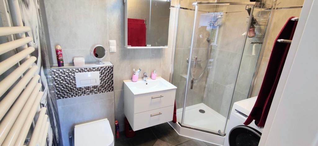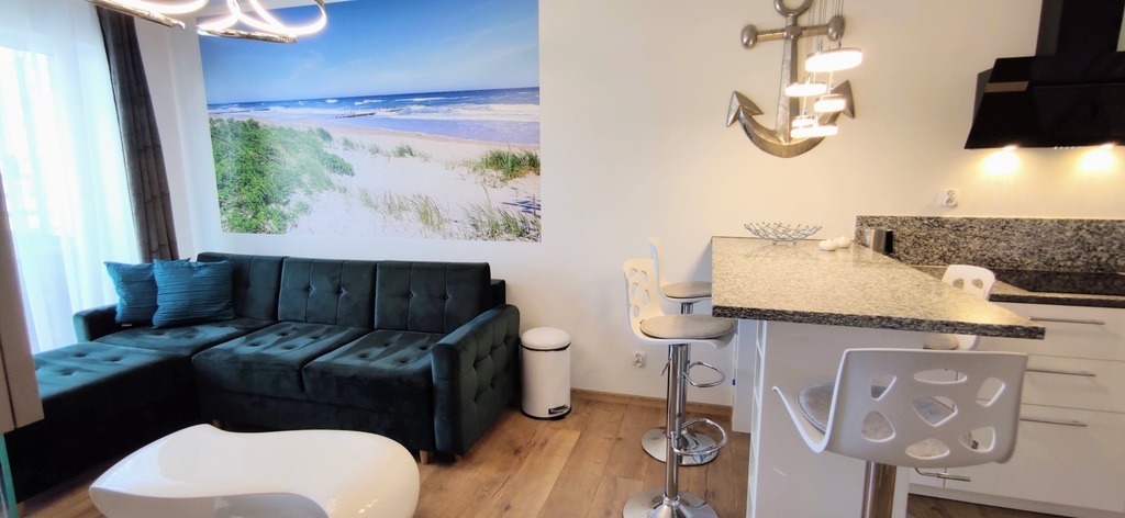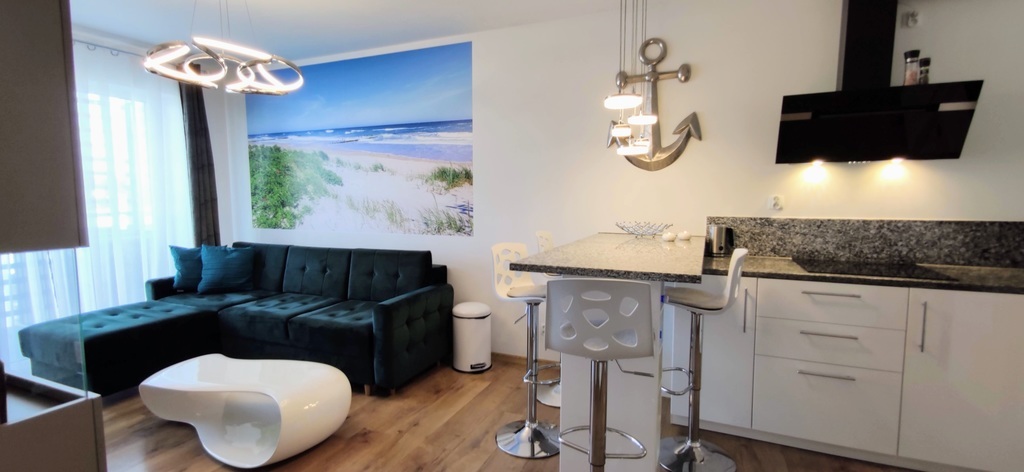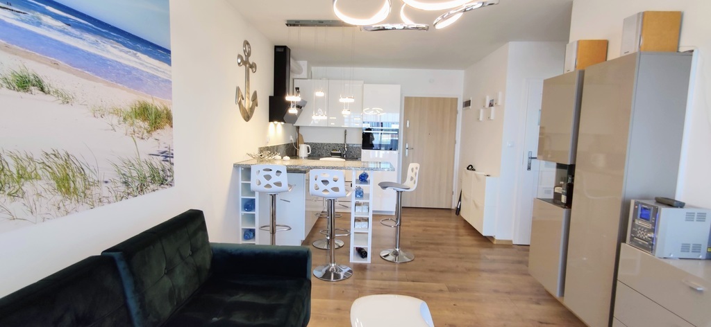 RESERVIERUNG! 2-Zimmer-Wohnung zu verkaufen, 35,87 m2, im 4. Stock – in der neuen Wohnsiedlung Nawigator, an der Ul. Rybacka. Das Gebäude ist mit einem modernen Aufzug ausgestattet. Das Anwesen ist eingezäunt, bewacht und überwacht. Das Hotel liegt etwa 700 Meter vom Küstenpark im westlichen Teil von Kołobrzeg entfernt. In unmittelbarer Nähe: Geschäfte, Apotheken, Servicestellen, Schulen, Kindergarten, Wanderwege, zahlreiche Radwege, Restaurants, Klinik, Kirche, Sport- und Freizeithalle mit Schwimmbad. Niedrige Miete für die Gemeinschaft – 288 PLN (einschließlich Vorauszahlungen für Nebenkosten). Die Wohnung umfasst: ein Wohnzimmer mit Kochnische, ein Schlafzimmer, ein Ankleidezimmer, ein Badezimmer und einen Balkon. Die Wohnung ist zu einem sehr guten Standard dekoriert und eingerichtet. Der Preis der Wohnung beinhaltet alle Möbel und Geräte – wie auf den Fotos, Haushaltsgeräte (sehr wenig genutzt): Backofen mit Mikrowelle, Herd, Dunstabzugshaube, Kühlschrank, Geschirrspüler, Waschmaschine, TV. Eine Wohnung mit wunderschöner Aussicht vom Fenster und Balkon, Platz und Stille (zwischen den Häusern sieht man ein kleines Stück Meer 🙂 Zugang zur Terrasse vom Wohnzimmer und Schlafzimmer. Auf der Terrasse gibt es eine Box zur Aufbewahrung von Terrassenmöbeln. Das Angebot ist ideal für Menschen, die von einer eigenen Wohnung am Meer (Wohnung mit 8 % Mehrwertsteuer), niedriger Miete, nach Zählern abgerechneten Nebenkosten, vollem Eigentum am Grundstück und einer Grundsteuer von 75 PLN pro Jahr träumen. Aufgrund der Lage und der Nähe zum Meer eignet sich die Wohnung ideal für Kapitalinvestitionen, kurzfristige Vermietung oder als Kapitalanlage mit ganzjähriger Ertragsoption. Wir laden Sie zu einer Präsentation der Wohnung ein. Angebot nur bei uns erhältlich. Schöne Wohnung – wir empfehlen sie!
