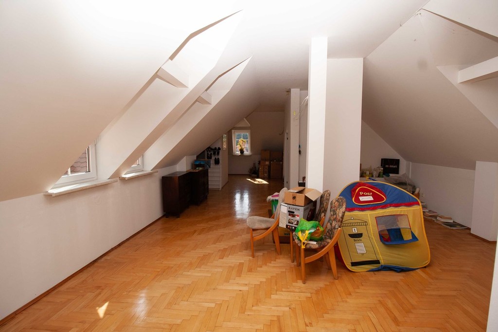Schönes, großes Haus im rechtsufrigen Teil von Stettin, Option einer unabhängigen Wohnung. Ausgezeichnete Lage in einer ruhigen Ortsstraße, gleichzeitig gut angebunden – in der Nähe der Autobahnauffahrt und in Richtung Zentrum. Direkte Nähe des gebauten Buchenwaldhauses Auf einem malerischen Grundstück (1143 m2, zusätzlich von den Städten, der Gemeinde Stettin 890 m2 und der ROD 725 m2 gepachtet, ergibt sich eine bebaute Fläche von 3.230 m2 – bedeckt mit etwa vierzig alten Bäumen und Sträuchern, mit einem Teich. Das Gebiet ist abwechslungsreich auf mehreren Ebenen, was diesem privaten Park zusätzliche Attraktivität verleiht. Auf Ebene „0“ 134 m2 – 2 Zimmer 19,9 und 14,2 m2, Badezimmer 3,9 m2 und ein Multifunktionsraum: (Küche, Heizraum, Trockenraum 9,7 m2 zugänglich). „Zwangsweise“ war hier eine Sauna geplant. Außerdem Hauswirtschaftsräume, Speisekammer, Flur – Kommunikation zur Garage. Diese Ebene ist sowohl vom Inneren des Hauses als auch durch einen unabhängigen Eingang von außen zugänglich, was die Einrichtung von Platz für eine Person ermöglicht Arbeitszimmer/Büro oder eine Wohnung im Falle einer Familie mit mehreren Generationen. Ebene „1“ 138,5 m2 umfasst ein Wohnzimmer mit Kamin von 41 m2 und einem Glaserker mit Blick ins Grüne, 3 Schlafzimmer – 19, 20,9 und 9,8 m2, 2 Badezimmer, eines mit Badewanne und das andere mit Dusche und eine Küche 14,5 m2. Von der Küche und vom Wohnzimmer gibt es einen Ausgang zur Terrasse mit Blick auf den Garten-Park. Das größte Schlafzimmer mit Balkon, eines der Zimmer – durch eine Treppe mit dem Schlafzimmer verbunden Im ersten Stock befand sich ein Kinderbereich mit einem Schlafzimmer und einem Wohnzimmer. Im ersten Stock (Eingang über Eschentreppe vom Treppenhaus aus) ist ein völlig unabhängiger Zugang zu dieser Ebene möglich und es entsteht ein unabhängiger Raum für eine Wohnung oder ein Büro. Es gibt einen offenen Raum – Atelier – 116 m2 und ein separates Schlafzimmer von 18 m2 mit einer unabhängigen Treppe zum Raum auf Ebene 1. Dachfenster und ein Balkon. Böden: Terrakotta im Wohnzimmer, Eichenparkett in den Zimmern, Buchenparkett auf der zweiten Ebene. Das Gebäude ist sorgfältig mit Klinkersteinen und keramischen Dachziegeln fertiggestellt. – Karpiówka-Fenster – Salamander-Profile Heizung, neuer Brennwertgasofen, Kamin. Große 55 m2 große Garage für zwei Autos, 2 unabhängige Tore – elektrisch geöffnet, zusätzlich 4 gepflasterte Parkplätze. Kanalisation, Stadtwasser, Glasfaser vorhanden, Mobiliar noch festzulegen, Index des jährlichen Bedarfs an nutzbarer Energie EU=96,06 kWh/(m2 pro Jahr) Index des jährlichen Bedarfs an Endenergie EK=159,03 kWh/(m2 pro Jahr) Index von Jahresbedarf an nicht erneuerbarer Primärenergie EP = 128,8 kWh/ (m2 pro Jahr) Einheit CO2-Emission ECO2 + 0,02 t CO2/ (m2 pro Jahr) Anteil erneuerbarer Energiequellen am Jahresbedarf an Endenergie Uoce = 34,47 %