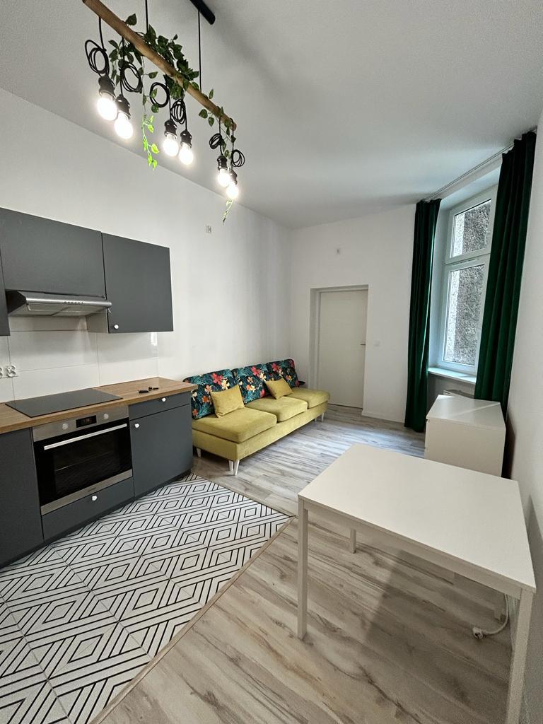 Zu vermieten ist eine renovierte 2-Zimmer-Wohnung im 1. Stock eines Mietshauses in der Ul. Piastów 4. Tolle Kommunikation mit der ganzen Stadt. Die Wohnung ist ca. 37 m² groß und besteht aus: Wohnzimmer mit Kochnische, voll ausgestatteter Küche ca. 18 m², Schlafzimmer 14 m², Badezimmer 3 m², Flur 3 m², möblierten und ausgestatteten Räumlichkeiten. Badezimmer in modernen Farben mit Waschmaschine. Die Zusatzkosten für Nebenkosten (Strom, Wasser, Internetheizung) betragen 700 PLN (bei 2 Personen + 150 PLN). Kaution 3000 PLN. Sofort verfügbar.