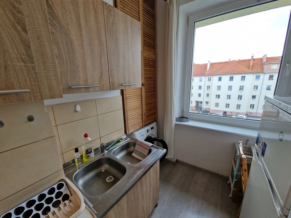 Zum Verkauf steht eine 53 m² große Wohnung in Pogodno, dem wertvollsten Stadtteil von Stettin. Tolle Lage, nahe dem Zentrum, in der Nähe von öffentlichen Verkehrsmitteln (Bus und Straßenbahn) und in der Nähe des Kasprowicz-Parks und von Jasne Błonia. Die Wohnung befindet sich im 3. Stock eines vierstöckigen Backsteingebäudes. Dabei handelt es sich um ein genossenschaftliches Eigentumsrecht an einem Wohnraum im Bestand der Stettiner Wohnungsbaugenossenschaft. Die Räumlichkeiten verfügen über ein Grund- und Hypothekenregister. Das Treppenhaus wurde renoviert, das Gebäude ist isoliert. Aufteilung der Wohnung: zwei Zimmer mit einer Fläche von 18,48 m2 und 16,45 m2, eine Küche von 6,79 m2, ein Badezimmer von 3,48 m2 und alle Räume sind durch einen Flur mit einer Fläche von 2,00 m² verbunden 4,79 m2. Die Räumlichkeiten verfügen über Elektroheizung mit Speicherofen, Warmwasser aus einem Elektroboiler. Der Standard der Räumlichkeiten muss aufgefrischt werden. Fenster durch PVC ersetzt, Paneele auf den Böden. Das Badezimmer ist teilweise gefliest und verfügt über eine Duschkabine. Ein großer Vorteil ist die Tatsache, dass die Fenster nach Südosten ausgerichtet sind, wodurch die Wohnung sonnig ist. Eine tolle Wohnung zum Investieren, Mieten oder Wohnen. Miete an die Genossenschaft 254,18 PLN mit Renovierungsfonds (ohne Vorauszahlungen für Wasser und Müll). Zur Wohnung gehört ein Keller von ca. 3 m2. Wir empfehlen und laden Sie zur Präsentation ein.