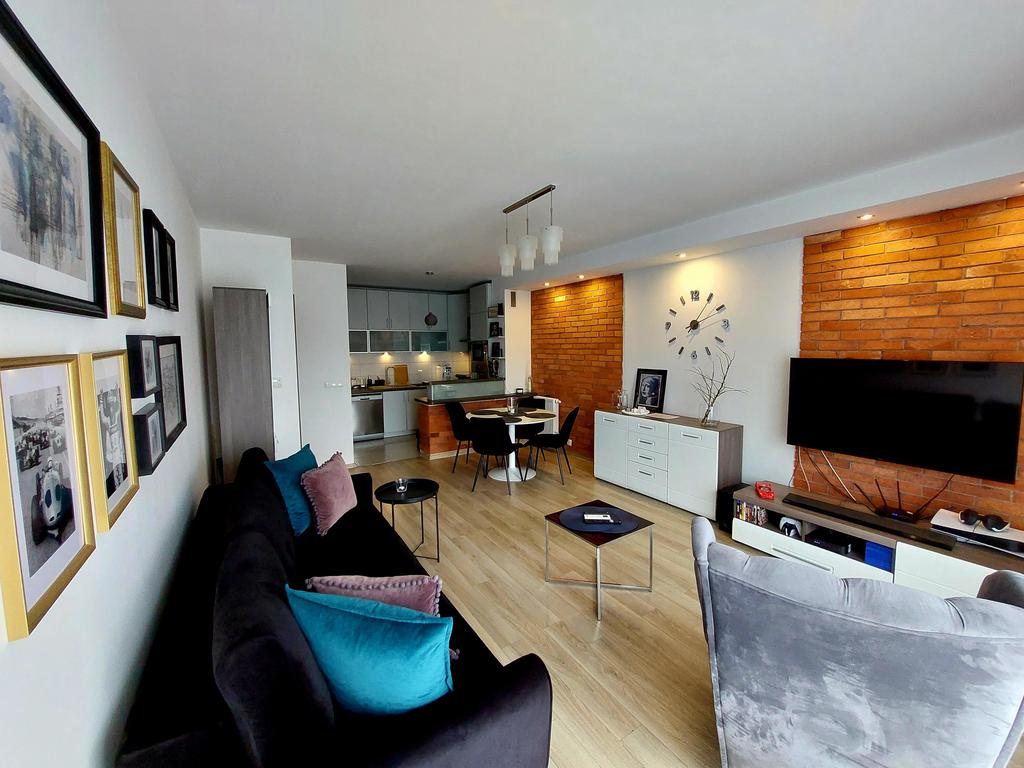 Eine fantastische, geschmackvoll eingerichtete Wohnung in der gemütlichen Wohnsiedlung Zielona Przystań in Warschau an der Ul. Maciejkowa – nur 400 Meter vom Wkrzańska-Wald entfernt. Die Wohnung ist gut an die Innenstadt angebunden. 100 m vom Gebäude entfernt befindet sich eine Bushaltestelle der Linie 87 (Verbindung mit Kołłątaja, Rathaus, Grunwaldzki-Platz, Brama Portowa, Hauptbahnhof). In der Nähe gibt es ein Lebensmittelgeschäft, eine Apotheke, Arztpraxen, eine Klinik, ein Café und einen Schönheitssalon – vor Ort finden Sie alles, was Sie für den Alltag benötigen. Etwa 500 m vom Gebäude entfernt befindet sich eine neu gebaute Schule und ein Kindergarten (Beginn der Dienstleistungen – September 2024). Die Räumlichkeiten befinden sich im 1. Stock eines zweistöckigen Gebäudes aus dem Jahr 2013 und verfügen über 55,19 m2 Nutzfläche und bestehen aus folgenden Räumen: Wohnzimmer mit Kochnische – 24,82 m2 + 7,07 m2 mit Zugang zum Balkon 4,03 m2 Zimmer/Schlafzimmer – 14,96 m2 Badezimmer – 4,20 m2 Flur 4,14 m2 Der unbestrittene Vorteil der Wohnung ist, dass sie im Multisplit-System klimatisiert ist – Wohnzimmer mit Küchenzeile und Schlafzimmer, wodurch Sie die Raumtemperatur unabhängig regulieren können. Der Ausbaustandard ermöglicht es Ihnen, darin zu wohnen, ohne dass Renovierungsarbeiten erforderlich sind. Im Flur gibt es Einbauschränke. Die gesamte separate Küche ist mit maßgefertigten Möbeln ausgestattet, die den Stauraum maximieren. Die Wohnung verfügt über sehr große Balkonfenster, wodurch es hell und warm ist. Die Wohnung zeichnet sich durch sehr niedrige Heizkosten aus – die Gasrechnung (CO und Warmwasser) beträgt ca. 1.000 PLN pro Jahr (jährlicher Gasverbrauch – ca. 300 m3; Temperatur in den Räumlichkeiten während der Heizperiode – 21 Grad). Die Höhe der Miete für ein Wohngebäude – einschließlich des Renovierungsfonds, ohne Nebenkosten – beträgt nur 144,84 PLN pro Monat. Sämtliche Einrichtungsgegenstände der Wohnung sind im Preis inbegriffen. Es besteht die Möglichkeit, einen Parkplatz in der Tiefgarage zu erwerben. Hinter dem Parkplatz befindet sich ein großer Abstellraum – 6,5 m2 (Preis eines Parkplatzes mit Abstellraum – 70.000 PLN). Mögliche schnelle Freigabe der Immobilie. Wir empfehlen und laden Sie zur Präsentation ein.