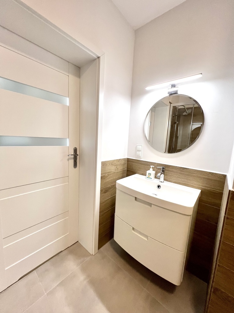 Eine sehr schöne, sonnige Zweizimmerwohnung mit Balkon zu vermieten in einer neuen Wohnsiedlung in Rajków. Die Immobilie befindet sich im ersten Stock eines niedrigen, dreistöckigen Gebäudes. Ein Anwesen mit zahlreichen Pflanzen, einem Spielplatz, Parkplätzen (Außenparkplatz im Mietpreis inbegriffen) und dem Laden „Żabka“. Intime, niedrige Gebäude mit einer grünen Terrasse in der Mitte des Anwesens. In der Nähe gibt es einen Kindergarten, einen Kindergarten und eine Schule mit Spielfeld. Die Fläche von ca. 43 m2 besteht aus: – einem Wohnzimmer mit Balkon, – einem Schlafzimmer ausgestattet mit einem Bett und einem Kleiderschrank, – einer Küchenzeile ausgestattet mit hochwertigen Haushaltsgeräten, – einem Badezimmer mit Waschbecken, Toilette und eine Glasduschkabine, – ein Flur mit Einbauschrank. Mindestmietdauer 1 Jahr. Gelegentlicher Mietvertrag. Bevorzugter Nichtrauchermieter, keine Haustiere. Gebühren: – Kaution 2.200 PLN, – Miete 2.200 PLN, – Gebühren an den Verwalter 500 PLN + Strom. Ich lade Sie zur Präsentation ein. EXKLUSIV