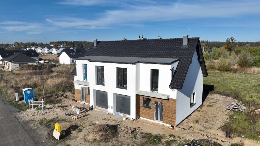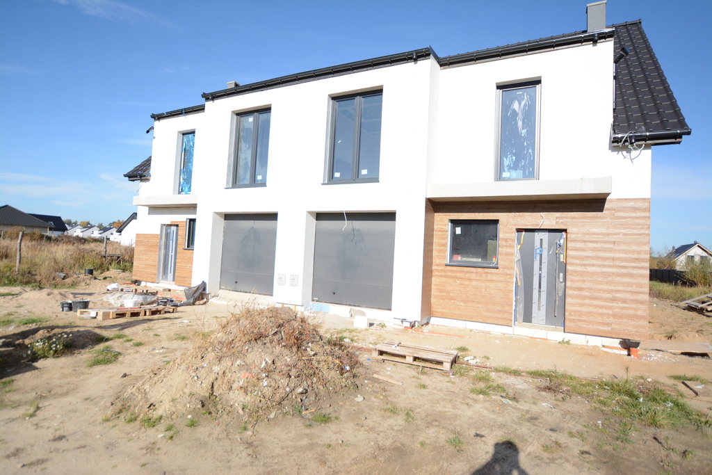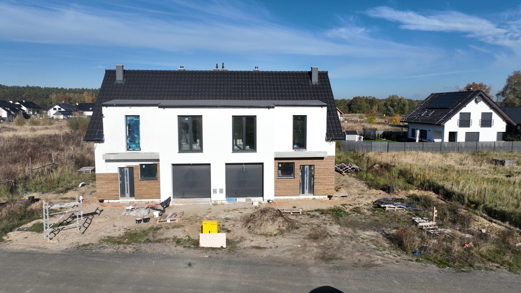 Eine neue Doppelhaushälfte zum Verkauf in Dobra Szczecińska. Zum Anwesen gehört ein Garten mit einer Fläche von ca. 440 m2. Hausstandard: • Elektro-, Multimedia- und IT-Installationen • Sanitär-, Wasser- und Abwasserinstallationen – Fäkalientank mit einer Fläche von 10 m3 • Regenwassertankbereich. 10m3 • Wärmerückgewinnungssystem • Fußbodenheizung in jedem Raum außer der Garage. • Gasofen mit eingebautem Wassertank – Saunier Duval • PVC-Fensterrahmen mit Dreifachverglasung, Warminstallation – Veka-Profil • Vorbereitete Kästen und Verkabelung für Außenrollläden im Erdgeschoss • Sichere Außentüren – KMT • Dachisolierung 10 + 10 cm und Deckendämmung 10 cm • Wände und Decken: Gipsputz • Betonböden • gegossene Stahlbetontreppen • Ferngesteuertes Garagen-Sektionaltor • Fassaden – Mineralputz • Dachgeschossbelag – OSB-Platten (ca. 20 m2 Fläche) • Hölzerne, klappbare Dachbodentreppe • Dachbodendecke, Gipskartonplatten an den Fugen verwischt • Grundstückserschließung – Einfahrt und Eingang zum Gebäude mit Betonwürfeln gepflastert, • Zaun (ohne Front) Die Fläche von 110 m2 besteht aus: – Wohnzimmer mit Kochnische mit einer Fläche von 32m2 – Toilettenbereich 2,5 m2 – Vorraum mit einer Fläche von 3,84 m2 – Garage mit einer Fläche von 16,84 m2 Etage: Nutzfläche (Gesamtfläche) – Schlafzimmer mit einer Fläche von 11,64 m2 (13,7 m2) + Garderobenbereich 2,57 m2 – Zimmer mit einer Fläche von 14 m2 (14 m2) – Raum mit einer Fläche von 9,75 m2 (9,19 m2) – Waschküche mit einer Fläche von 1,62 m2 (1,62 m2) – Badezimmer 6,44 m2 (7,16 m2) – Flur mit einer Fläche von 5,1 m2 (5,1 m2) Das Anwesen befindet sich an einem ruhigen Ort, umgeben von Flachbauten neuer Häuser. Exclusives Angebot. Ich lade Sie zur Präsentation ein.
