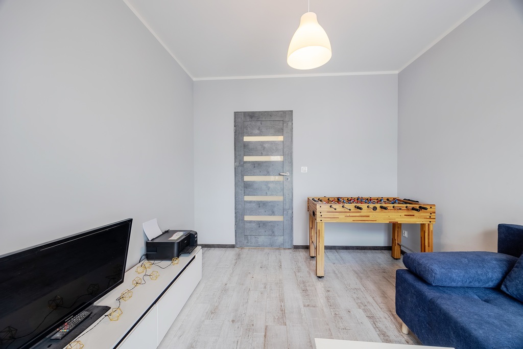 Wir bieten zum Verkauf eine schöne, geräumige, voll ausgestattete 4-Zimmer-Wohnung mit Balkon und einer Fläche von 92,67 m2 an, die sich im zweiten Stock eines komfortablen Gebäudes aus dem Jahr 2018 in der Wohnsiedlung Za Sterem befindet. Zur Wohnung gehört ein Abstellraum mit einer zusätzlichen Nutzfläche von 5,54 m2. Das Gebäude ist mit einem leisen Aufzug ausgestattet und im unterirdischen Teil gibt es einzelne, geschlossene Garagenboxen, die für 90.000 PLN erworben werden können. Der Zugang zur Garage erfolgt ebenfalls über einen Aufzug. WOHNUNG Die Fläche von 92,67 m2 besteht aus: 1. Wohnzimmer mit Kochnische – 37,61 m2 2. Zimmer – 16,55 m2 3. Zimmer – 10,99 m2 4. Zimmer – 10,23 m2 5. Badezimmer – 4,71 m2 6. Toilette + Dusche – 2,30 m2 7. Flur – 10,28 m2 Die Wohnung verfügt über große Fenster und ist hauptsächlich nach Süden ausgerichtet, was bedeutet, dass viel Licht in die Wohnung gelangt. Der komfortable und praktische Küchenbereich ist durch eine große Kücheninsel vom Sitzbereich getrennt. Eine Küchenzeile mit einer funktionalen und stilvollen, maßgeschneiderten Struktur, komplett ausgestattet mit Haushaltsgeräten: – Doppelflügel-Kühlschrank mit Wasserfilter und Samsung-Eismaschine – Samsung-Ofen – Whirlpool-Geschirrspüler – Bosch-Kochfeld – Teka-Abzugshaube. Zwei separate Badezimmer sind riesig Vorteil. Das erste Badezimmer verfügt über eine Dusche und das zweite Badezimmer über eine freistehende Badewanne sowie eine Samsung-Waschmaschine und einen Trockner. Im Preis der Wohnung sind dauerhafte, maßgeschneiderte Gebäude, Möbel und Haushaltsgeräte enthalten. Verwaltungsmiete ca. 450 PLN. Inklusive: Vorauszahlung für Heizung, Müll, Verwaltungskosten. Fernwärme und Warmwasser werden von der Wohnungsebene aus über eine Logotherme gesteuert. LAGE In der Nähe, in der Nähe von Geschäften wie: Castorama, Biedronka, Lidl, Żabka. Es gibt auch ein Einkaufszentrum in der Nähe: CH Ster. In der Nähe befinden sich Schulen, Kindergärten, medizinische Einrichtungen und öffentliche Verkehrsmittel mit Bussen und einer Straßenbahnhaltestelle. Auf dem Anwesen gibt es einen sicheren Spielplatz und ein Spielfeld. In unmittelbarer Nähe finden Sie außerdem Outdoor-Fitnessstudios, den Przygodna-Park und einen Hundeauslauf. Für die Wohnung ist keine Eigenleistung erforderlich. Erscheinungsdatum noch festzulegen. Preis: 1.180.000 PLN Wir laden Sie zu den Präsentationen ein.