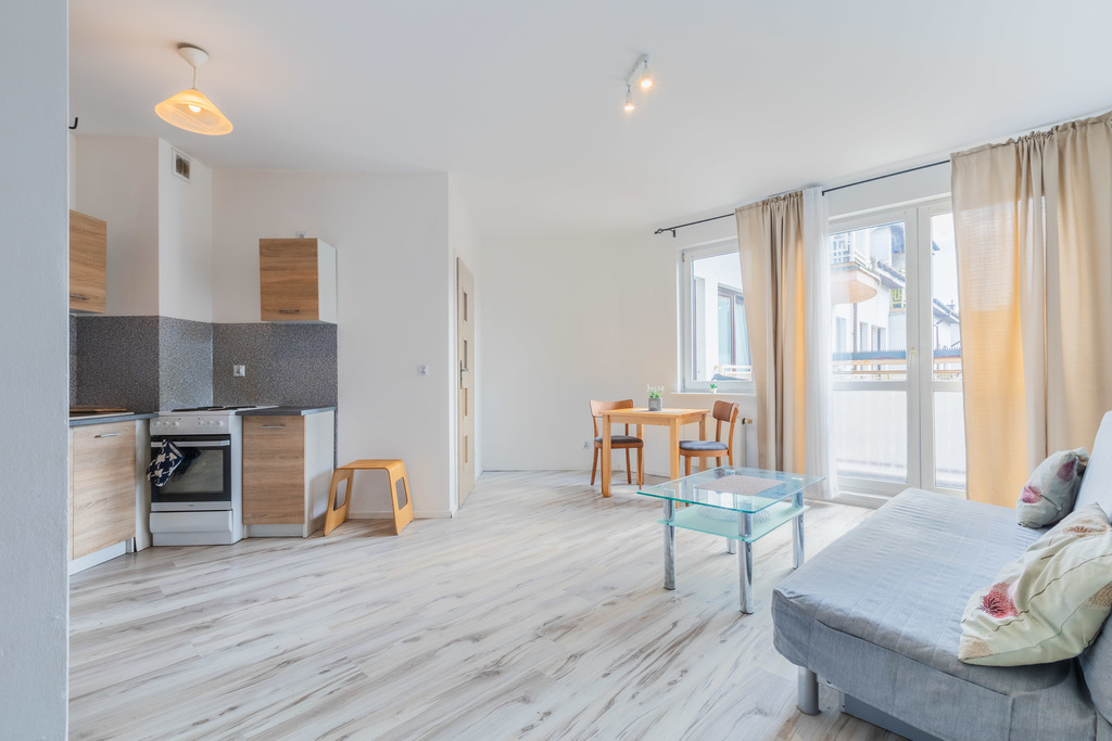 Zum Verkauf steht ein Studio-Apartment im dritten Stock eines niedrigen Wohnblocks in einer privaten, umzäunten und überwachten Wohnsiedlung in der Ul. Maksymilian Golisz in Stettin. Die Fläche von 29,51 m² besteht aus: – Wohnzimmer mit Kochnische – 25,54 m² – Französischer Balkon – Badezimmer mit Dusche – 3,98 m² Die Fenster in der Wohnung sind nach Osten ausgerichtet. Der Blick aus den Fenstern wird nicht durch andere Gebäude behindert und die Wohnung ist perfekt beleuchtet. Das Gebäude wurde 2004 erbaut und ist ein intimes Olivenanwesen, eingezäunt und umzäunt und nur für Bewohner zugänglich. Das Gebäude verfügt über keinen Aufzug. Hinter der Schranke warten Dutzende kostenlose Parkplätze auf Anwohner – auch nachmittags ist das Parken kein Problem! Darüber hinaus stehen ein Spielplatz und ein Spielplatz mit Bänken nur den Bewohnern zur Verfügung. Die Wohnung wurde im Jahr 2023 renoviert – die Böden wurden erneuert, die Wände wurden gestrichen und einige Haushaltsgeräte wurden ersetzt. Im Wohnzimmer und in der Küche sind Paneele auf dem Boden, im Badezimmer Fliesen. Die Miete an den Verwalter beträgt 330 PLN. Zusätzlich fällt eine Stromgebühr nach Verbrauch an. Fernwärme mit SEC. Im Gebäude gibt es kein Gas. Ich lade Sie zur Präsentation ein! EXKLUSIV