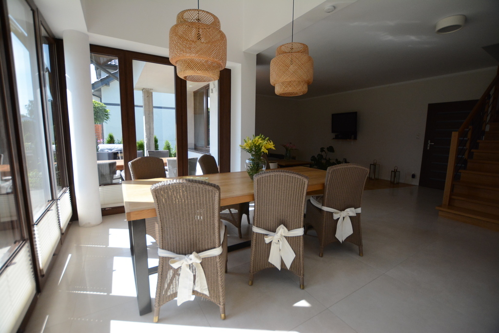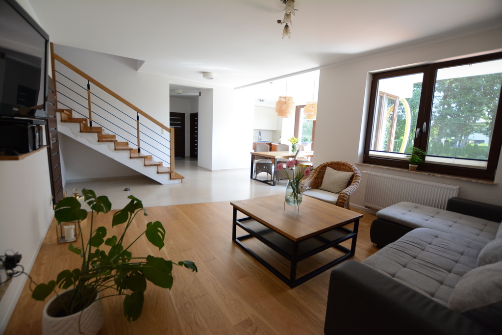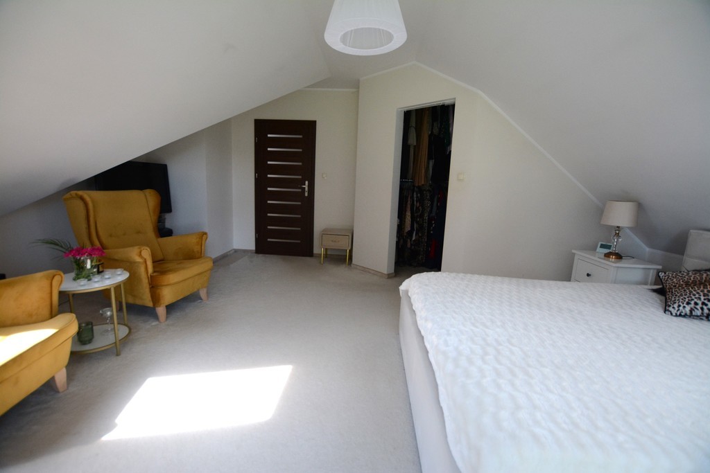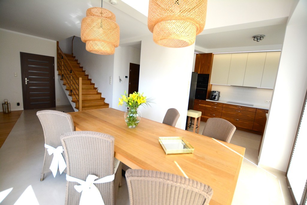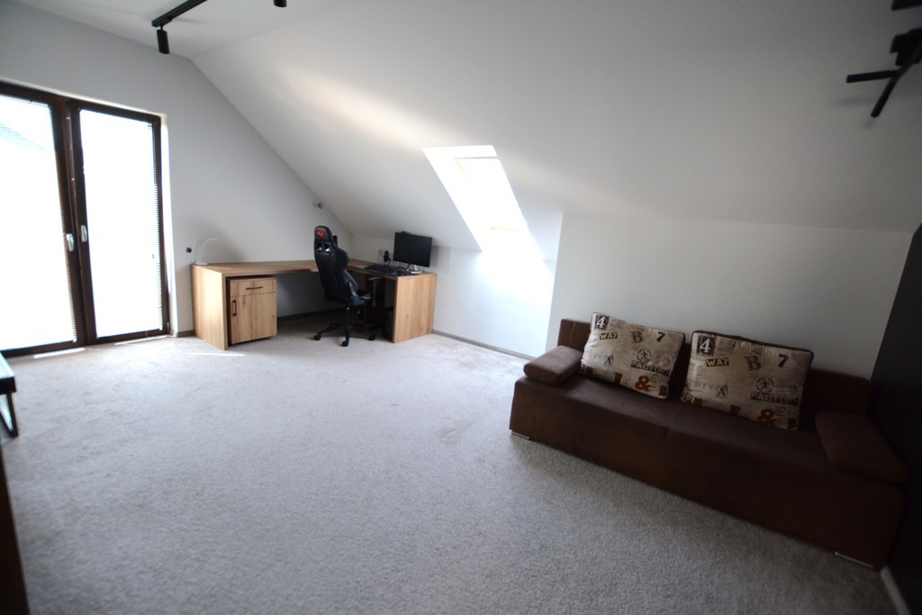 Zum Verkauf steht ein modernes, geräumiges Einfamilienhaus aus dem Jahr 2018 in ruhiger und friedlicher Lage in Dobra Szczecińska. Die wichtigsten Informationen – Vorteile und Annehmlichkeiten: – Fest eingebaute Küchenmöbel – auf Bestellung gefertigt. – Haushaltsgeräte inklusive: (Elektroherd mit Verdampfer, Induktionskochfeld, Geschirrspüler, Dunstabzugshaube). – Blum-Mechaniken, der Kühlschrank verfügt über einen Wasseranschluss. – Heizung durch einen sicheren Gasofen mit geschlossener Brennkammer – Vissmann plus zusätzlichem Wassertank. – Im Erdgeschoss, im Wohnzimmer, in der Küche, im Flur und im Bad gibt es eine Fußbodenheizung oder es können nur Heizkörper genutzt werden (2 getrennte Heizkreise). Die erste Etage wird mit Flachheizkörpern beheizt. – Es besteht die Möglichkeit, im Wohnzimmer einen Kamin anzuschließen. – Ausgestattet mit einem Zentralstaubsauger (das Gerät steht in der Garage) von Electrolux. In der Küche und im Vorraum ist außerdem eine elektrische Kehrschaufel installiert. – Premium-PVC-Fenster – dreifach verglast, Vertex (Moskitonetz in jedem Zimmer). – Dachbodenfenster aus Holz mit Innenjalousien. – Im Büro gibt es einen Wasseranschluss und einen Abfluss. – Zwei Badezimmer ohne Fliesen oder Terrakotta zur eigenen Gestaltung. – Fernseh- und Internetinstallation – Glasfaser ist vorhanden. – Installation für Video-Gegensprechanlage und Alarmverkabelung. – In der Garage ist eine Elektroinstallation für den Anschluss des Generators vorbereitet. – Das Gebäude besteht aus 25 cm dicken Phorothermziegeln und ist mit 20 cm dickem Graphitpolystyrol isoliert. – Dachboden aus OSB-Platten und Gipskartonplatten an den Dachschrägen – Treppe zum ersten Stock mit Eichenholz verkleidet. – Einfahrtstor und Garagentor mit Fernbedienung. – Einbruchhemmende Eingangstüren. Die Nutzfläche von 245 m2 besteht aus: Erdgeschoss: – Wohnzimmer verbunden mit dem Esszimmer mit einer Fläche von 39m2 – Küchenbereich 10,6 m2 – Speisekammer mit einer Fläche von 3,3 m2 – Büro mit einer Fläche von 9,2 m2 – Zimmer mit einer Fläche von 13m2 – Garage mit einer Fläche von 35,6 m2 mit Eingang zum Heizraum mit einer Fläche von 9m2 – Badezimmer mit Toilette, Fläche: 4,1 m2 (zur eigenen Gestaltung) – Vorraum und Flur Erster Stock: Nutzfläche (Grundfläche): – Schlafzimmer mit einer Fläche von 15,4 m2 (25 m2) plus ein Kleiderschrank mit einer Fläche von 4m2 – Zimmer mit einer Fläche von 20m2 (24m2) – Zimmer mit einer Fläche von 12 m2 (14,7 m2) – Raum mit einer Fläche von 11m2 (22m2) – Badezimmer mit Toilette, Fläche: 12 m2 (nach eigener Vereinbarung) – Badezimmer mit WC, Fläche: 8m2 Zusätzlich ein Dachboden zur Lagerung von Saisonartikeln. Tolle Lage. In der Nähe gibt es Geschäfte: Biedronka und Lewiatan, Netto, ein Lebensmittelgeschäft, und eine öffentliche Grundschule erreichen wir in 2 Minuten mit dem Auto. Exklusives Angebot. Ich lade Sie zur Präsentation ein!