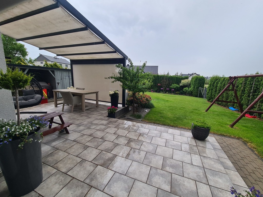Wir laden Sie ein, sich mit dem Angebot einer attraktiven Doppelhaushälfte aus dem Jahr 2014 auf einem Eckgrundstück mit einer Fläche von 508 m2 vertraut zu machen Es gibt: Im Erdgeschoss: – Wohnzimmer 28,80 m2 mit Kamin, Esszimmer und Kochnische 12,50 m2 und Zugang zur Terrasse und dem wunderschön angelegten Garten – Badezimmer 5,10 m2 – Flur 7,30 m2 – Vorraum 5,80 m2 – Garage im Gebäude 18,15 m2 – Zimmer. Gasthof. 5,10 m2 Im ersten Stock: – Schlafzimmer 16,90 m2 mit Kleiderschrank 8,70 m2 – zwei Zimmer 15,15 m2 und 13,35 m2 – Badezimmer 12,10 m2 – Waschküche mit der Möglichkeit der Umwandlung in ein Zimmer 11,75 m2 – Flur 14 m2 Zusätzliche Vorteile: – Außenjalousien – große, großzügige Terrasse mit elektrischer Pergola – automatische Gartenbewässerung – Überwachung und Schutz – Glasfaser – Verarbeitung mit hochwertigen Materialien Heizung durch einen Gasofen und Kamin. Ausbaustandard Das Haus wurde komplett renoviert und ist sehr gepflegt. Sehr guter technischer Zustand – bezugsfertig. Kein zusätzlicher finanzieller Aufwand erforderlich. Lage Sehr schöne Lage des Gebäudes (Nachbar nur auf einer Seite), ruhige Nachbarschaft und sicheres Viertel. Öffentliche Verkehrsmittel – Bus. Die Ausgangsroute in Richtung der Grenze zwischen Lubieszyn, Mierzyn, Szczecin und Dobra.