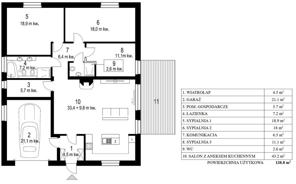 Neue Investition zu verkaufen! Eine Wohnsiedlung mit 4 einstöckigen Häusern in Buk, direkt an der Grenze zu Dobra. Das erste Haus kostet 1.199.000 PLN, die nächsten 1.249.000 PLN. Dank der verwendeten Materialien, ihrer Funktionalität und durchdachten Gestaltung wurden die Häuser für Kunden geschaffen, die höchste Ansprüche an die Verarbeitung stellen. Jedes Einfamilienhaus liegt auf einem großen Grundstück (ca. 1.000 m2). Die Fläche jedes Hauses beträgt 138,8 m2 und besteht aus: – Wohnzimmer mit Kochnische (43,2 m2) – Schlafzimmer I (18,9 m2) – Schlafzimmer II (18 m2) – Schlafzimmer III (11,1 m2) – Badezimmer (7,2 m2) – Toilette (2,6 m2) – Zimmer Dienstprogramm (5,7 m2) – Kommunikation (6,5 m2) – Vorraum (4,5 m2) – Garage (21,1 m2) Materialliste und Ausführungsstandard: – tragende Außenwände aus 24 cm dickem Porenbeton + 20 cm Graphitfassade Styropor + Doppelkleber mit Netz + Mineralputz 2 mm + Silikonfassadenfarbe – Innenputze aus Gips 1,5 mm – flache Zementfliesen, Graphit – Fußbodenheizung auf der gesamten Bodenfläche – Wärmepumpe – Wärmerückgewinnung – schwellenlose Schiebetüren im Wohnzimmer – Framex Triple -verglaste Fenster mit in der Fassade verdeckten Außenjalousien aus Polystyrol – Farbe Anthrazit – Außenfensterbänke aus Zementfliesen – Farbe Anthrazit – Grundstückseinzäunung 3D-Zaunpaneele Farbe – Anthrazit – Auffahrt zum Grundstück und Terrasse im Garten aus halbgepflasterten Steinen – ebene Fläche – Abwassersystem und Wasser aus dem städtischen Netz. Eine einzigartige Lage, die die Nutzung aller Annehmlichkeiten der Stadt ermöglicht, und dank der Nähe zum Wald garantiere ich Ruhe und Frieden. Der Käufer ist von der PCC-Gebühr von 2 % an das Finanzamt befreit. Exklusives Angebot. Ich lade Sie zur Präsentation ein!