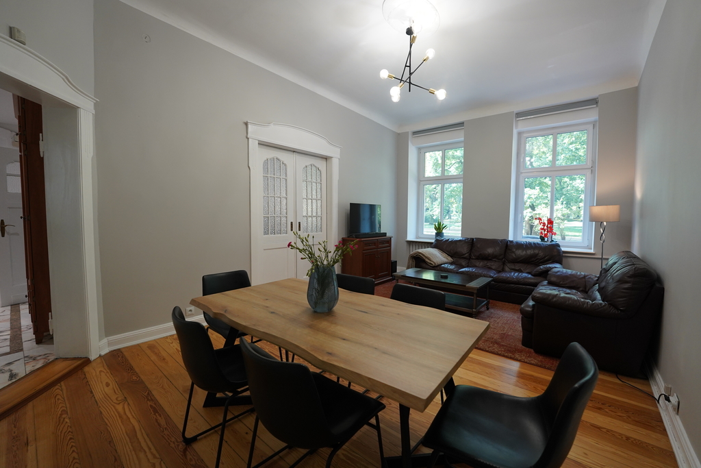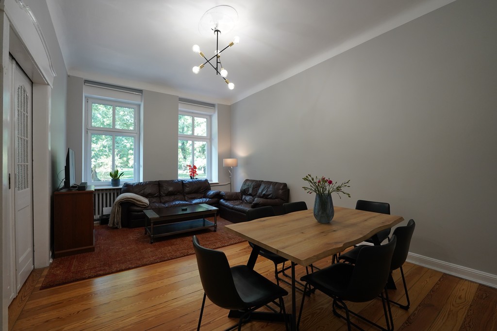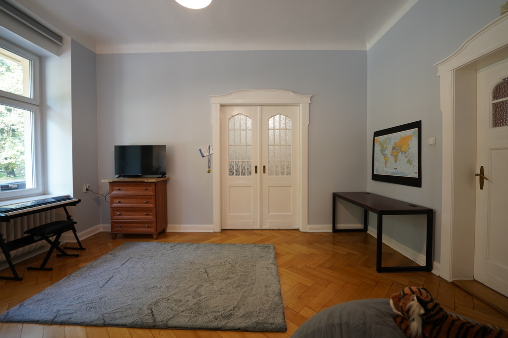 Zum Verkauf steht eine Wohnung in der Nähe des Żeromski-Parks im Erdgeschoss eines Mietshauses. Grundstück mit einer Fläche von 90 m2 besteht aus: – Zimmer, – Zimmer, – Zimmer, – separater Küche, – Badezimmer mit WC, – Flur. Die Immobilie ist bezugsfertig. Die Wände sind geglättet und gestrichen. Die Böden sind originale Holzdielen und Parkett. In der Küche, im Flur und im Badezimmer gibt es Terrakottaböden. Das Anwesen verfügt noch über seine ursprüngliche Holztürverkleidung. Zwischen den beiden Räumen gibt es schöne Doppeltüren. Die Küche verfügt über Einbaumöbel und Haushaltsgeräte. Das Badezimmer ist mit WC, Badewanne und Dusche ausgestattet. Zwei Zimmer bieten einen schönen Blick auf den Żeromskiego-Park. Drei Zimmer blicken auf den grünen Hof. Die Miete an den Verwalter beträgt ca. 1.200 PLN inklusive Heizung, Kaltwasser, Instandhaltung der Gemeinschaftsräume, Renovierungsfonds und Abfallentsorgung. Darüber hinaus sind Strom- und Gasrechnungen vorhanden. Das Mietshaus ist wunderschön gepflegt. Der Käfig ist sehr gepflegt, mit erhaltenen Elementen wie Zierstuck. Am nächstgelegenen Ort befinden sich neben dem Żeromski-Park Wały Chrobrego, Łaszwonia, Geschäfte, Haltestellen des öffentlichen Nahverkehrs und Schulen. Parkplätze neben dem Gebäude. EXKLUSIV