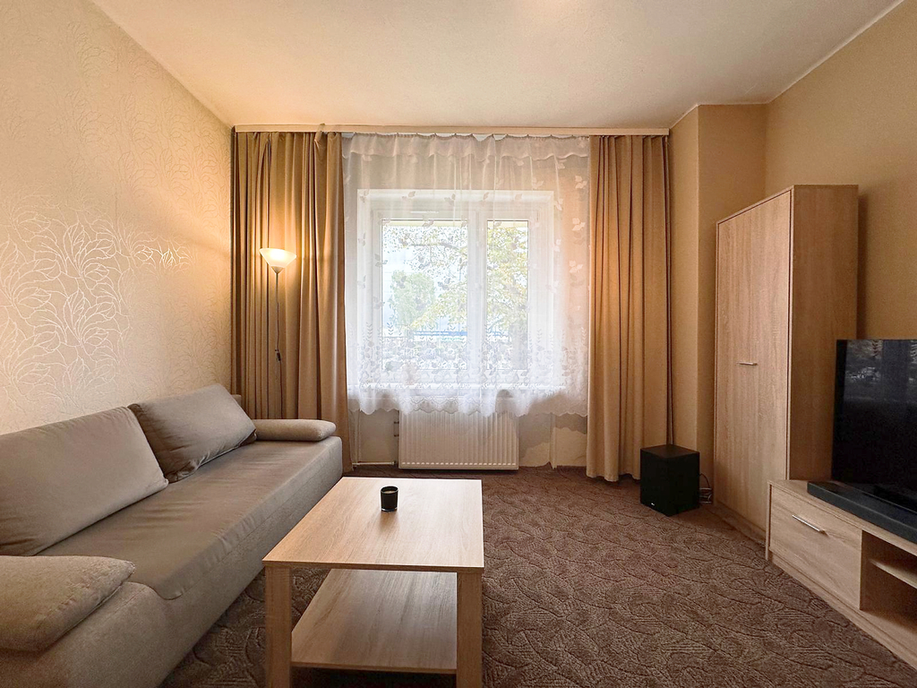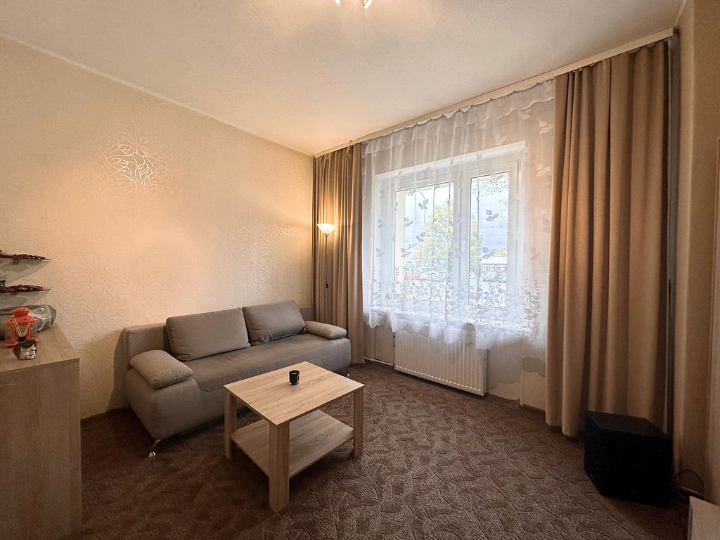 ZU VERKAUFEN 3-Zimmer-Wohnung mit Balkon im Herzen von POGODNA. Zu verkaufen: 3-Zimmer-Wohnung im Erdgeschoss eines 3-stöckigen Backsteingebäudes aus den 1950er Jahren im Herzen von POGODNA. Geplante Wohnung. Die Fläche von 72,45 m2 besteht aus: – einem Wohnzimmer mit einer Fläche von 19,60 m2 mit Durchgang zu einem kleineren Schlafzimmer; – Schlafzimmer (Fläche 15,60 m2) mit Zugang zu einem Loggia-Balkon; – Schlafzimmer mit einer Fläche von ca. 13,16 m2; – Küche (Fläche 13,45 m2) mit eingebauter Speisekammer; – Badezimmer (4,81 m2); – Flur mit in die Wand eingebauter Garderobe und Abstellraum. Zur Wohnung gehört ein großer Keller mit einer Fläche von über 13 m2. Die Bewohner können ihre Autos direkt hinter dem Gebäude parken. Begrenzter Zugang dank einer Schranke, die sich per Fernbedienung öffnen lässt. Das Gebäude wurde isoliert, Wasser- und Abwasserleitungen sowie Strom wurden ersetzt. Wohnstandard, die Wohnung ist gepflegt, jedoch wurden in den letzten Jahren keine größeren Renovierungen vorgenommen. Dichte Fenster, PVC. Die Böden in den Zimmern bestehen aus Parkett und Dielen, teilweise mit Gummi belegt. Tapeten an den Wänden in den Zimmern. Ein Badezimmer mit Fenster, ausgestattet mit Badewanne, Waschbecken und Toilette. Fliesen in Küche und Bad. Eine sehr große, sonnige Küche, ausgestattet mit Küchenmöbeln und Haushaltsgeräten. Heizung aus dem im Gebäude befindlichen Heizraum (Gasheizung) und Warmwasser aus einem eigenen einstufigen Gasofen. Mietfreie Wohnung, Kosten von ca. 1.200 PLN/Monat inklusive Betriebskosten und Renovierungsgeldern. Hohe Erträge am Ende der Heizperiode, sodass Sie etwa 2 monatliche Immobiliengebühren einsparen können. Die Wohnung ist perfekt für eine Familie und für eine Kapitalanlage. Die Lage in der Nähe von „Ryneczka Pogodno“ (Einkaufszentrum Pogodno) ist ein Standort, der sowohl von Menschen geschätzt wird, die den Charme des Grüns als auch die Annehmlichkeiten der städtischen Infrastruktur genießen. In der Nähe gibt es eine Grundschule, einen Kindergarten, eine Universität, Geschäfte, Restaurants, Banken, Apotheken usw. Nur 8 Gehminuten vom Pater-Jakub-Wujek-Platz entfernt. Auch für geschäftliche Zwecke eignet sich die Wohnung möglicherweise (in der Nähe gibt es zahlreiche Notariate, Zahnarztpraxen, Augenarztpraxen etc.), da die Möglichkeit besteht, einen individuellen Eingang zur Wohnung vom Hof abzutrennen. Längere Frist für die Übergabe der Räumlichkeiten. Exklusives Angebot. Ich kann es nur wärmstens empfehlen und lade Sie zur Präsentation ein.
