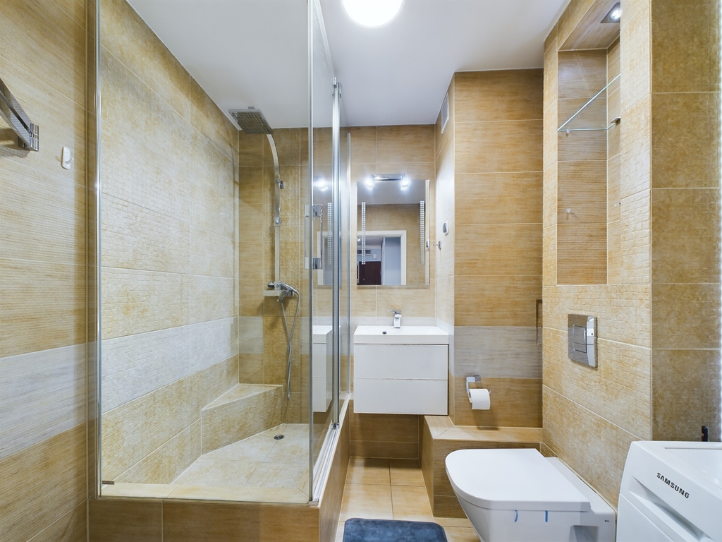 Wir laden Sie ein, sich mit dem Angebot einer attraktiven Zweizimmerwohnung mit Balkon in einer ruhigen Wohnsiedlung in Mierzyn vertraut zu machen. Die Raumaufteilung umfasst: ein geräumiges Wohnzimmer (derzeit ein Kinderzimmer). ) mit Zugang zu einem großen Loggia-Balkon, einem Schlafzimmer, einem Badezimmer mit Toilette und Duschkabine und Flur. Ausbaustandard Die Wohnung ist in sehr gutem Zustand, geräumige und übersichtliche Zimmer, große Küche. Warm, sonnig und gepflegt. Im Preis inbegriffen sind Möbel in der Küche sowie Haushaltsgeräte und Kleiderschränke im Schlafzimmer und im Flur. Paneele auf den Böden und PVC-Fenster. Miete und Nebenkosten Die Miete für die Genossenschaft beträgt 540 PLN (für fünf Personen) und beinhaltet Renovierungsgelder, Müllabfuhr, Wartung und Vorauszahlungen für Kaltwasser. Heizung und Warmwasser aus einem Zweikreis-Gasofen – die Rechnungen belaufen sich alle zwei Monate auf ca. 340 PLN. Strom nach Verbrauch – ca. 190 PLN für zwei Monate. Gebäude und Parken Die Wohnung befindet sich im ersten Stock eines vierstöckigen Backsteingebäudes aus dem Jahr 2006. Es gibt zahlreiche Parkplätze in der Siedlung – der Eingang ist mit einer automatischen Schranke verschlossen, was zusätzlich ein Gefühl der Sicherheit vermittelt. Standort . In der Nähe und in der Nähe der Straßenbahnhaltestelle Gumieńce befindet sich eine Bushaltestelle. Zahlreiche Geschäfte, Einkaufszentrum Ster, Klinik, Schule, Kindergarten. 10 Autominuten ins Zentrum von Stettin, nahe der Grenze in Lubieszyn
