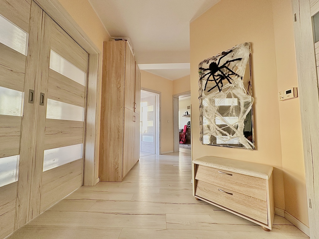 Sonnenuntergang wie in der Toskana – eine einzigartige Wohnung zum Verkauf in Mierzyn! Träumen Sie von einer Wohnung, von deren Balkon aus Sie jeden Abend den romantischen Sonnenuntergang bewundern können, als wären Sie in der malerischen Toskana? Genau diese Atmosphäre bietet diese charmante 3-Zimmer-Wohnung mit einer Fläche von 75,6 m², die sich im 1. Stock eines Flachbaus in Mierzyn befindet. Dank der südwestlichen Ausrichtung der Fenster sind die Innenräume vollkommen sonnig und die Wärme der Sonnenstrahlen begleitet Sie den größten Teil des Tages bis zu den atemberaubenden Abenden. In diesen magischen Momenten, in denen sich der Himmel wie in toskanischen Landschaften in Rot-, Orange- und Rosatöne färbt, ist es unmöglich, den Balkon zu verlassen. Merkmale der Wohnung: • Fläche: 75,6 m² • Anzahl der Zimmer: 3, ideal sowohl für Familien als auch für Menschen, die Wert auf Platz legen • Etage: 1 (in einem niedrigen, intimen Block) • Balkon: Geräumig, mit Blick auf den vollen Himmel warme Farben bei Sonnenuntergängen • Fensterausrichtung: Südwesten, sorgt den ganzen Tag über für natürliches Licht und Wärme (Osten – Küche) • Technischer Zustand: Wohnung in sehr gutem Zustand, mit glatten Wänden und Decken, doppelt verglasten PVC-Fenstern, die Wärme garantieren Komfort Zusätzliche Vorteile der Wohnung: • Miete: 560 PLN pro Monat für die Gemeinschaft – ein attraktives Angebot für diese Größe • Parken: Gemeinschaftsparkplatz mit ferngesteuertem Zugang, der ein bequemes Parken neben dem Grundstück gewährleistet • Gegensprechanlage: Modernes System für den Komfort und Sicherheit der Bewohner • Umgebung: Intime Nachbarschaft, ruhig und friedlich, ideal zum Ausruhen nach der Arbeit, mit einfachem Zugang zur städtischen Infrastruktur. Das Anwesen umfasst einen geräumigen Abstellraum mit einer Fläche von 11,8 m², ideal zur Aufbewahrung von Sportgeräten, Fahrrädern oder Saisonartikeln. Diese Wohnung ist eine wahre Oase der Ruhe. Perfekt für Menschen, die Harmonie, Wärme und Sonne suchen. Der Charme der Toskana ist nicht mehr so weit entfernt – jetzt können Sie ihn in Mierzyn zum Greifen nah haben. Entspannen Sie sich auf dem Balkon bei einer Tasse Kaffee oder einem Glas Wein und bewundern Sie die Sonnenuntergänge, die jedem Tag einen Hauch von Magie verleihen. Wir laden Sie ein, einen Blick darauf zu werfen – Sie werden sich auf den ersten Blick in diesen Ort verlieben!