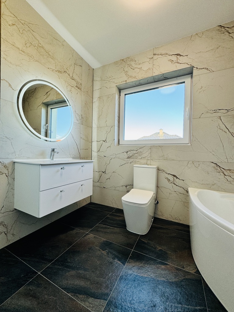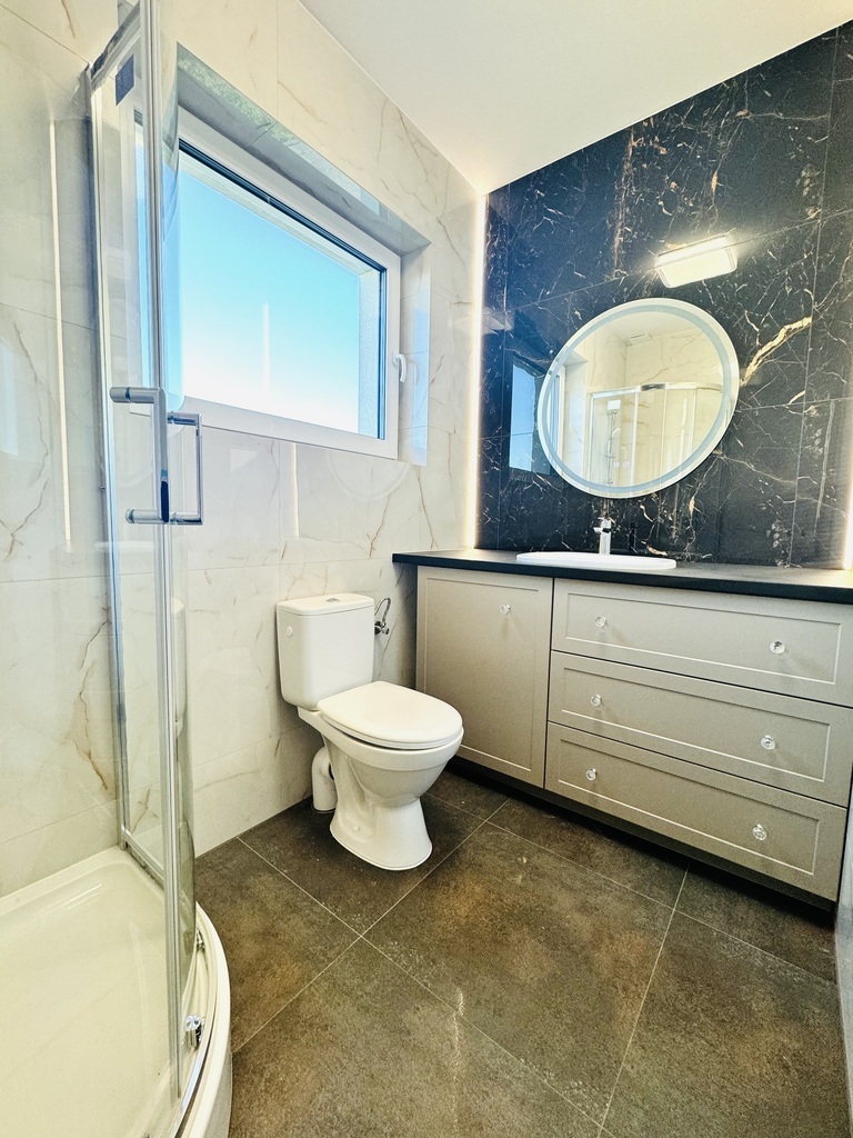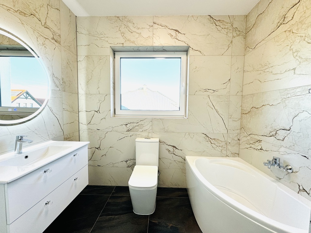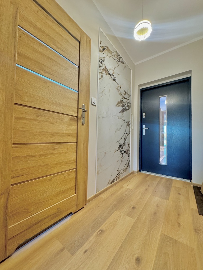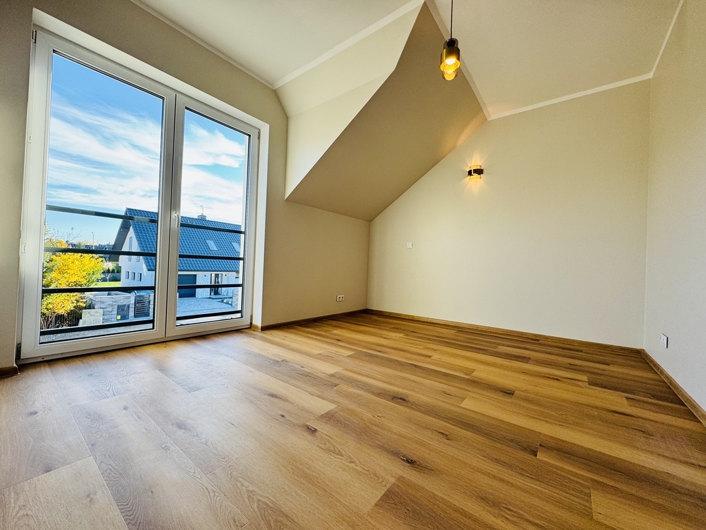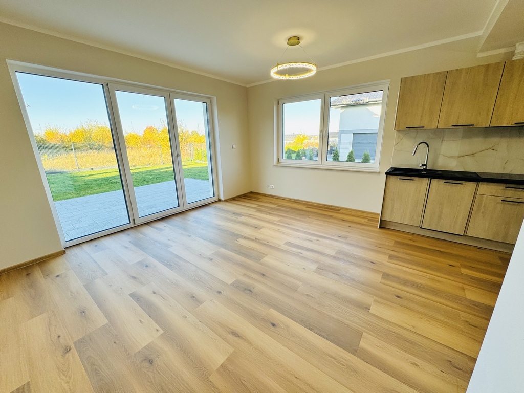 Zu vermieten ist eine schöne 5-Zimmer-Doppelhaushälfte mit einer Nutzfläche von ca. 110 m2, Baujahr 2024 in ausgezeichneter Lage in Mierzyn. Das Grundstück ist sehr sonnig mit Ausblick ins Grüne und in eine ruhige Lage. Um das Anwesen herum befindet sich ein ca. 320 m2 großer Garten. Parkmöglichkeit min. 3 Fahrzeuge auf dem Grundstück. Die vermietete Fläche besteht aus: Erdgeschoss: – Vorraum mit Einbauschrank ca. 5 m2, – Wohnzimmer mit Ausgang zur Terrasse und Garten ca. 22 m2, – sonnige Küche mit hochwertigen Haushaltsgeräten ca. 8 m2, – Bad mit Dusche ca. 4 m2, – Arbeitszimmer ca. 7,5 m2, – Abstellraum unter der Treppe. Obergeschoss: – Schlafzimmer mit Kleiderschrank (ca. 13 + 5,5 m2), – zwei Zimmer mit je ca. 11 m2, – Badezimmer mit Badewanne mit ca. 5 m2. LED-Beleuchtung sowohl oben als auch unten. Fußböden – Paneele. PVC-Fenster. Einbruchsichere Türen. Fußbodenheizung. Hausausstattung gemäß Angebotsfotos. Das Haus war noch nie bewohnt und riecht nach Frische. Bevorzugter Mieter ohne Haustiere für Mindestzeitraum 2 Jahre. Mietform – Gelegenheitsmiete. Mietpreis: 6.000 PLN. Monatliche Nebenkosten: Müll, Heizung – Gas, Strom, Wasser und Abwasser. Haus sofort zu vermieten. Ich lade Sie zur Präsentation ein.