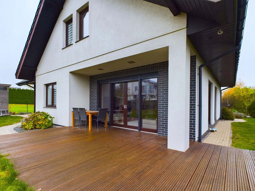 Wir laden Sie ein, sich mit dem Angebot eines schönen Einfamilienhauses vertraut zu machen, das sich in einem sehr attraktiven und prestigeträchtigen Teil des Stadtteils Osów befindet. Das Anwesen befindet sich auf einem schön erschlossenen Grundstück von 785 m2, das durch ein Tor geöffnet ist Fernbedienung. Das Haus wurde 2010 aus Porotherm gebaut, mit Polystyrol und Wolle isoliert, monolithische Decke. Das Dach ist mit Keramikziegeln gedeckt. Ausgestattet mit hochwertigen und hochwertigen Materialien: – dreifach verglaste Holzfenster mit Außenjalousien, – einbruchhemmende Türen, – Zentralstaubsauger, – Alarmanlage, – Heizung und Warmwasser aus einem Brennwertgasofen, zusätzlich ein Holzofen, – Fußbodenheizung und zusätzliche Heizkörperheizung in den Badezimmern. Das Haus ist aufgrund der verwendeten Baumaterialien und der guten Isolierung sehr energieeffizient. Die Nutzfläche des Hauses beträgt 198 m2 (insgesamt 238 m2) und umfasst: – geräumig Wohnzimmer mit Küche und Esszimmer und Zugang zum Garten und zur Terrasse – komplett aus hochwertigen Materialien gefertigt, eine Küche ausgestattet mit Einbaumöbeln und hochwertigen Haushaltsgeräten – ein Raum, der sich perfekt als Büro/Büro eignet, – ein Badezimmer mit Toilette und Duschkabine, – ein Flur, – ein Heizraum/Hauswirtschaftsraum, – eine große Garage mit einer Fläche von ca. 35 m2 – für zwei Autos mit direktem Zugang zum Haus. Im ersten Stock: – großes Schlafzimmer mit Zugang zum Balkon und eigenem Badezimmer mit WC und Dusche – Kleiderschrank, – zwei Zimmer – großes Badezimmer mit Eckbadewanne, Bidet und WC – Flur Garten – schön angelegter Bereich mit Obstbäumen und Sträuchern – automatische Bewässerung und Regenwassertank – Holzschuppen mit Hauswirtschaftsraum – solide ausgestattete Terrasse mit entspannenden Gartenmöbeln Tolle Lage! Einer der vielen Vorteile dieses Hauses ist zweifellos seine fantastische Lage zwischen den begehrtesten Stadtteilen von Stettin: Osowo, Warszew und Wiedze. Das Hotel liegt in einer ruhigen Siedlung mit Einfamilienhäusern in der Nähe vieler schöner Orte, die den Aufenthalt für Menschen, die die Natur und aktive Erholung lieben, attraktiver machen: – 7 Min. zu Fuß nach Szczecińska Gubałówka (550 m) – im Winter offene Eisbahn und Skipiste – 7 Min. mit dem Auto zum Badegebiet und zum Wiedze-See (4 km) – 4 Min. mit dem Auto zum Pferdegestüt (1,8 km) – 5 Min. mit dem Auto zum Arkoński-Wald – 5 km zur Netto Arena, wo viele Veranstaltungen wie Konzerte stattfinden – 5,8 km zum Kasprowicz-Park – 10 Min. mit dem Auto zum Arkonka-Schwimmbad (6 km) – 16 km bis zur Grenze in Lubieszyn – 8 km bis zum Zentrum von Stettin – eine Bushaltestelle in der Nähe – sehr gute Verkehrsanbindung in alle Teile der Stadt. Das Haus ist in einem sehr guten Zustand, gepflegt, warm und sonnig – es sind keine finanziellen Aufwendungen erforderlich. Er wartet auf seine neuen Besitzer. Ich kann Sie nur wärmstens empfehlen und lade Sie zur Präsentation ein.