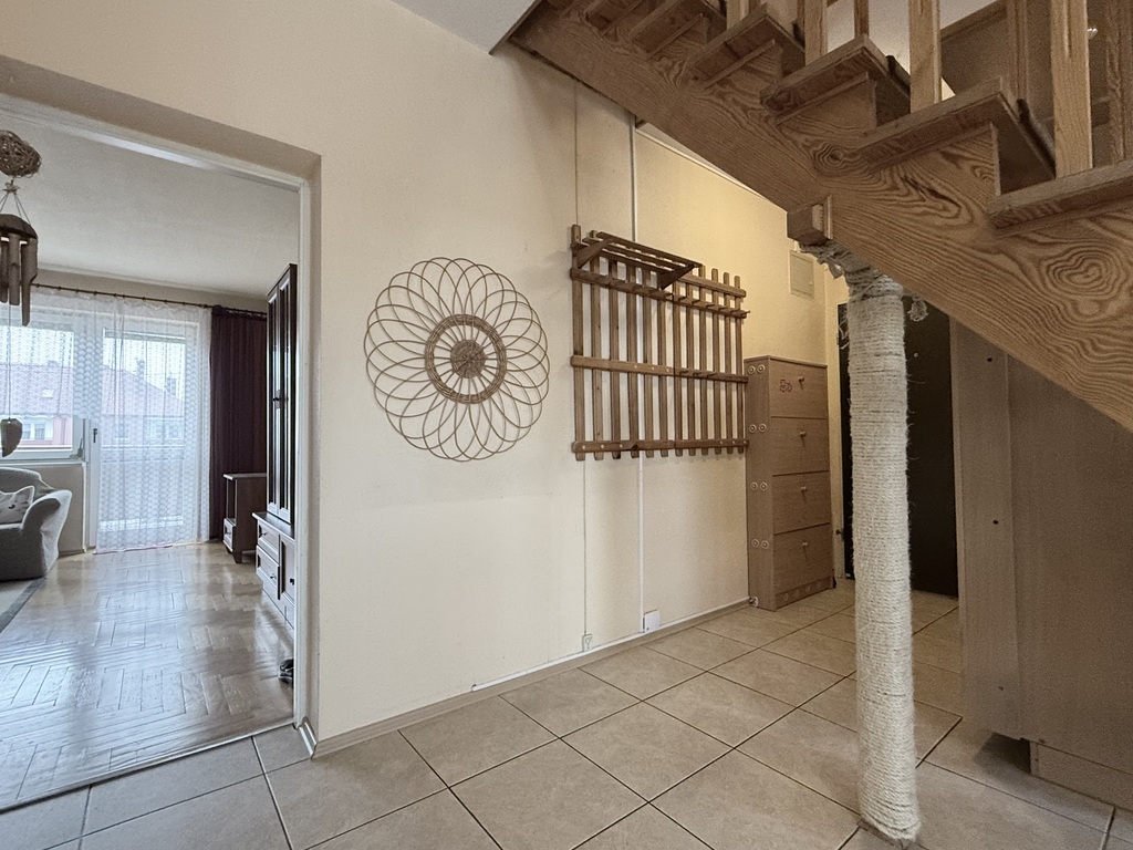 Eine geräumige, zweistöckige Wohnung am Rande der Wohnsiedlung Arkońskie x Niemierzyn. Eine außergewöhnlich große und gleichzeitig warme und gemütliche Wohnung in der Chopina-Straße. Das gesamte Anwesen besteht aus zwei Ebenen mit einer Gesamtnutzfläche von 119,56 m2 (insgesamt über 130 m2). Die erste Ebene besteht aus – Kommunikation/Korridor, – Küche mit Esszimmer und Zugang zu einem kleineren Loggia-Balkon, – Großes Zimmer mit Zugang zu einem ca. 7 Meter großen Balkon, – Badezimmer mit Dusche, – Separates WC. Die zweite Ebene umfasst: – Kommunikations- + Durchgangszimmer (kann vom Flur abgetrennt werden), – 3 große Zimmer/Schlafzimmer, – Großes Badezimmer mit Badewanne und eine separate Waschküche. Die Wohnung verfügt über einen großen 7-Meter-Keller. Die Wohnung ist sehr gemütlich, mit Eichenparkettböden in den Zimmern (klassisch, äußerst langlebig) und glasiertem Steinzeug in den übrigen Räumen. Küchenmöbel (einschließlich kompletter Haushaltsgeräte), Badezimmer, feste Gebäude und die auf den Fotos sichtbaren Möbel sind im Preis inbegriffen. Betriebskosten: – Verwaltungsmiete 730 PLN; -Wasser + Zentralheizung (Vorauszahlung ca. 550 PLN je nach Saison) -Strom nach Verbrauch Das Gebäude verfügt über einen eigenen Gaskesselraum (Warmwasser und Zentralheizung werden in die Wohnung geliefert, jedoch in der Wohnung selbst). Herd und Backofen werden mit Strom betrieben. Für 79.000 PLN besteht die Möglichkeit, zusätzlich eine Garage (einzeln, mit Tor geschlossen) in einer Garage direkt neben dem Block zu erwerben. Das Gebäude wurde einer thermischen Modernisierung unterzogen und die in naher Zukunft geplante Dachsanierung wird den Komfort der Wohnung noch weiter erhöhen. Die Lage des Anwesens macht es zu einem ruhigen Ort und gleichzeitig in der Nähe vieler Annehmlichkeiten. Perfekt für Familien und mehr! In der Nähe finden Sie Geschäfte, Kindergärten, Schulen usw. Dies ist definitiv eine außergewöhnliche Immobilie, die Sie unbedingt persönlich besichtigen müssen. Die Fotos geben den Charakter dieser Wohnung nicht vollständig wieder. Ich kann es nur wärmstens empfehlen und wenn Sie Fragen haben, können Sie diese gerne stellen. EXKLUSIV