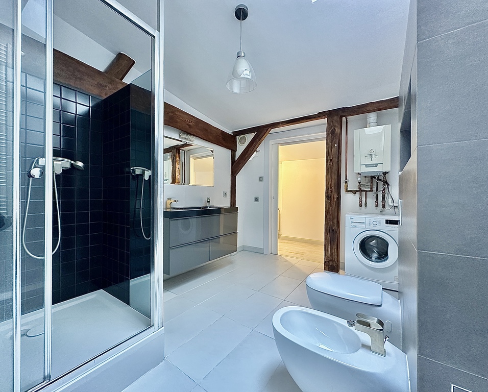 Ich empfehle eine großzügige Wohnung im Stadtzentrum mit einer Nutzfläche von 127 m² (insgesamt 145 m²), hochwertig ausgestattet. Die Wohnung besteht aus: einem geräumigen Wohnzimmer mit offener Küche, drei Schlafzimmern, zwei Badezimmern, zwei Ankleidezimmern, einem Flur und einem Hauswirtschaftsraum. Ein ideales Angebot für Menschen, die helle, offene Räume ohne zu viele Unterteilungen suchen. Zwei Schlafzimmer verfügen über eigene Kleiderschränke mit Flügeltüren. Die Küche und das Esszimmer gehen nahtlos in das Wohnzimmer über und schaffen so einen großen, funktionalen Innenraum. Moderne Badezimmer sind mit Duschkabinen ausgestattet. Die Wohnung wurde geschmackvoll eingerichtet – die Wände sind verputzt, die Böden bestehen aus Paneelen und die Fenster haben sowohl Dach- als auch PVC-Fenster. Der Innenraum wird durch originale, restaurierte Holzbalken ergänzt, die einen einzigartigen Charakter verleihen. Die Räumlichkeiten befinden sich im Dachgeschoss eines Mietshauses mit renovierter Fassade und frisch renoviertem Treppenhaus. Die Miete beträgt 550 PLN (einschließlich Renovierungsfonds und Vorauszahlung für Kaltwasser). Heizung und Warmwasser stammen aus einem sparsamen Gasofen. Darüber hinaus besteht die Möglichkeit, den zweiten Teil des Dachgeschosses zu erwerben und anzupassen, was eine ideale Option für Investoren darstellt, die den Raum in mehrere kleinere Wohnungen umwandeln möchten.