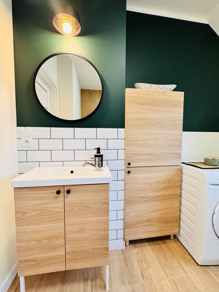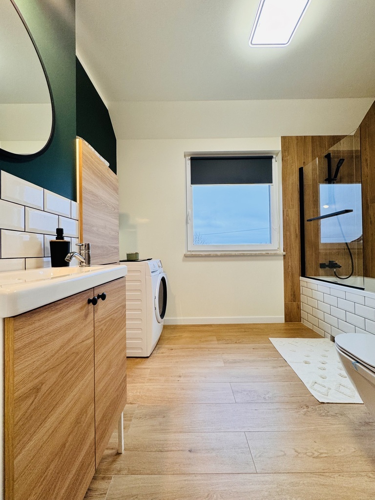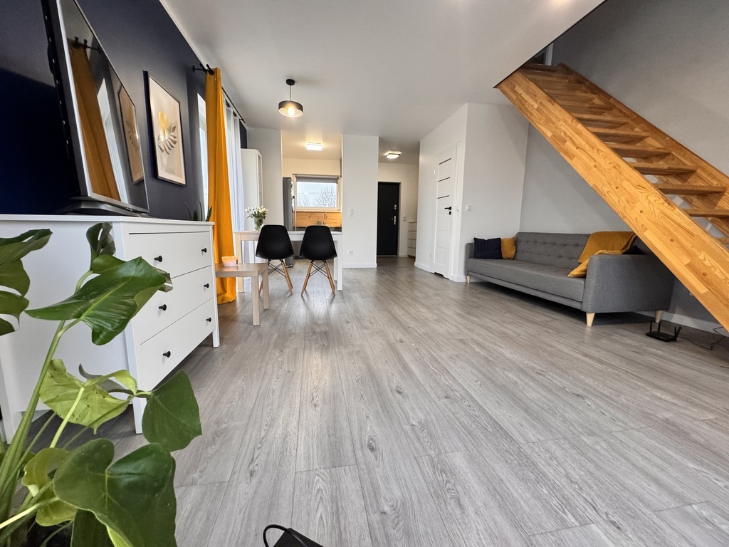 Zu verkaufen ist ab 2022 eine extreme Doppelhaushälfte in Warzymice, gelegen auf einem 460 m2 großen Grundstück. Keine Fasen! Das Anwesen verfügt über eine Garage innerhalb des Gebäudes mit einer Fläche von ca. 17 m2. Das Grundstück ist eingezäunt. Parkplatz für 3 Autos vor dem Gebäude. Das Haus ist sehr sonnig, mit Ausblick auf den Garten und die Einfamilienhäuser. Ein großer Vorteil ist die Ruhe mangels Nachbarn auf der Garten- und Terrassenseite des Gebäudes. Die Zufahrtswege und Einfahrten zum Gebäude bestehen aus Betonblöcken. Städtische Zufahrtsstraße, beleuchtet. Das Objekt besticht durch die schnelle Anbindung an Stettin sowie die unmittelbare Nähe zu Kindergarten und Schule. Die Grundstücksfläche von ca. 112 m2 besteht aus: Erdgeschoss: – Garage ca. 17 m2 mit Wiśniowski-Tor, – Flur ca. 4 m2, – Wohnzimmer (ca. 25 m2) mit Zugang zur Terrasse und zum Garten von ca. 400 m2, – Zimmer/Arbeitszimmer ca. 6 m2, – hochwertige Küche mit Haushaltsgeräten (ca. 5 m2), – Toilette ca. 1 m2. Über eine schöne Holztreppe gelangt man in die erste Etage des Anwesens. 1. Etage: – Flur ca. 11 m2 – Zimmer ca. 17 m2 (kann in den ursprünglichen Zustand zurückversetzt und in zwei Zimmer umgebaut werden), – Schlafzimmer (ca. 12 m2), – Schlafzimmer (ca. 8 m2), – Bad mit Badewanne – Dusche (ca. 7 m2). Über dem Erdgeschoss befindet sich ein ungenutzter Dachboden mit ausziehbarer Treppe. Weitere Informationen zum Objekt: Das Gebäude verfügt über Internet- und TV-Anschlüsse. Heizung und Warmwasser über individuelle Luft-Wärmepumpe (wirtschaftlicher Hausbetrieb). Fußbodenheizung im Erdgeschoss und im ersten Stock. Zwischen den Räumlichkeiten befindet sich eine doppelte Wand. Satteldach mit Keramikziegeln gedeckt (isoliert). PVC-Fenster und Balkontüren, 3-fach verglast. Türen zur Terrasse mit Schiebesystem. Sektionaltor mit automatischer Steuerung. Die Garage ist zusätzlich isoliert. Kanalisation und Stadtwasser. Auf dem Grundstück befinden sich Regenwasserzisternen mit Wasserverteilung auf die Rasenfläche. Geringe Kosten für die Immobilienunterhaltung. Die Ausstattung der Immobilie ist nahezu vollständig im Immobilienpreis inbegriffen. EXKLUSIV Ich lade Sie zur Präsentation ein.