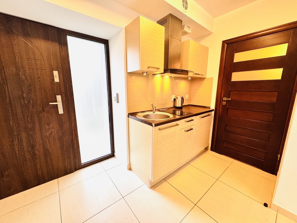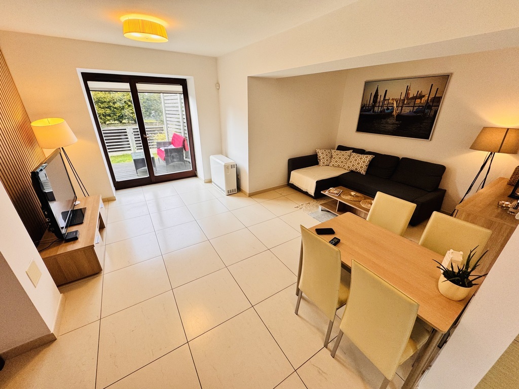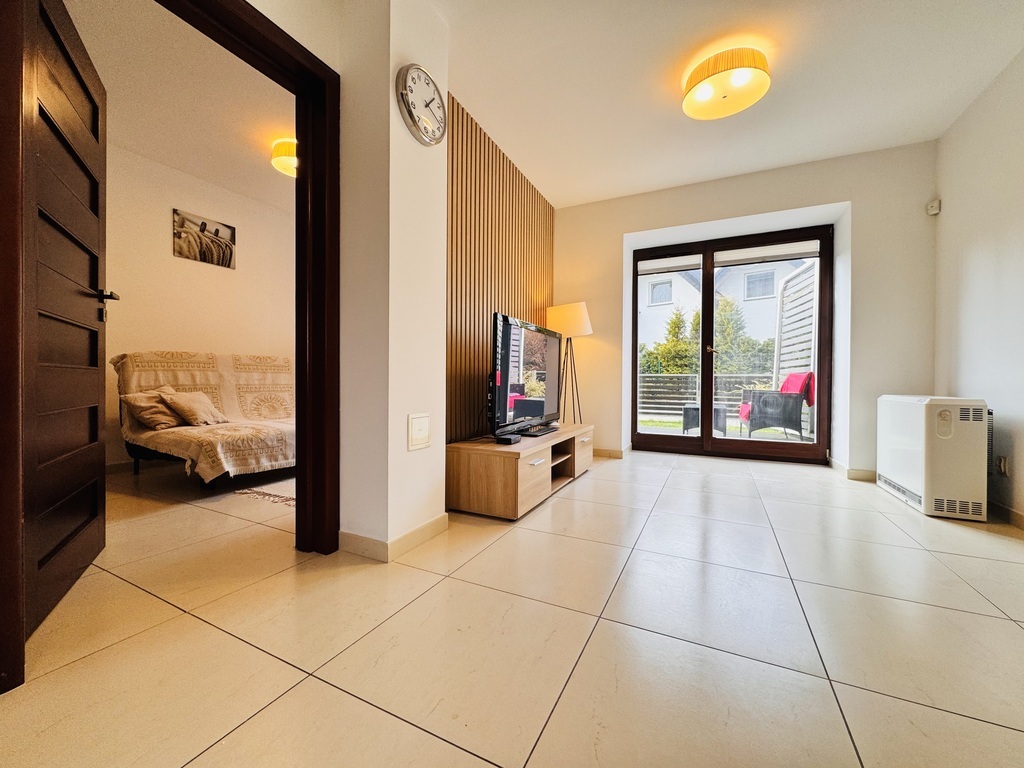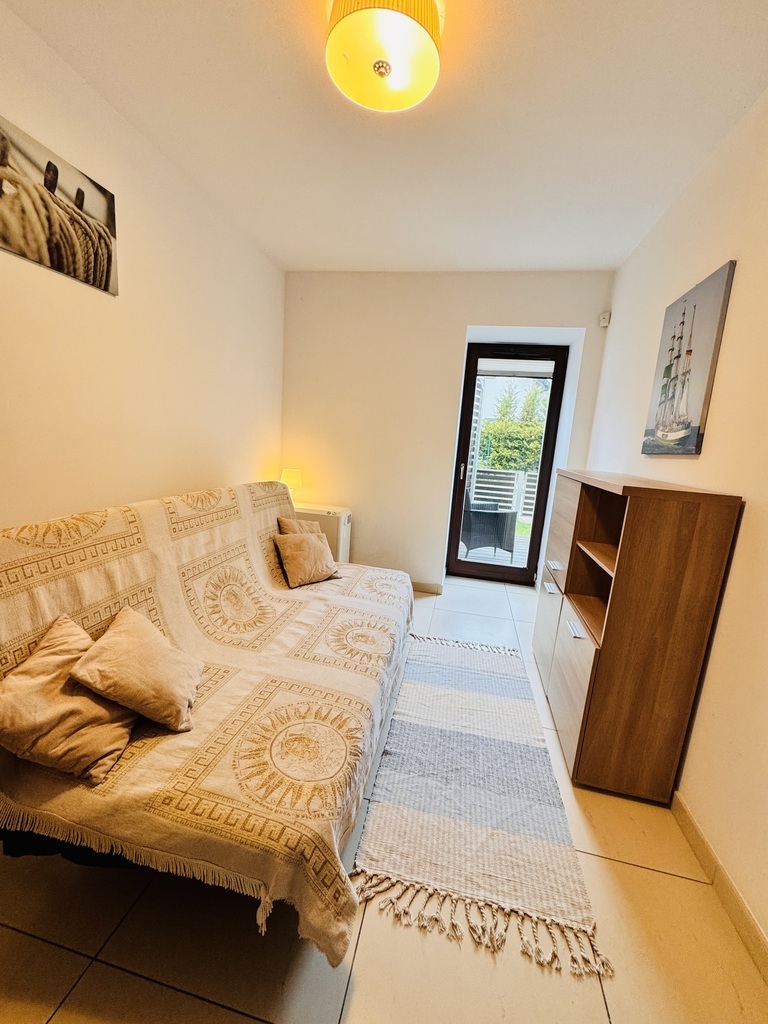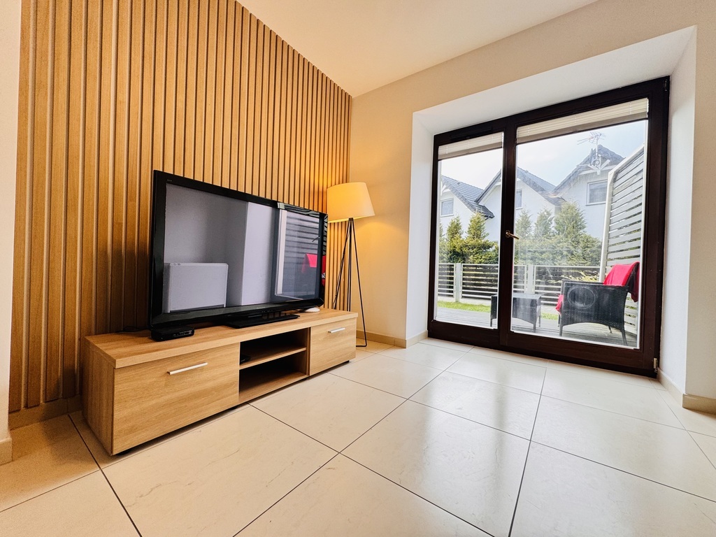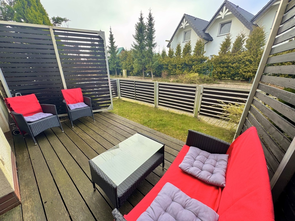 Zu verkaufen ist eine Zweizimmerwohnung mit einer Fläche von ca. 40 m2 im Erdgeschoss eines Gebäudes aus dem Jahr 2011 in einem geschlossenen, eingezäunten Anwesen in Sarbinowo. Zusätzlicher kostenpflichtiger Parkplatz zum Preis von 30.000 PLN. Die Anlage liegt ca. 300 m vom Meer entfernt. Ein ruhiger Ort abseits des Touristentrubels am Meer. Abgeschlossenes, bewachtes Gelände mit viel Grün und kleinem Spielplatz. Das Grundstück steht dem Eigentümer zur individuellen Nutzung zur Verfügung und umfasst einen teilweise gepflasterten Garten (Terrassendielen) sowie eine Grünfläche mit Terrasse seitlich der Grundstückseinfahrt. Die Wohnung ist gemäß Fotodokumentation komplett möbliert und ausgestattet. Die Fläche von ca. 40 m2 besteht aus: – Wohnzimmer (ca. 27 m2) mit Küchenzeile mit Ausgang zur Terrasse und kleinem Garten, – Schlafzimmer (ca. 10 m2) mit Doppelbett und Kleiderschrank, – Badezimmer mit Dusche (ca. 3 m2). Elektroheizung, Wasser durch Elektroheizung. Die monatliche Miete beträgt 330 PLN zuzüglich Strom. Ich lade Sie zur Präsentation ein. Verkaufsfertige Immobilie, bezugsfertig ohne Wartezeit für die Übergabe. Ich lade Sie zur Präsentation ein.