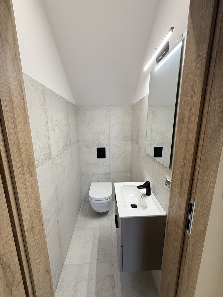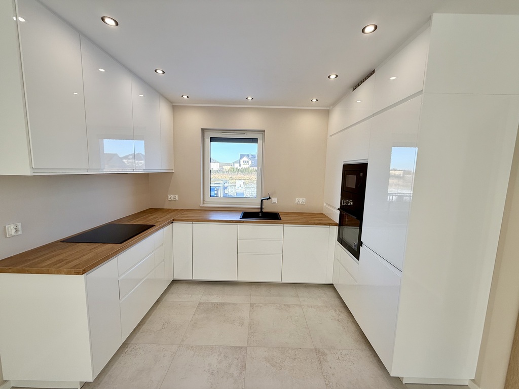 Moderne Doppelhäuser zum Verkauf in einer bebauten Minisiedlung an der Grenze zwischen Stettin und Ustów. Suchen Sie nicht weiter! exclusives Angebot! Das Haus wurde mit größter Sorgfalt und Liebe zum Detail gebaut, es wurde nicht bewohnt, alle Geräte und Sanitäranlagen sind neu und unbenutzt. Ausstattungsstandard, Materialien und Vorteile der Immobilie: – Fußbodenheizung in allen Räumen im Erdgeschoss und Obergeschoss – Wärmepumpe, Monoblock Ferroli OMNIA M 8 – Luft, Inverter-Wärmepumpe (8,4/8,3 kW*), zusätzlich eine Umwälzpumpe und ein Tankwasser. – Fernseh- und Internetinstallation in jedem Zimmer. – Interne Fensterbänke aus Konglomerat. – Treppe zum ersten Stock aus Stahlbeton, mit Granit verkleidet – glatte Wände, in hellen Farben gestrichen. – Einbruchhemmende Eingangstür – KMT Plus 75 – PVC-Fenster, dreifach verglast, Sechskammer-Profil Alupast Ideal 7000 (85-mm-Rahmen mit Lüftungsschlitzen, Winkhause-Beschläge) – Küche, alle neuen Geräte: Geschirrspüler, Induktionskochfeld, Backofen, Mikrowelle und Electrolux-Luftabsorber – italienische Fliesen auf den Böden – Metropolitan und im Badezimmer Tubądzin – linearer Vogi-Abfluss mit Rückschlagventil – Hansgrohe-Wasserhähne – maßgeschneiderte Innentüren – elektrisch gesteuerte Außenrollos, in allen Fenstern installiert das Erdgeschoss und den ersten Stock. – Leitung von der Garage zum Dach zum Anschluss von Photovoltaikmodulen. – Im Wohnzimmer gibt es einen Schornstein des Brata-Systems, der für den Anschluss eines Kamins vorgesehen ist. – Das Haus ist durch eine doppelte tragende Wand (18 cm + Styropor-Dehnfuge + 18 cm) vom Nachbarhaus getrennt. – Decke im Dachgeschoss, isoliert mit Zellulosewolle (35 cm) – Dach isoliert mit Polyurethanschaum – Terrasse aus Pflastersteinen Die Fläche von 106,8 m2 besteht aus: – Wohnzimmer mit Küchenzeile mit einer Fläche von 29m2 – Toilettenbereich 1,3 m2 – Vorraum mit einer Fläche von 3,7 m2 – Garage mit einer Fläche von 19,3 m2 Boden ohne Schrägen: – Drei Räume mit einer Fläche von 14; 12,5 ; 11 m2 – Ankleidebereich 5,4 m2 – Badezimmer mit Toilette, Fläche: 5,95 m2 Im Dachgeschoss Platz für die Lagerung von Saisonartikeln (zusätzliche Fläche ca. 20 m2). Versorgung: Abwasser, Wasser, Strom. Ich lade Sie zur Präsentation ein. EXKLUSIV