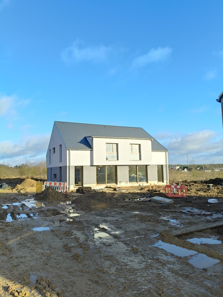 Neues, großzügiges, eingeschossiges Doppelhaus mit einer Gesamtfläche von 137,10 m2 und einer Nutzfläche von 131,42 m2. Sehr gute und bequeme Erreichbarkeit des Gebäudes über eine beleuchtete Straße. Das Gebiet ist ökologisch sauber. Frische Luft und offene Grünflächen direkt am Haus. In der Umgebung befindet sich eine Wohnsiedlung mit Einfamilienhäusern, hier und da aufgelockert durch Doppelhaushälften. Die Grundstücksfläche beträgt ca. 390m2 . Das Grundstück ist teilweise eingezäunt. Möglichkeit, ein Auto am Eingang zu parken. Das Gebäude verfügt über sehr gute thermische Parameter . – 18 cm Polystyrol-Isolierung. – PVC-Fenster mit Dreifachverglasung und Warmeinbau (Schiebefenster im Wohnraum mit niedrigem Profil). – tragende Außen- und Innenwände aus Porotherm. – Innenwände aus Porotherm, 12 cm dick. – Fußbodenheizung im gesamten Gebäude. – Erholung Vorbereiteter Platz für einbruchsichere Rollläden Das Gebäude ist durch eine Wand und eine Isolierschicht vom anderen getrennt. Einbruchsichere Außentüren zum Gebäude. Die Fertigstellung der Bauphase ist für Sommer 2025 geplant. Das Grundstück ist an drei Seiten eingezäunt. VERSORGUNG: Wasser, Abwasser, Regenwasserkanalisation, Strom, Gas, Glasfaser. Möglichkeit, das Dachgeschoss gegen eine zusätzliche Gebühr auszubauen. Die Raumaufteilung ist wie folgt: Erdgeschoss: Wohnzimmer mit Küchenzeile – 39,20 m2 Toilette – 2,45 m2 Flur – 5,42 m2 Kleiderschrank – 3,73 m2 Garage – 15,57 m2 Gesamt: 66,37 m2 —————————– Erster Stock: Schlafzimmer 15,76 m2 Schlafzimmer 9,25 m2 Schlafzimmer 10,24 m2 Schlafzimmer – 16,15 m2 Badezimmer – 6,26 m2 Flur – 7,39 m2 ———————- Gesamt 65,05 m2. Insgesamt 131,42 m2. Ausbaustandard : – Putze, Fußböden – im gesamten Gebäude verteilte Installationen – PVC-Fenster mit Dreifachverglasung – Außentüren mit zwei Schlössern – Dachbodenisolierung mit PUR-Schaum. Möglichkeit zum Anbau eines Carports. Anfangspreis 989.000 PLN. In der Stadt Dobra gibt es Geschäfte – Netto, Biedronka, Rossman und Aldi, ein Postamt, eine Bushaltestelle, eine Kirche, eine Gesundheitsklinik, einen Spielplatz, Rad- und Wanderwege und eine neue Schule. Das Gemeindeamt von Dobra befindet sich am Kreisverkehr.