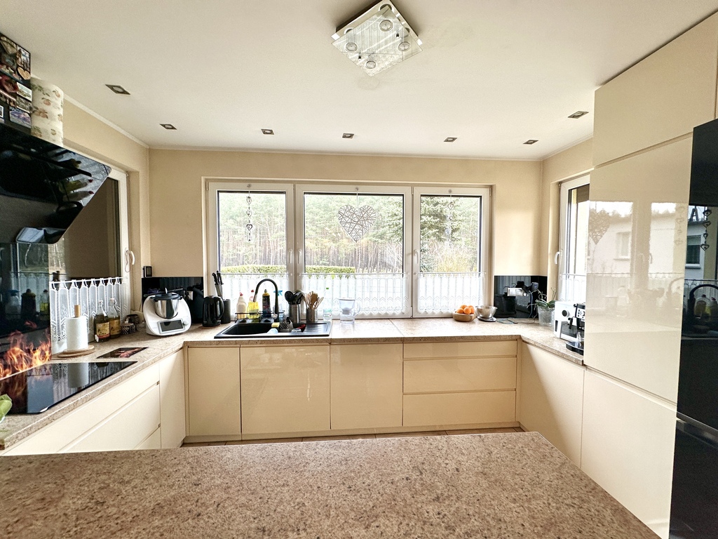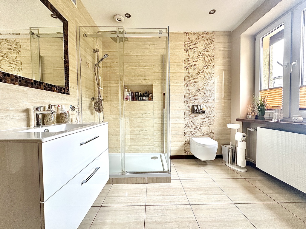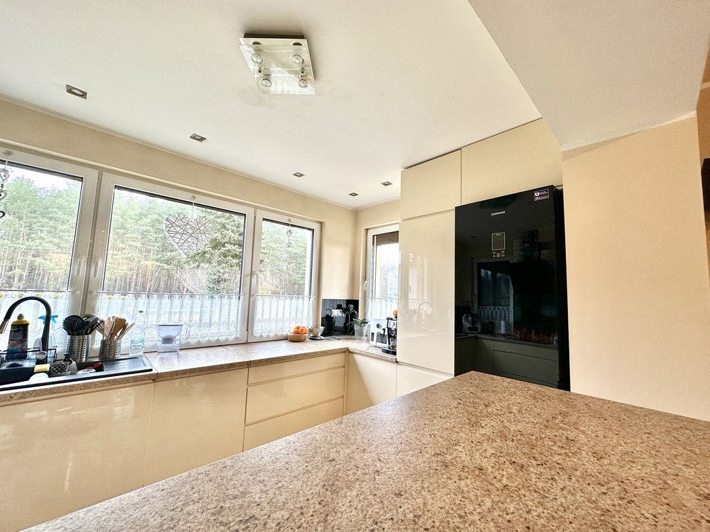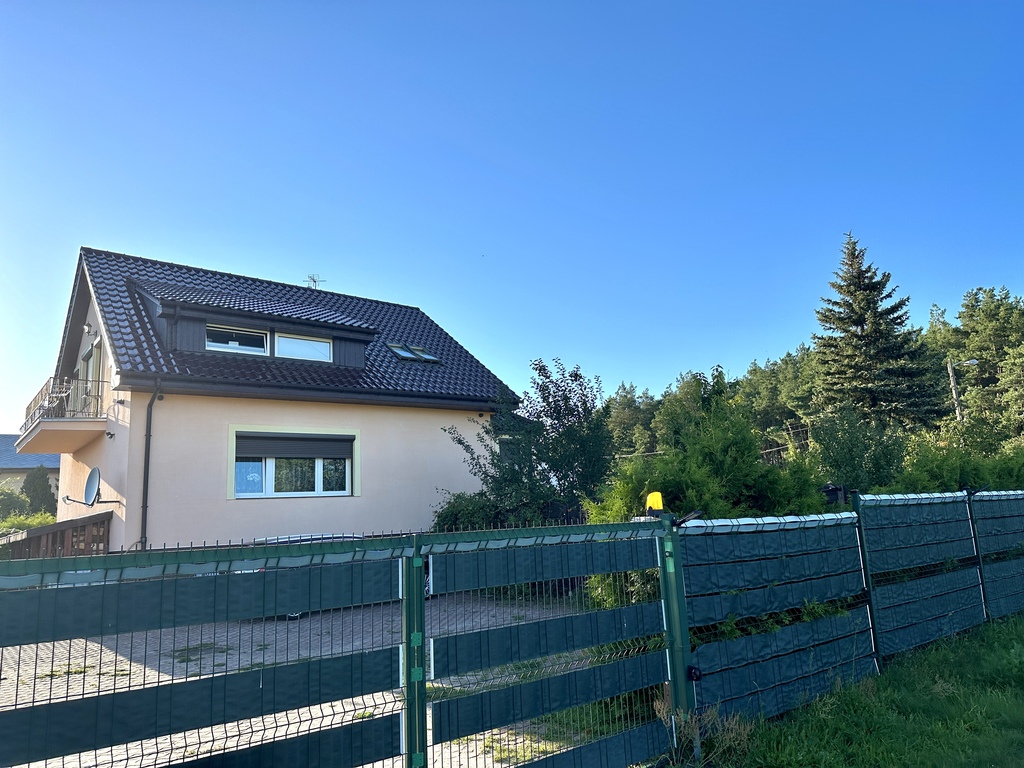 Haus mit Photovoltaik Zu verkaufen Haus in Wołczków mit einer Fläche von 190m2, Fläche Nutzfläche von 130m2 auf einem Grundstück von 1186 m2. Die Immobilie eignet sich sowohl für einen Einzelkunden als auch für die Durchführung einer unbeschwerten Geschäftstätigkeit. Die straßennahe Lage kann ein zusätzlicher Vorteil sein. Rund um das Haus befindet sich ein wunderschöner, gepflegter Garten!! Erdgeschoss: – Vorraum mit einer Fläche von ca. 3 m2, – Flur mit einer Fläche von ca. 4 m2, – Badezimmer mit einer Fläche von ca. 7 m2, – Zimmer mit einer Fläche von ca. 7 m2, das als Arbeitszimmer oder Schlafzimmer für Gäste dienen kann, – Geräumige Küche mit einer Fläche von ca. 10 m2, komplett ausgestattet mit Haushaltsgeräten, einschließlich eines Induktionskochfelds, – Wohnzimmer mit Esszimmer mit einer Fläche von 28 m2, ein idealer Ort, um Zeit zusammen mit Familie und Freunden zu verbringen. Obergeschoss: – Schlafzimmer mit Kleiderschrank, ca. 22 m2, bietet Komfort und viel Stauraum, – Zimmer mit Balkon und Einbauschrank, ca. 16 m2, – weiteres Zimmer, ca. 6 m2, – Badezimmer mit Dusche, Badewanne und Fenster, ca. 7 m2. Garage – im Gebäudekörper ca. 20m2 Das Haus wurde im Jahr 2001 einer Generalsanierung unterzogen, das Dach wurde im Jahr 2011 durch Keramikziegel ersetzt. Die Ziegelwände sind zweischichtig aufgebaut, mit 10 cm Styropor-Dämmung außen und zusätzlichen 5 cm Styropor zwischen den Schichten. Der Außenbereich des Grundstückes wurde mit Pflastersteinen gepflastert. Vor fünf Jahren wurde das Haus einer internen Renovierung unterzogen, in deren Rahmen sämtliche Zentralheizungs- und Warmwasserinstallationen durch Kupferinstallationen ersetzt wurden, die Langlebigkeit und Zuverlässigkeit gewährleisten. Das Haus ist mit einem Wasserfilter und einem Enthärter ausgestattet, der die Qualität des Brauchwassers verbessert. Die Heizung verfügt über einen Zweikreisofen mit Gas, zusätzlich gibt es einen separaten Holzofen. Die installierte Photovoltaikanlage steigert die Energieeffizienz der Immobilie zusätzlich. Die Wasserversorgung erfolgt über das städtische Netz, auch die Abwasserentsorgung erfolgt kommunal. Der Boden im ersten Stock ist mit Platten bedeckt, während im Erdgeschoss verschiedene Materialien verwendet wurden: Im Wohnzimmer und einem kleinen Raum im Erdgeschoss befindet sich eine Barlinek-Platte, während der Rest des Hauses aus Terrakotta besteht. Das Haus verfügt über einbruchsichere Rollläden an den Fenstern im gesamten Gebäude und ein Überwachungssystem bestehend aus sechs Kameras und einem Rekorder, welches für die Sicherheit der Bewohner sorgt. Die Treppe in den ersten Stock ist mit Terrakottafliesen in Holzoptik aus gegossenem Beton bedeckt, was für Langlebigkeit und ein ästhetisches Erscheinungsbild sorgt. Die Fenster im gesamten Haus sind aus Kunststoff und doppelt verglast, was für eine gute Wärmedämmung sorgt. Die Küchenzeile verfügt über dreifach verglaste Fenster von M&S aus Słupsk. Das Haus ist von einem großen Garten mit Lebensbäumen und Obstbäumen umgeben, der Privatsphäre und die Möglichkeit zum Entspannen an der frischen Luft bietet. Das 1.186 Quadratmeter große Grundstück bietet viele Entwicklungsmöglichkeiten, unter anderem Platz für einen Kinderspielplatz, einen Gemüsegarten oder eine Freizeitfläche. Das Objekt ist sehr gepflegt und sauber, ruhig gelegen, mit guter Anbindung an die städtische Infrastruktur. In der Nähe befinden sich Schulen, Geschäfte und Haltestellen des öffentlichen Nahverkehrs. Es ist der ideale Ort für Menschen, die Ruhe und Komfort in einem naturnahen Leben suchen. Ich lade Sie herzlich zur Präsentation ein