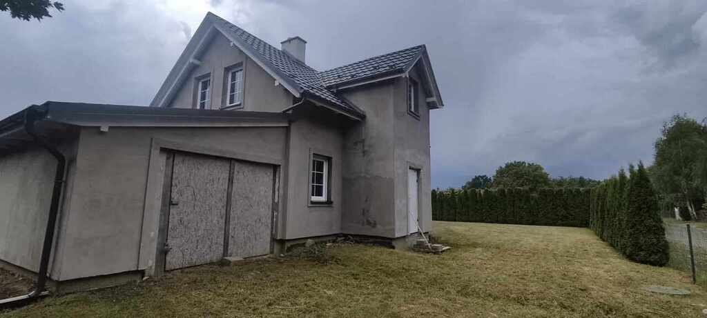 Ein einstöckiges Haus mit Dachboden und Garage im Chopin-Anwesen in Kamień Pomorski. In der Nähe des Grundstücks befindet sich ein Fuß- und Radweg, der zum 7 km entfernten Meer führt. Kamień Pomorski ist unter anderem berühmt für vom malerischen Jachthafen am Kamieński-Stausee, der Altstadt oder der Kathedrale, wo Orgelkonzerte stattfinden. Das nicht unterkellerte Haus befindet sich auf einem 500 m2 großen Grundstück. Fertiggestellt im Rohbau-Standard – Baubeginn 2017 und noch nicht abgenommen. Erdgeschoss mit einer Fläche von 39,2 m2 + Garage mit einer Fläche von 22 m2 (mit einem nicht kippbaren Fenster): – Vorraum – 3,2 m2, – Wohnzimmer 22,95 m2, – Küche + Esszimmer – 6,2 m2, – Heizraum – 3,45 m2 mit Platz für einen Ofen – Gas- oder Pelletkessel, – Badezimmer – 3,4 m2. Die Elektroinstallation wurde im Erdgeschoss installiert. Die Räume wurden teilweise verputzt. Dreifach verglaste PVC-Fenster mit elektrischen Einbruchschutz-Rollläden. Im Wohnzimmer ist Platz für einen Kamin mit Wassermantel. Wasser- und Abwasserinstallation in einem Gebäude ohne Anschluss an eine externe Installation. Städtische Wasser- und Abwasserversorgung. Das Gebäude besteht aus Suporex-Blöcken, die mit 15 cm Styropor isoliert sind. Die Wasser- und Abwassersysteme unter dem Gebäude sind nicht angeschlossen. Zur zweiten Ebene ist eine Wendeltreppe aus Holz geplant. Das Dachgeschoss hat eine Nutzfläche von 31,1 m2 und besteht aus: – Flur mit Kommunikation, – Badezimmer – 7,30 m2, – Zimmer – 11,60 m2, – Zimmer – 8,20 m2, – Kleiderschrank – 6 m2. Alle Räume außer dem Badezimmer sind verputzt und mit Elektroinstallation ausgestattet. Flaches, mit Gras bepflanztes Grundstück mit einem kleinen Holzhaus für Werkzeuge, eingezäunt mit einem Metallzaun. Die Zufahrt zum Grundstück erfolgt über eine beleuchtete Straße mit Pflastersteinen.