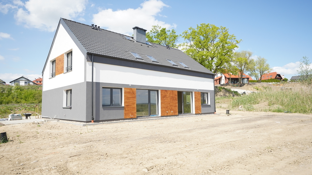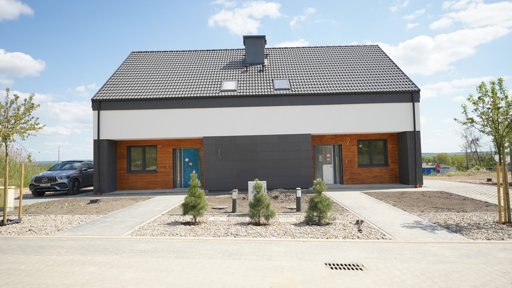 Zu verkaufen ist eine sehr schöne neue, bezugsfertige Doppelhaushälfte in perfekter Lage mit Blick auf den Teich und andere neue Wohngebäude im schönen Dorf Siadło Dolne – 10 Autominuten vom Zentrum von Stettin entfernt. Zufahrt über eine asphaltierte Straße. In der Nähe gibt es einen schönen Yachthafen und eine Promenade mit Grillplätzen. In unmittelbarer Nähe entsteht ein Lebensmittelgeschäft, Restaurant etc., was das Leben noch angenehmer machen wird. Das Haus liegt am Ende einer Sackgasse, was uns Ruhe und Frieden abseits vom Autoverkehr garantiert. Energiesparendes und ökologisches Gebäude, ausgestattet mit einer 8-kW-Atlantic-Wärmepumpe (in Frankreich hergestellte EU-Pumpe). Außenverkleidung des Gebäudes: – Außenwände – Silka-Kalksandsteine; – Bauen auf einer Fundamentplatte auf Pfählen – Fundamentdämmung – Remmers Materialien und Technik; – 20 cm Polystyrol-Isolierung, Abschluss mit Fassadenputz; – Dachboden – mit PUR-Schaum isoliert (ökologische und energiesparende Lösung); – Dachziegel – Zement; – dreifach verglaste PVC-Fenster, Türen – PVC; Einbruchhemmende Eingangstür Typ „Gerda“ – Ausführung – Struktur- und Trennwände, Gipsputze; 190 Liter Tank. Fußbodenheizung im gesamten Haus. Anlage für Photovoltaik vorbereitet; – Zentralsteuerung für Fußbodenheizung; – Verteilung der Elektroinstallation; – Installation elektrischer Geräte (Steckdosen, Schalter); – Alarmanlage installiert – Verkabelung für mehrere Basismelder (Räume mit Fenstern); – eingezäunte Hausgärten zur individuellen Bebauung (z.B. Ausbringung von gewachsener Erde): Die flächenmäßige Nutzfläche beträgt 107,1m² einer Doppelhaushälfte. Gesamtfläche 118,2 m2 Erdgeschoss: 58,14 m2 Wohnzimmer + Esszimmer + Küche 29,76 m2 Arbeitszimmer 9,55 m2 Bad mit WC 5,74 m2 Flur 7,59 m2 Treppenhaus 5,5 m2 Obergeschoss: 57,58 m2 Schlafzimmer 16,84 m2 Schlafzimmer 13,85 m2 Schlafzimmer 13,84 m2 Bad mit WC 7,82 m2 Flur 5,23 m2 Gegen Aufpreis besteht die Möglichkeit, einen Carport zu errichten. Käufer von 2 % PCC-Steuer befreit – EXKLUSIV.
