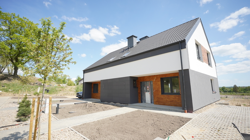Zu verkaufen ist eine sehr schöne neue, bezugsfertige Doppelhaushälfte in perfekter Lage mit Blick auf den Teich und andere neue Wohngebäude im schönen Dorf Siadło Dolne – 10 Autominuten vom Zentrum von Stettin entfernt. Zufahrt über eine asphaltierte Straße. In der Nähe gibt es einen schönen Yachthafen und eine Promenade mit Grillplätzen. In unmittelbarer Nähe entsteht ein Lebensmittelgeschäft, Restaurant etc., was das Leben noch angenehmer machen wird. Das Haus liegt am Ende einer Sackgasse, was uns Ruhe und Frieden abseits vom Autoverkehr garantiert. Energiesparendes und ökologisches Gebäude, ausgestattet mit einer 8-kW-Atlantic-Wärmepumpe (in Frankreich hergestellte EU-Pumpe). Außenverkleidung des Gebäudes: – Außenwände – Silka-Kalksandsteine; – Bauen auf einer Fundamentplatte auf Pfählen – Fundamentdämmung – Remmers Materialien und Technik; – 20 cm Polystyrol-Isolierung, Abschluss mit Fassadenputz; – Dachboden – mit PUR-Schaum isoliert (ökologische und energiesparende Lösung); – Dachziegel – Zement; – dreifach verglaste PVC-Fenster, Türen – PVC; Einbruchhemmende Eingangstür Typ „Gerda“ – Ausführung – Struktur- und Trennwände, Gipsputze; 190 Liter Tank. Fußbodenheizung im gesamten Haus. Anlage für Photovoltaik vorbereitet; – Zentralsteuerung für Fußbodenheizung; – Verteilung der Elektroinstallation; – Installation elektrischer Geräte (Steckdosen, Schalter); – Alarmanlage installiert – Verkabelung für mehrere Basismelder (Räume mit Fenstern); – eingezäunte Hausgärten zur individuellen Bebauung (z.B. Ausbringung von gewachsener Erde): Die flächenmäßige Nutzfläche beträgt 107,1m² einer Doppelhaushälfte. Gesamtfläche 118,2 m2 Erdgeschoss: 58,14 m2 Wohnzimmer + Esszimmer + Küche 29,76 m2 Arbeitszimmer 9,55 m2 Bad mit WC 5,74 m2 Flur 7,59 m2 Treppenhaus 5,5 m2 Obergeschoss: 57,58 m2 Schlafzimmer 16,84 m2 Schlafzimmer 13,85 m2 Schlafzimmer 13,84 m2 Bad mit WC 7,82 m2 Flur 5,23 m2 Gegen Aufpreis besteht die Möglichkeit, einen Carport zu errichten. Käufer von 2 % PCC-Steuer befreit – EXKLUSIV.