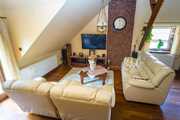 Ein freistehendes Haus am Rande von Tanowo, in der Nähe des Waldes. Gebäude aus dem Jahr 2003 (Erstbesitzer) mit einer Gesamtfläche von 268 m2 (Nutzfläche ca. 190 m2), gelegen auf einem erschlossenen Grundstück von 190 m2. 810 m2. Ein eingeschossiges Gebäude mit ausgebautem Dachgeschoss, Teilkeller, einer Garage im Gebäudekörper und einem Carport. Erdgeschoss mit einer Nutzfläche von 148 m2 bestehend aus einem Flur, einem großen Wohnzimmer, einer separaten, zum Esszimmer offenen Küche, zwei Schlafzimmern, einem Arbeitszimmer, einem Badezimmer und einer Toilette. Vom Wohnzimmer aus gibt es einen Ausgang zur überdachten Terrasse auf der Gartenseite. Eine (sehr bequeme) Holztreppe führt in die zweite Ebene. Zweite Ebene: Fernsehzimmer mit Zugang zu einem bezaubernden Balkon, Schlafzimmer mit separatem Kleiderschrank, großes Badezimmer und ein kleineres Zimmer mit Oberlicht. Zusätzliche Treppe zum Zwischengeschoss – Mini-Fitness. Keller unter einem Teil des Gebäudes (74 m2) bestehend aus Hauswirtschaftsraum, Waschküche, zusätzlichem Badezimmer und Garage für ein Auto. Das Gebäude befindet sich in einem sehr guten technischen Zustand – sämtliche Modernisierungen und Reparaturen werden laufend durchgeführt. Neue Art der Holzfensterschreinerei. Jalousien im Erdgeschoss. Holzböden außer Flur, Küche und Badezimmer (Terrakotta). Gasheizung (Zweistufenofen) plus Kamin im Wohnzimmer. Verteiltes Alarmsystem. Das Abwassersystem wird zu einem großen geschlossenen Tank (Klärgrube) geleitet. Weitere Stellplätze unter einem auf dem Grundstück „verklebten“ Carport. Das gesamte Grundstück ist eingezäunt und verfügt über automatische Eingangstore sowie einen ausgewiesenen Entspannungsbereich im Garten. Die Fotos geben die Atmosphäre und den Charakter dieser klassischen Immobilie nur bedingt wieder – Interessenten sind zu einer Präsentation eingeladen.