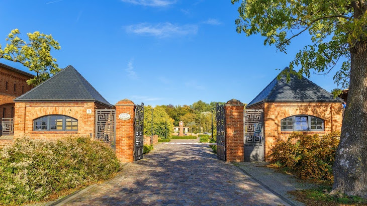 Die Wohnung liegt in einem der drei Apartmenthäuser, die zum ursprünglichen Gutshof ausgerichtet sind und sich gegenüber eines gepflasterten Innenhofs befinden. Interne Wege verbinden die Pforte am Eingang der Wohnanlage mit dem Apartmenthaus und dem zugewiesenen Parkplatz (ca. 50 m vom Haupteingang entfernt).
