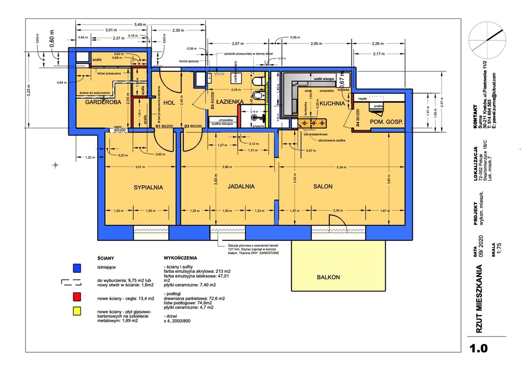 Die Wohnung befindet sich im ersten Stock eines dreigeschossigen Apartmenthauses innerhalb einer geschlossenen Wohnanlage in Skarbimierzyce, Gemeinde Dobra (Szczecińska), Kreis Police, Woiwodschaft Westpommern. Das Gebäude wurde 2018 erbaut, die Wohnung selbst wurde 2020 entworfen und fertiggestellt.
