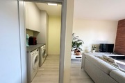 Die Küche (6,72 m²) ist voll ausgestattet mit Induktionskochfeld, Backofen, Mikrowelle, Geschirrspüler, Kühlschrank und Gefrierschrank. Es gibt deckenhohe Hängeschränke für Geschirr sowie eine durchgehende, strapazierfähige Arbeitsfläche mit Schubladen für Küchenutensilien.