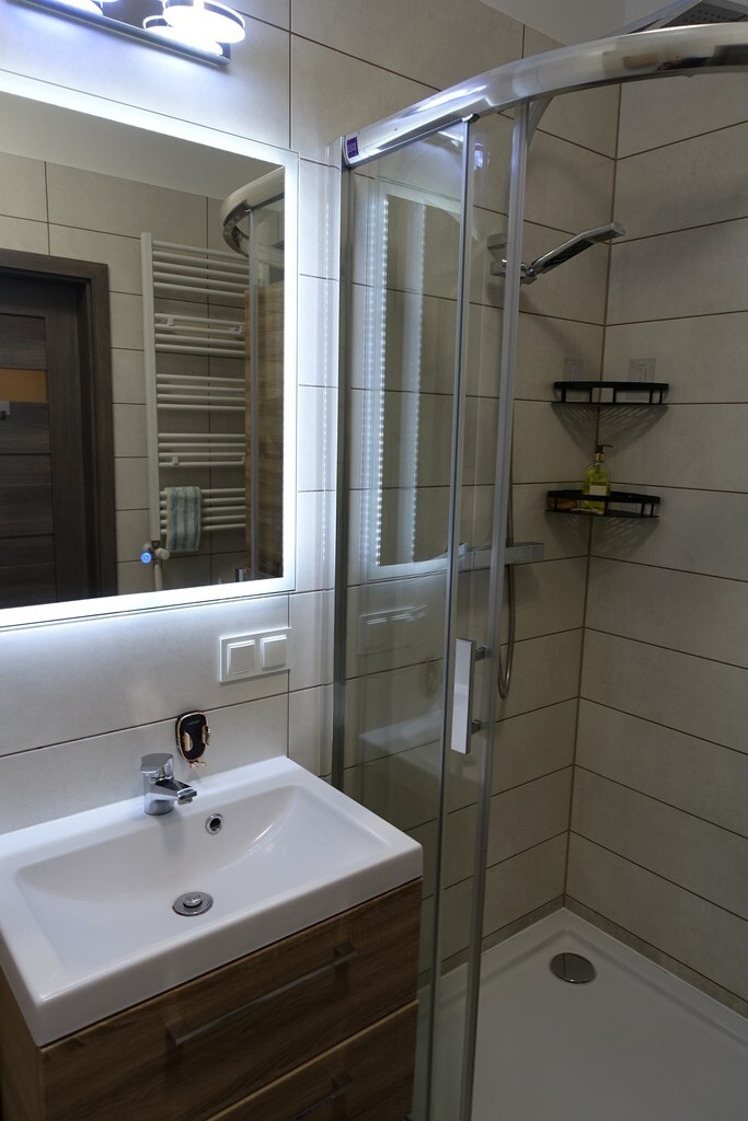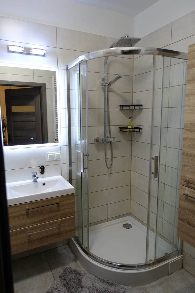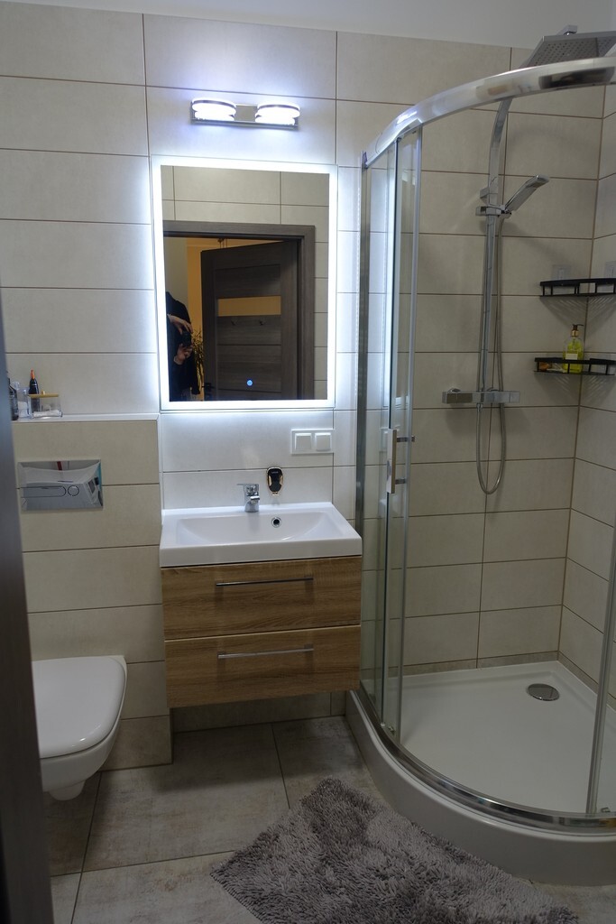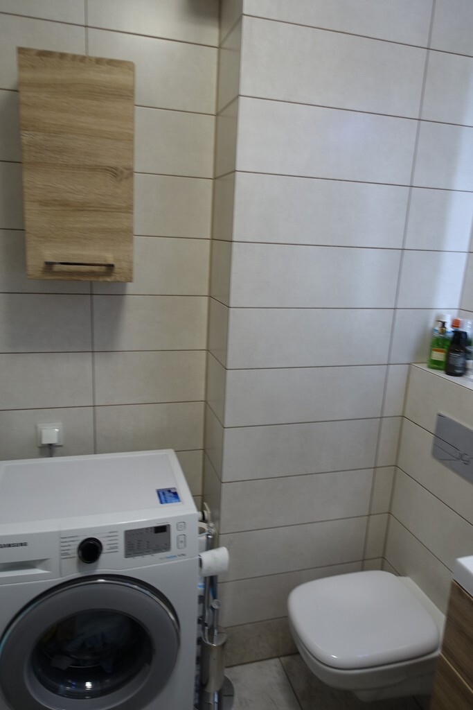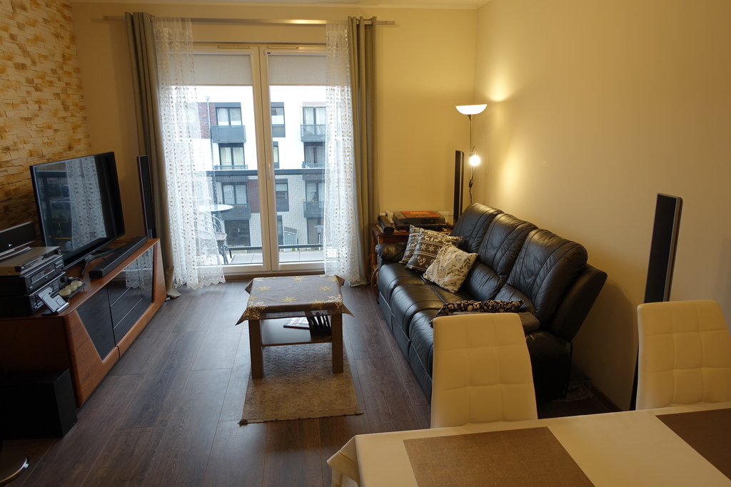 2-Zimmer-Wohnung mit einer Fläche von 42,8 m2 in einem niedrigen Mehrfamilienhaus im dritten Stock in einer neuen Wohnsiedlung in Gumieńce – NOWA CUKROWNIA in einem dreistöckigen Gebäude aus dem Jahr 2018. Die Wohnung ist komplett möbliert und ausgestattet. WOHNUNGSBESCHREIBUNG: Wohnzimmer ca. 18 m2 mit Kochnische, mit Zugang zu einem 2 m2 großen Balkon, 12 m2 großes Schlafzimmer mit großem Einbauschrank vom Typ Komandor, Badezimmer mit Duschkabine, Waschbecken mit Unterschrank und Einbauschränken, Flur. Der Wohnbereich besteht aus einem Wohnzimmer mit Küchenzeile. Einbauküche, ausgestattet (Induktionskochfeld, Backofen, Geschirrspüler, Dunstabzugshaube mit Entlüftung, Kühlschrank). Vom Wohnzimmer aus gelangt man auf einen gemütlichen, sonnigen Balkon. Durch die Lage zu den Himmelsrichtungen verfügt die Wohnung über eine wunderbare natürliche Beleuchtung. Das Schlafzimmer hat eine regelmäßige quadratische Form und verfügt über einen praktischen, geräumigen Einbauschrank. Badezimmer in eleganten Fliesen und Terrakotta mit Duschkabine, Waschbecken, Toilette. Eine gemütliche und komfortable Wohnung, die ein sehr attraktives Angebot für Menschen darstellt, die einen komfortablen Ort zum Wohnen oder als Kapitalanlage suchen.