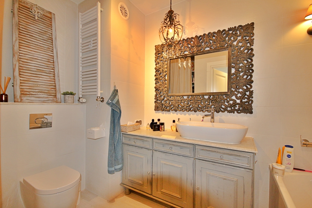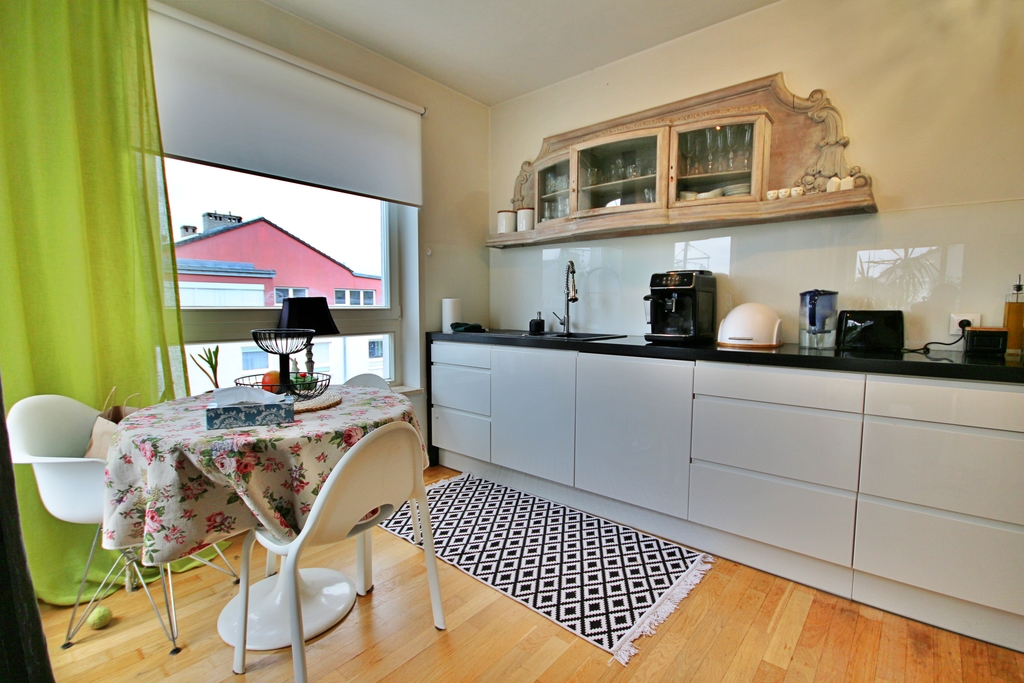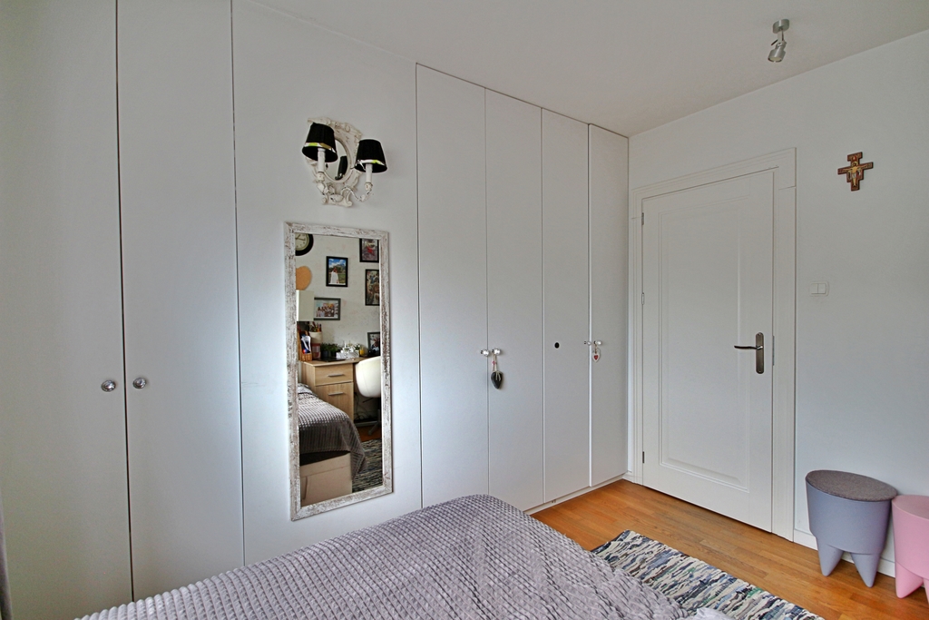 Attraktive Wohnung von 100 m² x 81 m² mit einer geräumigen 45-Meter-Terrasse. In drei Worten: Komfort, Platz und Eleganz. Wir bieten zum Verkauf eine äußerst gemütliche und stilvoll eingerichtete Wohnung mit einer Fläche von 81 m² an, die sich im obersten, 4. Stock eines Gebäudes mit Aufzug befindet. Dies ist ein ideales Angebot für Menschen, die Wert auf Komfort, Ästhetik und Naturverbundenheit legen. Die Wohnung ist von einer großzügigen Terrasse mit einer Fläche von bis zu 45 m² umgeben, die besondere Privatsphäre und einen Ort zum Entspannen und Treffen im Freien bietet. Aufteilung der Räume: – großzügiges Wohnzimmer mit Schiebefenster und Kamin, – halboffene, funktionale Küche mit Einbaumöbeln und Haushaltsgeräten, – zwei helle Schlafzimmer, – Arbeitszimmer bzw. Büro, – komfortables Bad und Flur mit geräumigen Kleiderschränken. Hauptvorteile: – hochwertige Ausstattung: Eichenparkett, maßgefertigte Holztüren und -schränke, Naturstein, Designermöbel – große, raumhohe Fenster für hervorragende Innenbeleuchtung – Terrasse mit Pflanzen, Markise und Geräteschuppen, aufgeteilt in einen Entspannungs- und einen Hauswirtschaftsbereich – Südausrichtung mit Sonne für fast den ganzen Tag – intime Lage, da sich die Wohnung im obersten Stockwerk befindet, was Ruhe und Privatsphäre garantiert. Dieses elegante Apartment besticht nicht nur durch seine Funktionalität, sondern auch durch seine einzigartige Atmosphäre. Dies ist ein Ort, an den Sie gerne zurückkehren, ideal für Menschen, die eine einzigartige Atmosphäre, Platz und Stil auf hohem Niveau suchen. Wir laden Sie ein, Kontakt mit uns aufzunehmen und einen Besichtigungstermin zu vereinbaren, diese Wohnung ist wirklich beeindruckend!