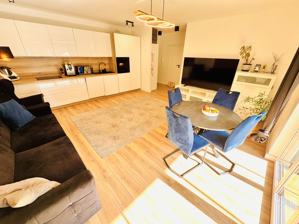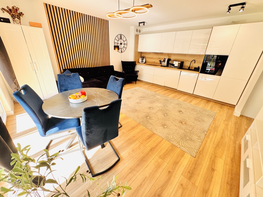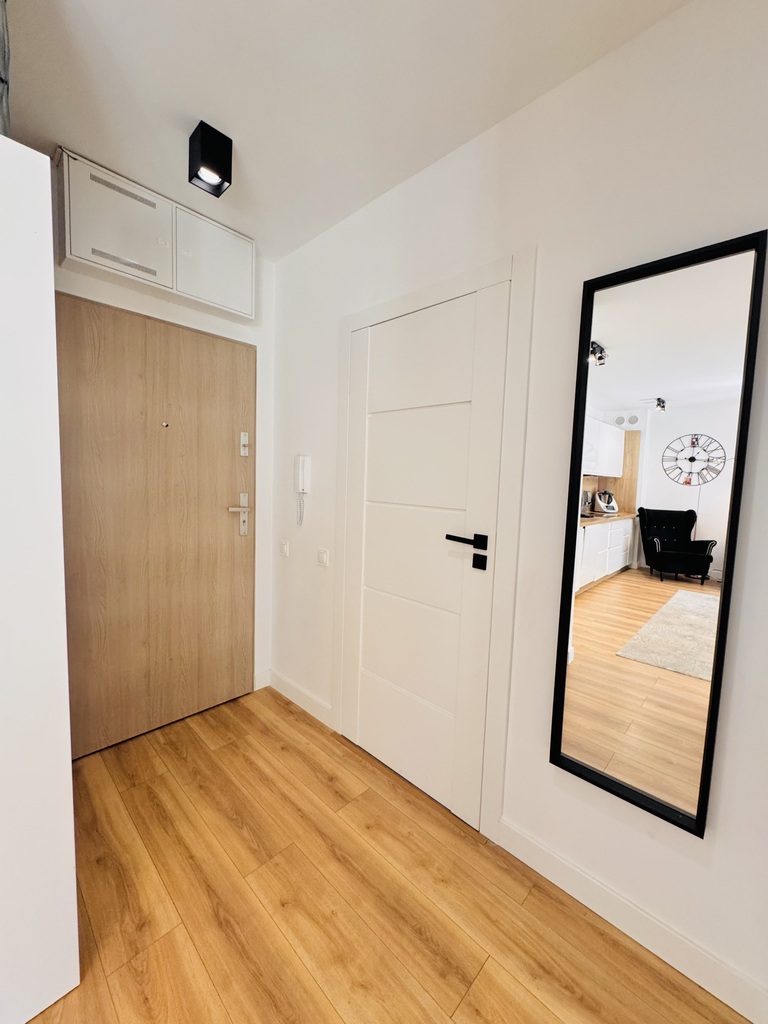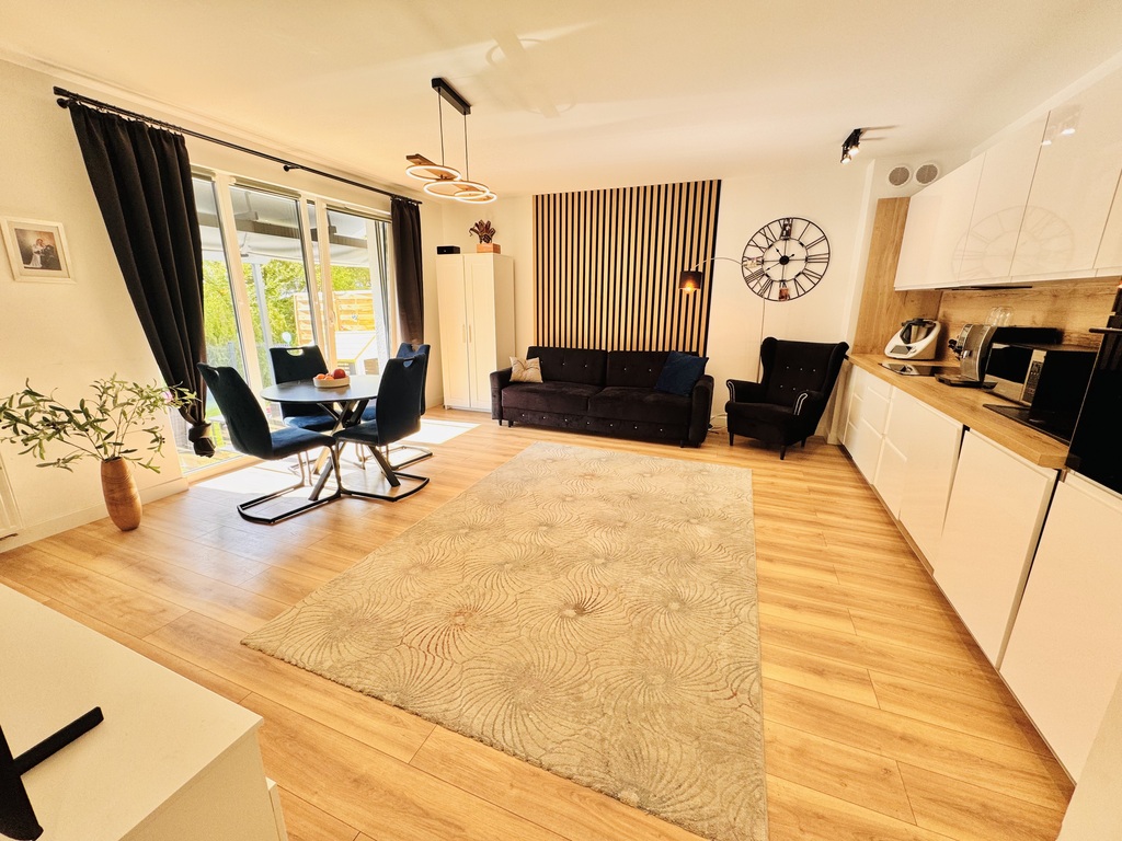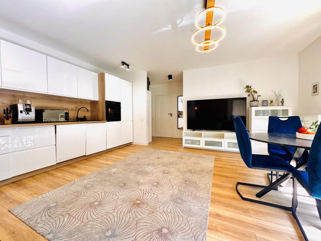 Zu verkaufen ist eine sehr schöne, sonnige Zweizimmerwohnung mit Garten in einer Neubausiedlung in Rajkowo. Das Objekt befindet sich im Erdgeschoss in einem niedrigen, dreigeschossigen Gebäude aus dem Jahr 2023. Die Fläche beträgt ca. Die Wohnfläche von ca. 46 m2 besteht aus: – Wohnzimmer (mit Ausgang zur Terrasse und Garten von ca. 60 m2) mit Küche in Form einer Küchenzeile, ausgestattet mit hochwertigen Haushaltsgeräten, Garten mit Gerätehaus, bepflanzt, – Schlafzimmer/Kinderzimmer, – Badezimmer mit Badewanne mit Duschmöglichkeit, – Flur mit Einbauschrank. Fernwärme und Warmwasser. Gebühren: 650 PLN (4 Personen) + Strom. Eine Wohnsiedlung mit üppiger Vegetation, einem Spielplatz, einem „Żabka“-Laden und Parkplätzen (Parkplatz im Freien kostet zusätzlich 25.000 PLN – Kauf obligatorisch). Gemütliche, niedrige Gebäude mit einem grünen Innenhof inmitten der Siedlung. In der Nähe gibt es eine Bushaltestelle und in Przecław: einen Kindergarten, Kindergartenplätze und eine Schule mit Sportplatz. Ich lade Sie zur Präsentation ein. EXKLUSIV