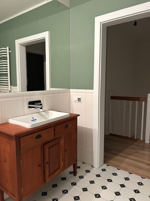 Ein komfortabel eingerichtetes Doppelhaus aus dem Jahr 2023, 6 km von Koszalin, 2,5 km von der S 6 und 12 km von Mielno entfernt. Die Immobilie in Tatów ist bezugsfertig. Die Fläche des Hauses beträgt 98,28 m2, das Grundstück ist 438 m2 groß. Das Grundstück ist flach, eingezäunt und mit Rasen bepflanzt. Erdgeschoss: Vorraum (2,68 m2), Flur (1,88 m2), Hauswirtschaftsraum (2,86 m2), Badezimmer (2,61 m2, Dusche, WC), Wohnzimmer mit Esszimmer (25,45 m2), Kochnische (8,46 m2). Auf der ersten Ebene gibt es eine Fußbodenheizung. Vom Wohnzimmer aus hat man Zugang zur Terrasse und weiter zum Garten. Eine Eichentreppe führt in den ersten Stock. Holzähnliche Fliesen auf den Böden. Erster Stock: Flur (3,61 m2), Schlafzimmer (15,45 m2), zwei Zimmer (10,65 und 10,52 m2), helles Badezimmer mit WC (5,41 m2, Badewanne). Eingang über klappbare Treppe zum Hauswirtschaftsraum. Paneele auf den Böden. Heizung und Warmwasser aus einem Doppelfunktions-Gasofen. PVC-Fenster. Einbruchhemmende Türen. Auf den Fotos sichtbare Möbel und Einrichtungsgegenstände können im Preis der Immobilie enthalten bleiben.