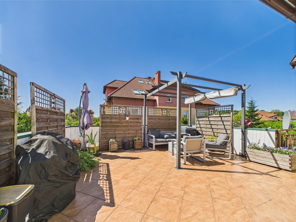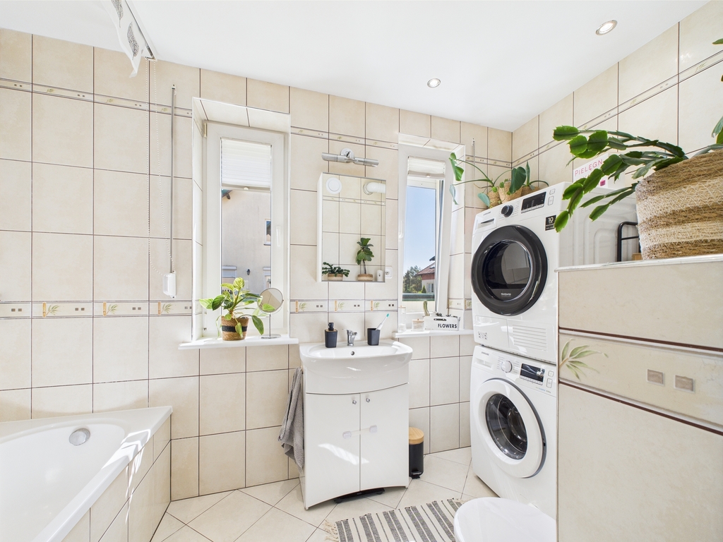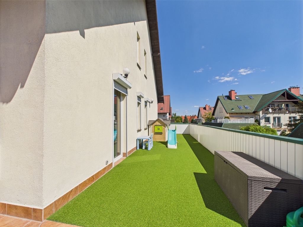 Wir laden Sie ein, sich mit dem Angebot einer schönen Wohnung in perfektem Einzugszustand vertraut zu machen, die in einem ruhigen und friedlichen Teil von Krzekowo liegt. Die Raumaufteilung und der Ausbaustandard Die Wohnung ist sehr sauber und gepflegt, warm, hell und sonnig. Es ist kein finanzieller Aufwand erforderlich. Praktisch bezugsfertig. Geschmackvoll fertiggestellt und mit hochwertigen Möbeln und Geräten ausgestattet. Im Preis inbegriffen sind sämtliche Möbel und Einbauten sowie Haushaltsgeräte und Elektronik. Die Fenster im Schlafzimmer gehen nach Osten, mittags scheint die Sonne aus dem Wohnzimmer. Auf der großzügigen und sonnendurchfluteten Terrasse können Sie die Sonne genießen oder an einem Sommerabend grillen. Auf einer Fläche von 77,9 m2 befinden sich: – geräumiges Wohnzimmer mit Ausgang zu einer riesigen 60 m2 großen Terrasse (L-förmig) mit Gartenlounge-Set, – großes, helles und funktionales Wohnzimmer mit Ausgang zur Terrasse, – Schlafzimmer mit großem Bett und Einbauschränken, – große, helle Küche mit Einbaumöbeln und Haushaltsgeräten, – helles Badezimmer mit Badewanne und WC, ausgestattet mit Waschmaschine und Trockner, – separates WC, – Flur. Miete und Nebenkosten Die Miete beträgt 650 PLN und beinhaltet den Renovierungsfonds, Betriebskosten, Vorauszahlungen für Kaltwasser und Rasenmähen. Zusätzlich Gas und Strom nach Verbrauch. Heizung und Warmwasser über eine Gastherme. Internet – Glasfaser und Kabelfernsehen von Orange. Gebäude Die Immobilie befindet sich im ersten Obergeschoss eines zweigeschossigen Backsteinhauses aus dem Jahr 2001. Im Jahr 2022 wurde das Dach saniert. Ruhiges und friedliches Anwesen, zahlreiche Parkplätze, sehr schöne Nachbarschaft. Möglichkeit zum Kauf einer Garage unter dem Gebäude . Lage : Tolle Lage. Ruhe und Frieden. Eine Wohnsiedlung an der Grenze zwischen Stettin Krzekowo und Bezrzecze. In der Nähe befinden sich eine Bushaltestelle, zahlreiche Einkaufsmöglichkeiten, ein Kindergarten und eine Schule. Nur 7km bis ins Zentrum, ca. 15 Minuten mit dem Auto. Das ist ein tolles Angebot! Kommen Sie und überzeugen Sie sich selbst, vielleicht verlieben Sie sich in diesen Ort . Zögern Sie nicht! Ich kann es wärmstens empfehlen und lade Sie zur Präsentation ein. Die Fotos geben den Charme dieses Ortes nicht wieder.