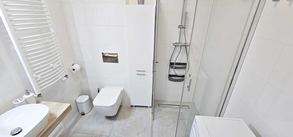 2-Zimmer-Wohnung mit Garten, Klimaanlage und Parkplatz in einer geschlossenen Wohnanlage in Ustronie Morskie, Baujahr 2021. Die Wohnung ist mit hochwertigen Materialien ausgestattet. Im Preis inbegriffen ist die auf den Fotos abgebildete Möblierung. Die Wohnung bietet Platz für 4 Personen, darunter 2 Schlafsofas mit Schlafgelegenheiten. Die 33,4 m² große Wohnfläche besteht aus: – einem Wohnzimmer mit Küchenzeile, – einem Schlafzimmer, – einem Badezimmer und – einem Flur. Vom Wohnzimmer aus gelangt man auf eine 15,52 m² große Terrasse und einen Steingarten. Die Wohnung verfügt über eine Fußbodenheizung, die über einen lokalen Heizraum betrieben wird, sowie eine Klimaanlage. Internet und TV über Glasfaser sind verfügbar. Die Wohnung befindet sich im Erdgeschoss und ist nach Süden ausgerichtet. Panoramafenster sorgen für viel Sonnenlicht. Das Anwesen verfügt über eine moderne Struktur mit zeitloser Architektur. Gepflegte Grünanlagen und angelegte Gemeinschaftsbereiche. Das Anwesen verfügt über einen Spielplatz und einen Fahrradabstellraum für die Bewohner. Das Grundstück ist eingezäunt, überwacht und verfügt über ein ferngesteuertes Eingangstor. Die monatliche Miete beträgt ca. 400 PLN, einschließlich Vorauszahlungen für Warmwasserbereitung, Verwaltung und Instandhaltung der Gemeinschaftsräume. Ein Parkplatz steht auf dem Grundstück für 25.000 PLN zur Verfügung. Der Gesamtpreis der Wohnung mit Parkplatz beträgt 490.000 PLN. Diese Wohnung ist eine Wohnimmobilie, die niedrige Betriebskosten und Steuern sowie die Möglichkeit des Erwerbs mit einer Hypothek garantiert. Der Helios Aquapark mit einem ganzjährig geöffneten Innenbereich und einem im Sommer geöffneten Außenbereich ist ca. 3 Gehminuten entfernt. Entfernung zum Meer: 15 Gehminuten (1,3 km). Dank der Schnellstraße S6 dauert die Fahrt nach Stettin ca. 1,20 Stunden und nach Danzig ca. 2,4 Stunden, ähnlich wie nach Berlin. Der größte Vergnügungspark der Region, Hossoland, entsteht ca. 30 Minuten entfernt. Schlüssel befinden sich im Büro.