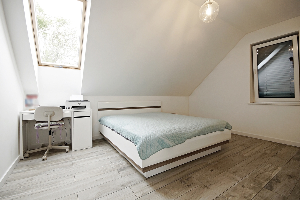 Einfamilienhaus zum Verkauf in Bobolin. Die Immobilie richtet sich an Menschen, die Wert auf Ruhe und Frieden legen und gleichzeitig eine Immobilie in unmittelbarer Nähe zum Zentrum von Stettin suchen. Das Haus ist modern in der Architektur und verfügt über umfangreiche Automatisierungs- und Verbesserungsmaßnahmen. Gesamtfläche des Hauses 149,37 m2 Nutzfläche 131,37 m2 Grundstücksfläche 658 m2 Das Haus ist geräumig, offen zu einem schön angelegten Garten durch eine sehr funktionale, überdachte verglaste Terrasse – Wintergarten auf der Ostseite mit einer Fläche von 24 m2. Im Erdgeschoss befindet sich ein großes Wohnzimmer mit offener Küche und zentral positioniertem Kamin, ein Badezimmer mit ebenerdiger Dusche, Waschbecken und Toilette. Im ersten Stock befinden sich 3 Schlafzimmer, eines davon ist derzeit ein Ankleidezimmer, ein Badezimmer mit freistehender Badewanne, Toilette und Waschbecken sowie ein Dachboden. Vom Wohnzimmer aus gibt es einen Ausgang zur Terrasse und zum Garten. Der Garten ist mit Bäumen und Sträuchern angelegt und verfügt über ein automatisches Bewässerungssystem. Das Haus ist mit einer Garage für 1 Auto ausgestattet. Neben dem Haus befindet sich ein Wirtschaftsraum mit Keller, also einem kleinen Unterstand. Zusatzausstattung: – Automatisch schließende Jalousien im ganzen Haus von Somfy. – Samsung-Wärmepumpe mit zusätzlichem Tank für Warmwasser. – Komfortable Fußbodenheizung. – Sofort heißes Wasser in allen Waschbecken, der Badewanne und der Dusche. – Individuelle Mehrpunkt-Innenbeleuchtung. – 4-Positionen-Alarmsystem. – Automatische Gartenbewässerung mit Timer. – Mehrpunkt-Gartenbeleuchtung. – Gartenmähroboter. Freundliche Grüße und herzlich willkommen zur Präsentation.