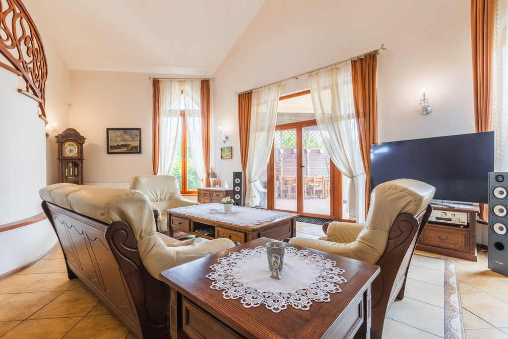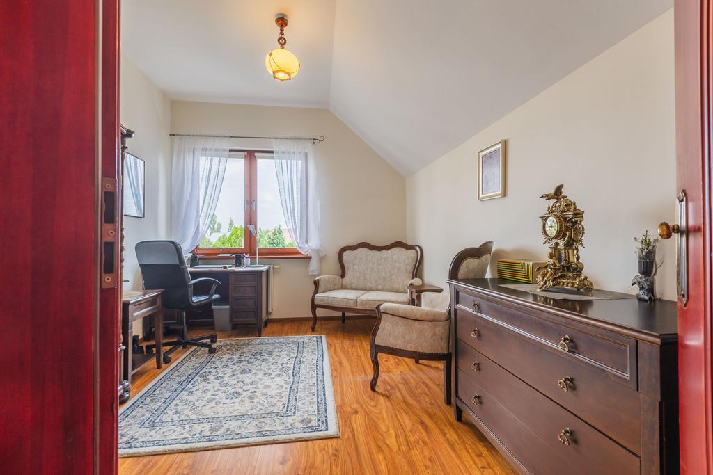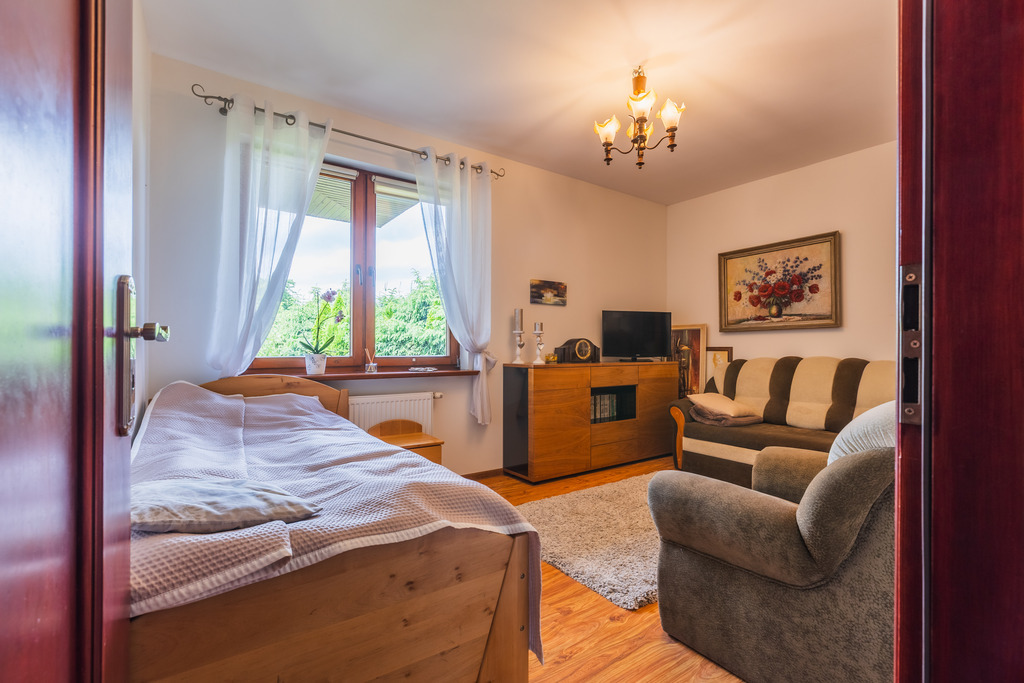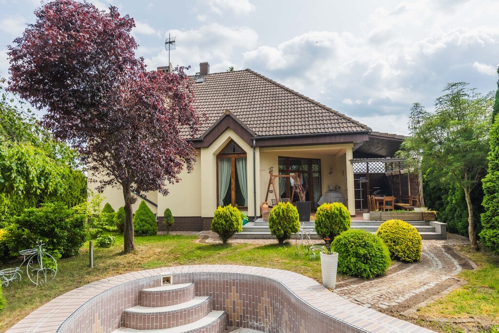 Zu verkaufen: Einfamilienhaus mit Nebengebäude in Ustowo am Rande der Stadt Stettin. Ideal für eine Familie oder ein Unternehmen – Möglichkeit, im Gebäude ein Geschäft zu betreiben (100 m² waren eine Schreinerei). Das 2008 unterkellerte Haus liegt auf einem großen, sehr schön angelegten Grundstück von 1521 m² mit zahlreichen Pflanzen und einem funktionierenden Swimmingpool mit Warmwasserbereitung durch Sonnenkollektoren. Zentralstaubsauger. Außenwände des Erdgeschosses und des Dachgeschosses – geschichtet: 12 cm Schachbrettziegel, 8 cm Mineralwolle in PVC-Folie, max. 20 cm Ziegelblock. Nutzfläche 165 m² (184 m² mit Dachschrägen), gesamt 228 m² (248 m² mit Dachschrägen) – Volumen 850 m². Erdgeschoss: Geräumiges Wohnzimmer mit Kamin, Gästezimmer, helle Küche – Einbauschränke, Esszimmer, Bad mit WC, Waschküche. Eine schöne, vom Hausbesitzer angefertigte Eichentreppe führt in den ersten Stock! Erster Stock: 3 große Schlafzimmer und ein großes Badezimmer mit Toilette. EXKLUSIV