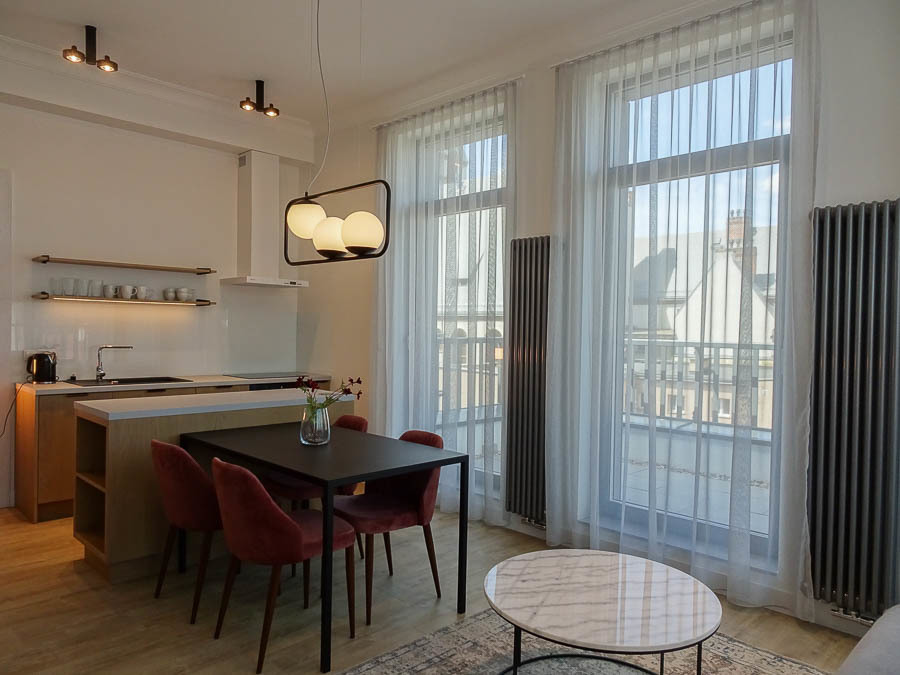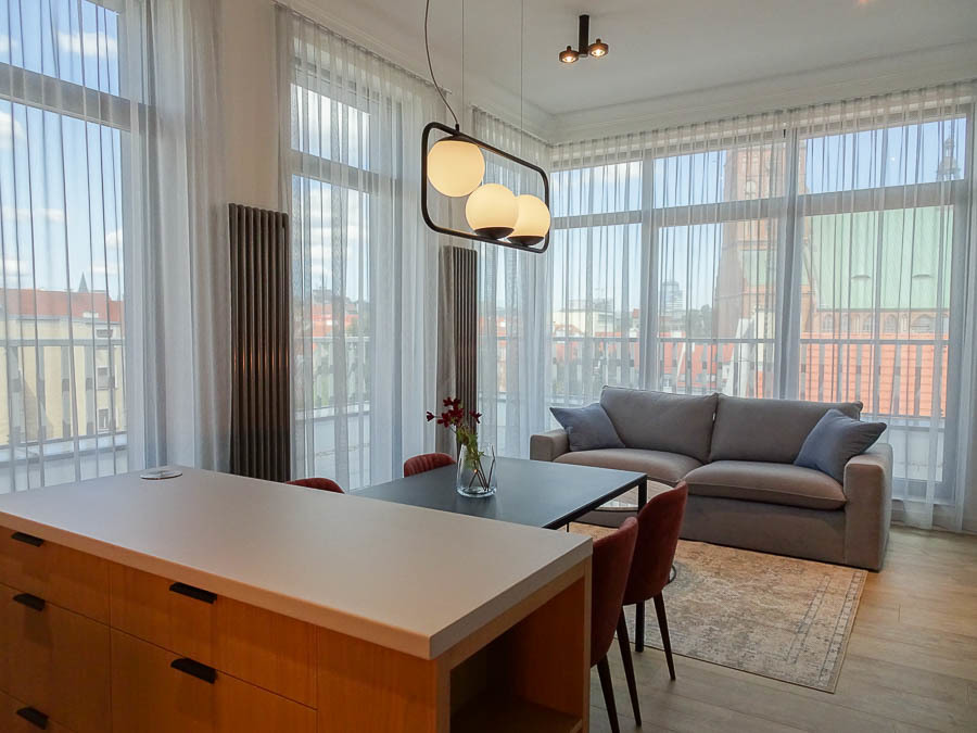 Elegante 2-Zimmer-Wohnung, von einem Architekten entworfen, komfortabel eingerichtet, mit zwei Terrassen im obersten Stockwerk eines Wohnhauses in der Podgórna-Straße in der Nähe der Altstadt, Książnica Szczecińska, mit schöner Aussicht ins Grüne und auf die Denkmäler von Stettin. Ebenfalls zu vermieten ist ein Parkplatz in der Tiefgarage (Aufzug zur Tiefgarage). WOHNUNGSBESCHREIBUNG: Komfortabel und praktisch eingerichtete Wohnung. Gesamtfläche 45,37 m2, Terrasse. Wohnzimmer mit Küchenzeile mit einer Fläche von 24,10 m2. Vom Zimmer aus zwei Eingänge zur Hauptterrasse mit einer Fläche von 20,08 m2. Die Terrasse ist ein zusätzlicher Bereich und bietet Ihnen die Möglichkeit, sich zu entspannen und dabei das weite Panorama der Stadt zu genießen. Im Zimmer gibt es ein Lounge-Set, einen Tisch mit 4 bequemen Stühlen, einen 3-türigen Kleiderschrank. Die Küche gibt es moderne Möbel, einen 45 cm WHIRPOOL-Geschirrspüler, einen Elektroherd mit Kochfeld, eine Spüle. Vom Wohnzimmer aus gelangt man in ein Schlafzimmer mit Doppelbett und weißem 3-türigem Kleiderschrank. Vom Schlafzimmer aus gelangt man auf die Terrasse. Im Badezimmer befinden sich eine Badewanne, eine Waschmaschine und ein Waschbecken mit Unterschrank. Kosten: 3600 PLN zzgl. 400 PLN Parkplatz, zzgl. Miete an den Verwalter 358 PLN inklusive Verwaltungskosten und Müllabfuhr. Zusätzlich zu den Kosten für Heizung und Warmwasserbereitung, Kaltwasser und Strom. Die Wohnung ist mit Bügeleisen, Bügelbrett und Geschirr ausgestattet. Kleiderschrank im Flur und auch im Flur. GEBÄUDEBESCHREIBUNG: Mehrfamilienhaus, Baujahr 2018. Moderner Aufzug – Abstieg in die Tiefgarage. Elegant fertiggestelltes Treppenhaus. Wohnung für eine oder zwei Personen, gelegentliche Vermietung oder Vertrag mit der Firma. Kaution. Anzeige der Immobilienagentur.