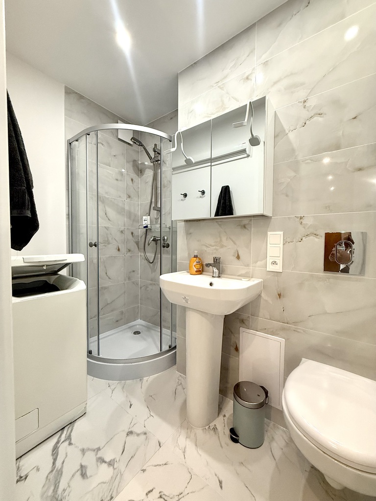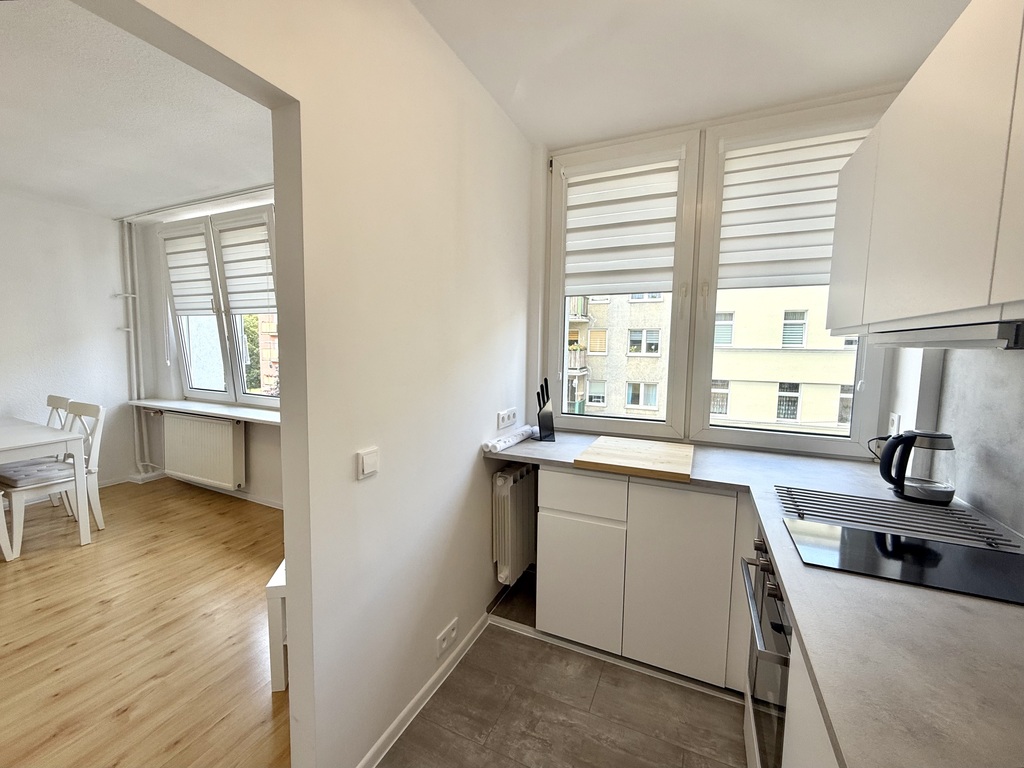 Zu vermieten ist eine neu renovierte Zweizimmerwohnung mit einer Fläche von 45 m2 in der Podhalańska-Straße in Stettin. Die Wohnung befindet sich im 1. Stock (kein Aufzug) und besteht aus einem großen Wohnzimmer, einem Schlafzimmer, einer Küche und einem Badezimmer. Im Wohnzimmer befindet sich ein Sofa (nicht ausziehbar). In der separaten Küche sind alle Haushaltsgeräte vorhanden (Induktionsherd, Kühlschrank, Backofen, Dunstabzugshaube, Geschirrspüler, neues Besteck, Töpfe, Teller). Das Badezimmer ist mit einer großen Duschkabine, einem Schrank mit Waschbecken, einem Spiegel, einer Toilette und einer Waschmaschine ausgestattet. Im Flur befindet sich ein großer Kleiderschrank mit Spiegeln, der viel Stauraum bietet. Obwohl die Wohnung im Zentrum liegt, ist sie ruhig und das Schlafzimmer hat ein Fenster mit Blick ins Grüne. Zur Wohnung gehört ein großer Keller. Die Miete beträgt 2.800 PLN + Verwaltungsgebühr von 395 PLN mit Vorschüssen für Wasser und Heizung (Stadtwärme), zusätzlich zahlbar Strom nach Verbrauch. Dienstleistungen wie Kabelfernsehen und Internet unterliegen dem eigenständigen Vertrag des Mieters mit dem Betreiber. Das Angebot richtet sich an Erwachsene ohne Haustiere. Die Mindestmietdauer beträgt 12 Monate. Gelegenheitsmieten sind möglich. Zahlreiche Parkplätze in der Nähe. Ruhige Lage. In der Nähe gibt es alles: Einkaufszentren, Bürogebäude, den Kasprowicz-Park, zahlreiche Discounter, Bus- und Straßenbahnhaltestellen. HINWEISE: – Kaution 3.500 PLN – Gelegenheitsmieten, Abgabe einer Erklärung beim Notar erforderlich, – Mieterhaftpflichtversicherung erforderlich. Die Wohnung ist sofort verfügbar. Rufen Sie an und werden Sie der erste Mieter dieser Wohnung!