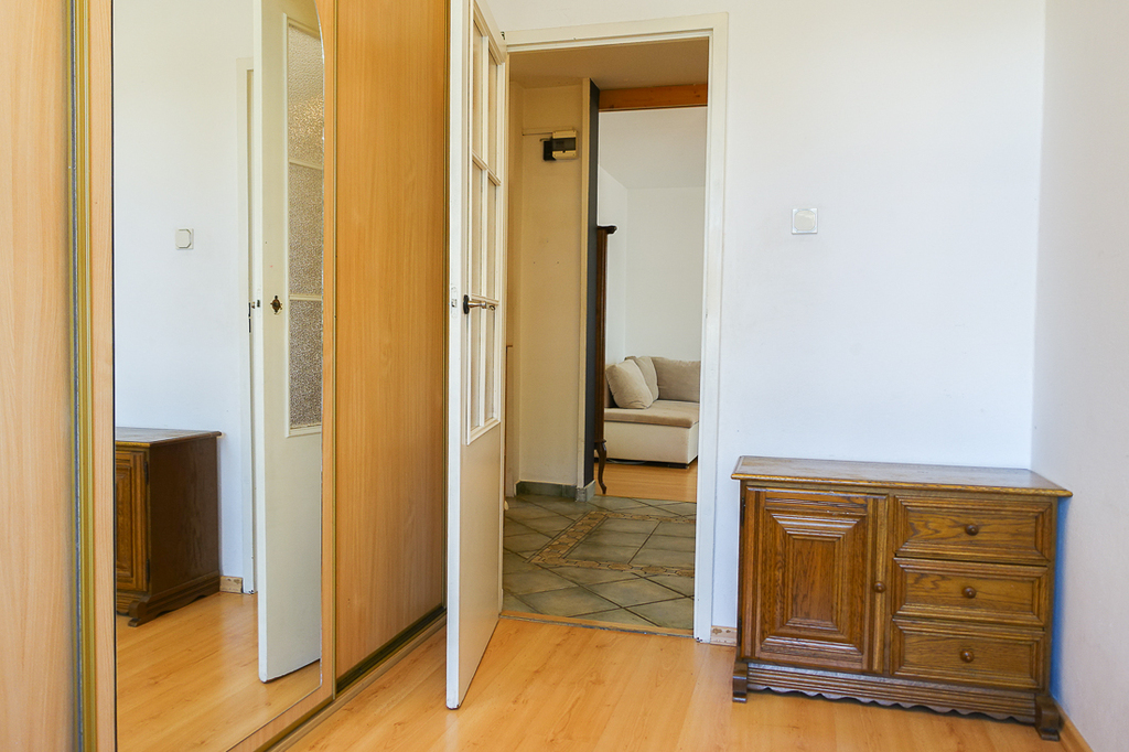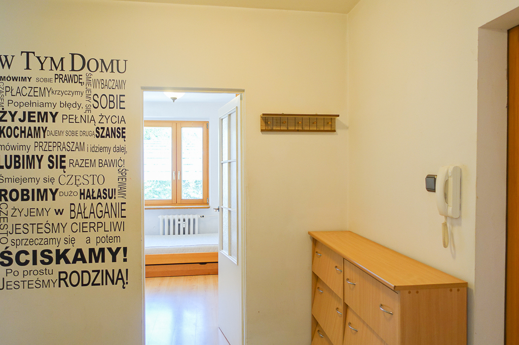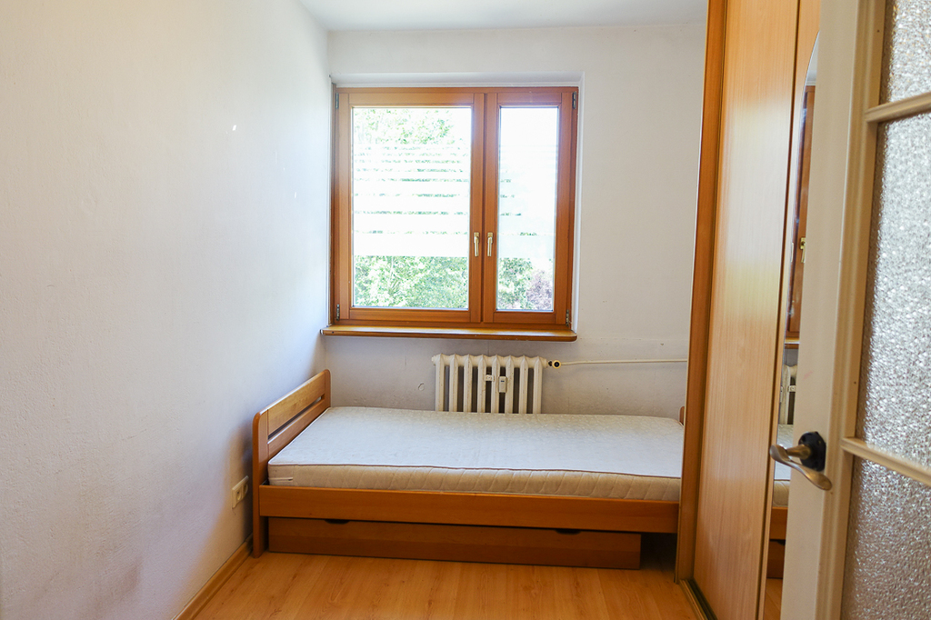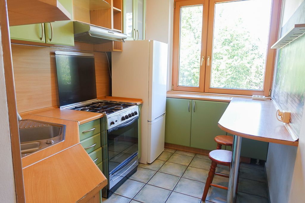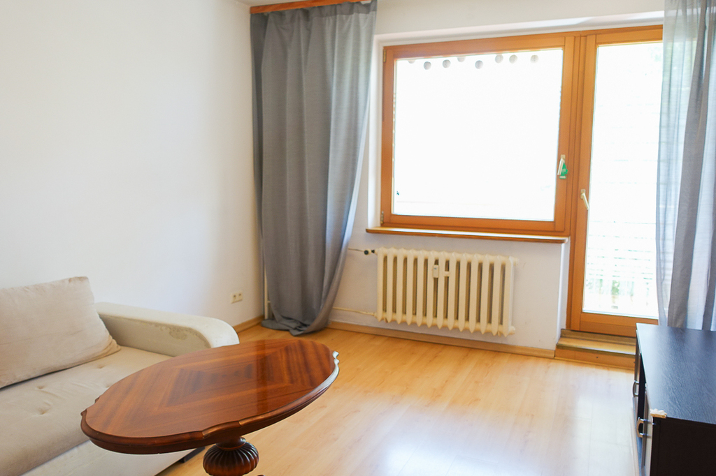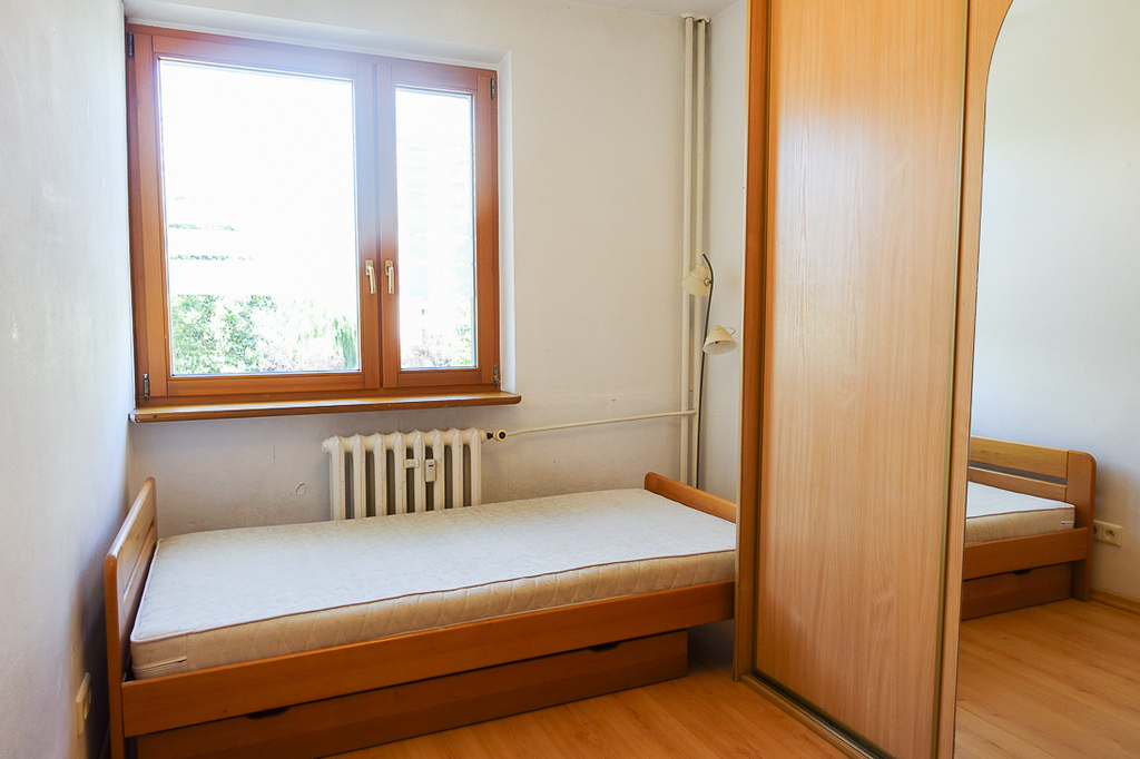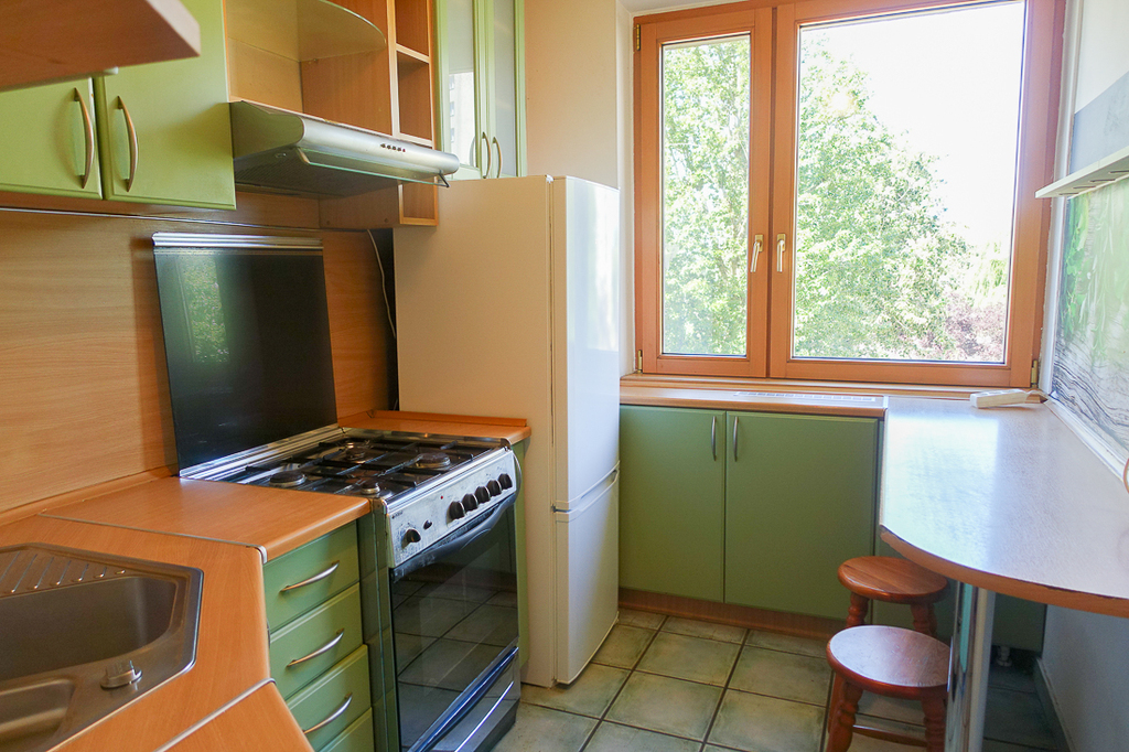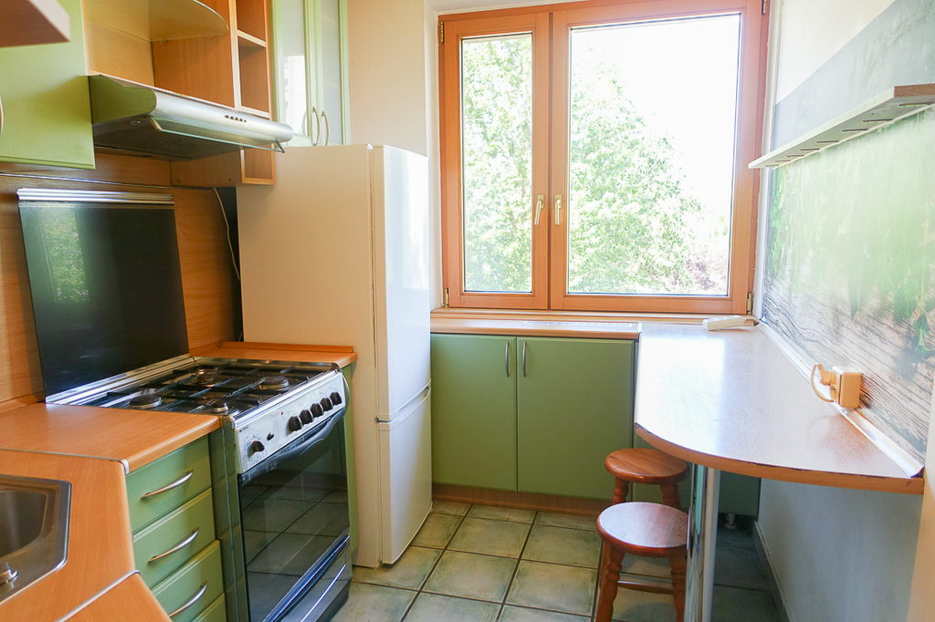 Santocka-Straße. 2-Zimmer-Wohnung 41,5 m2 im 4. Stock eines Hochhauses. Genossenschaftliches Eigentumsrecht an den Räumlichkeiten. WOHNUNGSBESCHREIBUNG: Zimmer 16,1 m2 mit Zugang zu einem großen Balkon nach Osten, Zimmer 9,2 m2. Separate Küche ca. 6 m2 mit Fenster, möbliert, mit einem ca. 2 Jahre alten Kühlschrank, Terrakottaböden. Badezimmer in Fliesen und Terrakotta mit Badewanne, Waschbecken und 2 Jahre alter Waschmaschine. Separates WC, übersichtlicher Flur 6,5 m2 mit Platz für einen großen Kleiderschrank, Terrakottaboden im Flur. Laminatböden in den Zimmern. Moderne Fenster. GEBÄUDEBESCHREIBUNG: 10-stöckiges Gebäude aus polnischen großflächigen Betonplatten, isoliert, Baujahr 1980. Aufzug. UNTERHALTUNGSKOSTEN Die Miete an die Genossenschaft in Höhe von 1030 PLN beinhaltet u. a. Fernwärme, Warm- und Kaltwasser für 2 Personen sowie zusätzlich [Strom und Gas (Gasherd)]. UMGEBUNG: Wohnsiedlung mit zahlreichen Geschäften, Bibliothek, Schule und Kindergarten. Öffentliche Verkehrsmittel (Buslinien 67 und 75) in der Nähe. Gute Parkmöglichkeiten, viel Grün.