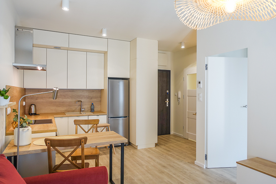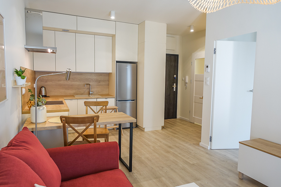 Ab sofort zu vermieten: elegante 2-Zimmer-Wohnung für ein Paar oder eine Einzelperson im 2021 neu erbauten Mehrfamilienhaus KAMIENICA NOVA III in der Narutowicza-Straße, mit zwei leisen Aufzügen, möbliert und ausgestattet. Frisch fertiggestellt und voll möbliert. In der Nähe der Universität Stettin, ZUT, gute Anbindung an die Medizinische Universität und die Maritime Technische Universität. WOHNUNGSBESCHREIBUNG: Zimmer mit Kochnische 18 m2, Schlafzimmer 8,5 m2, Flur 2,66 m2, Badezimmer 3,49 m2, Westbalkon 2,48 m2 mit Beleuchtung. Voll ausgestattete Kochnische: Kühlschrank mit Gefrierfach, Dunstabzugshaube, Cerankochfeld, Backofen, Geschirrspüler. Im Zimmer: Tisch, 2 Stühle, Couchtisch auf Rollen, Fernsehtisch, Ausziehsofa, im Schlafzimmer: zweitüriger Kleiderschrank, Doppelbett 1,40 m breit, Kommode mit Schubladen, kleine Tische, Regal, im Flur: zweitüriger Kleiderschrank, Regal, Spiegel. Im Badezimmer: Waschmaschine, Waschbecken, Schrank, Duschkabine ohne Duschwanne mit Linienablauf, Keramikfliesen. Alle Geräte mit Garantie. Jalousien an den Fenstern. Möglichkeit zum Anschluss von Kabel-TV und Internet. MIETE: Kosten 2.500 PLN, DURCHSCHNITTLICHE MONATLICHE KOSTEN BETRAGEN CA. 800 PLN, INKLUSIVE ALLER KOSTEN: MIETE AN DEN VERWALTER, HEIZUNG, WASSER, STROM UND MÜLLABHOLUNG, Komponenten: Miete an den Verwalter, 367,66 PLN zzgl. Strom ca. 150 PLN pro Monat, Wasser und Heizung ab SEC durchschnittlich 177 PLN pro Monat, Kaltwasser durchschnittlich 120 PLN. Heizung und Warmwasserbereitung von der Stadt. Kaution 4.000 PLN. Angebot für ein Paar oder eine Einzelperson. Die Wohnung ist nicht für Kinder oder Tiere geeignet. Gelegentlicher Mietvertrag mit Angabe der Wohnung durch Dritte, in die der Mieter nach Beendigung des Mietverhältnisses einziehen wird, oder ein Vertrag für ein Unternehmen.